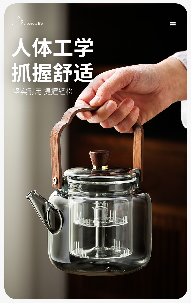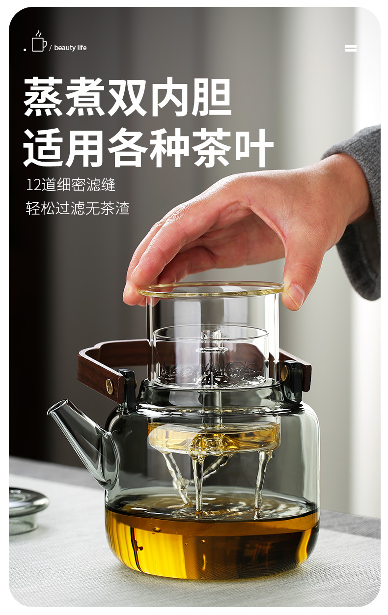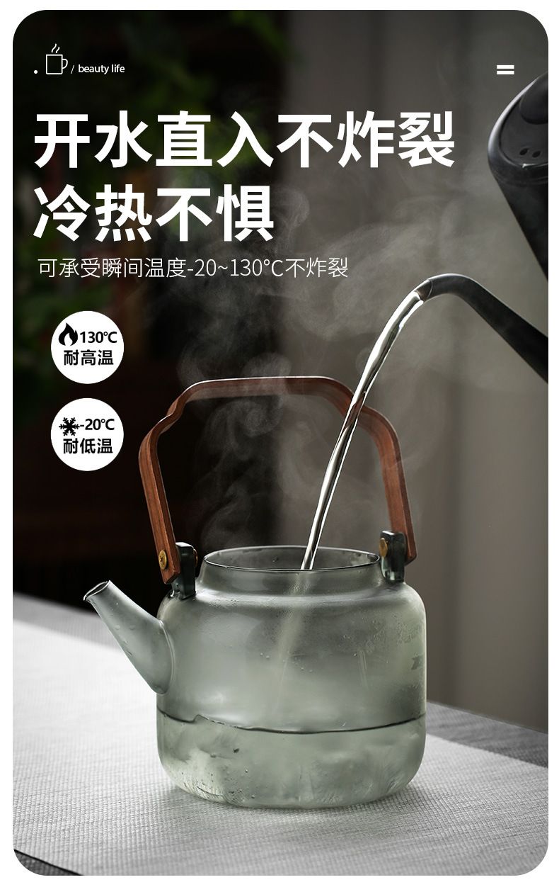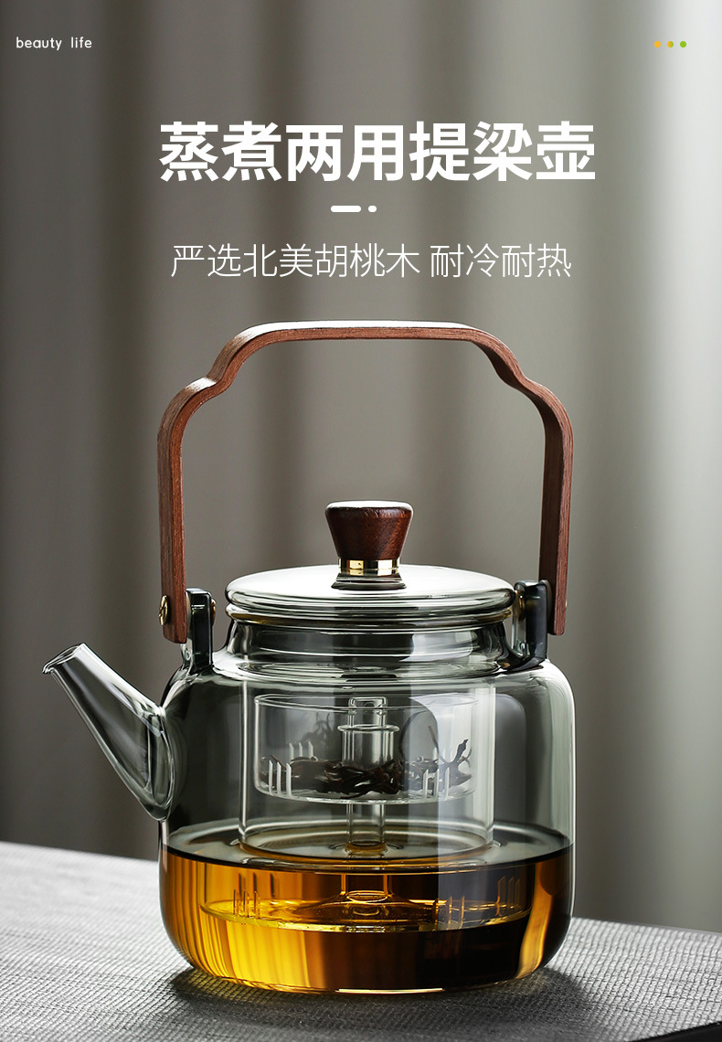 新款高硼硅玻璃煮茶壶家用蒸煮一体四代提梁壶耐高温防爆提梁壶