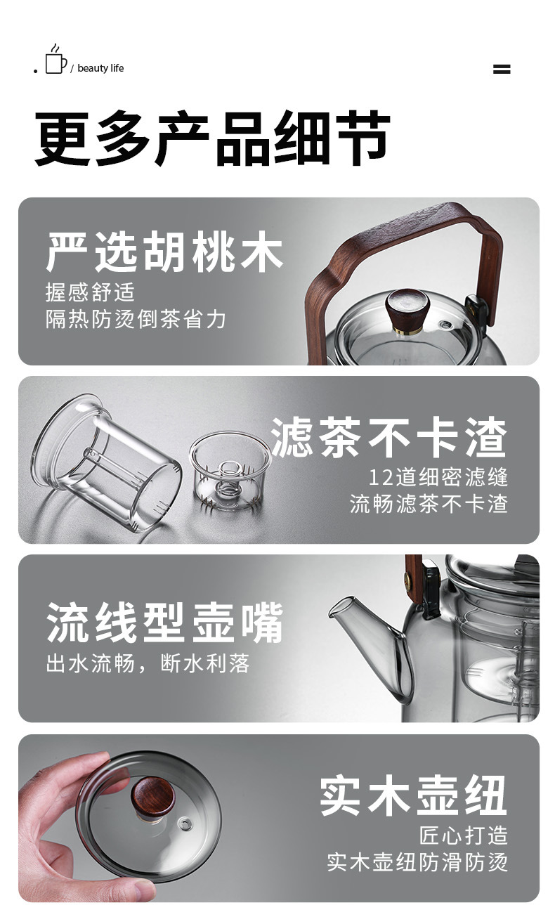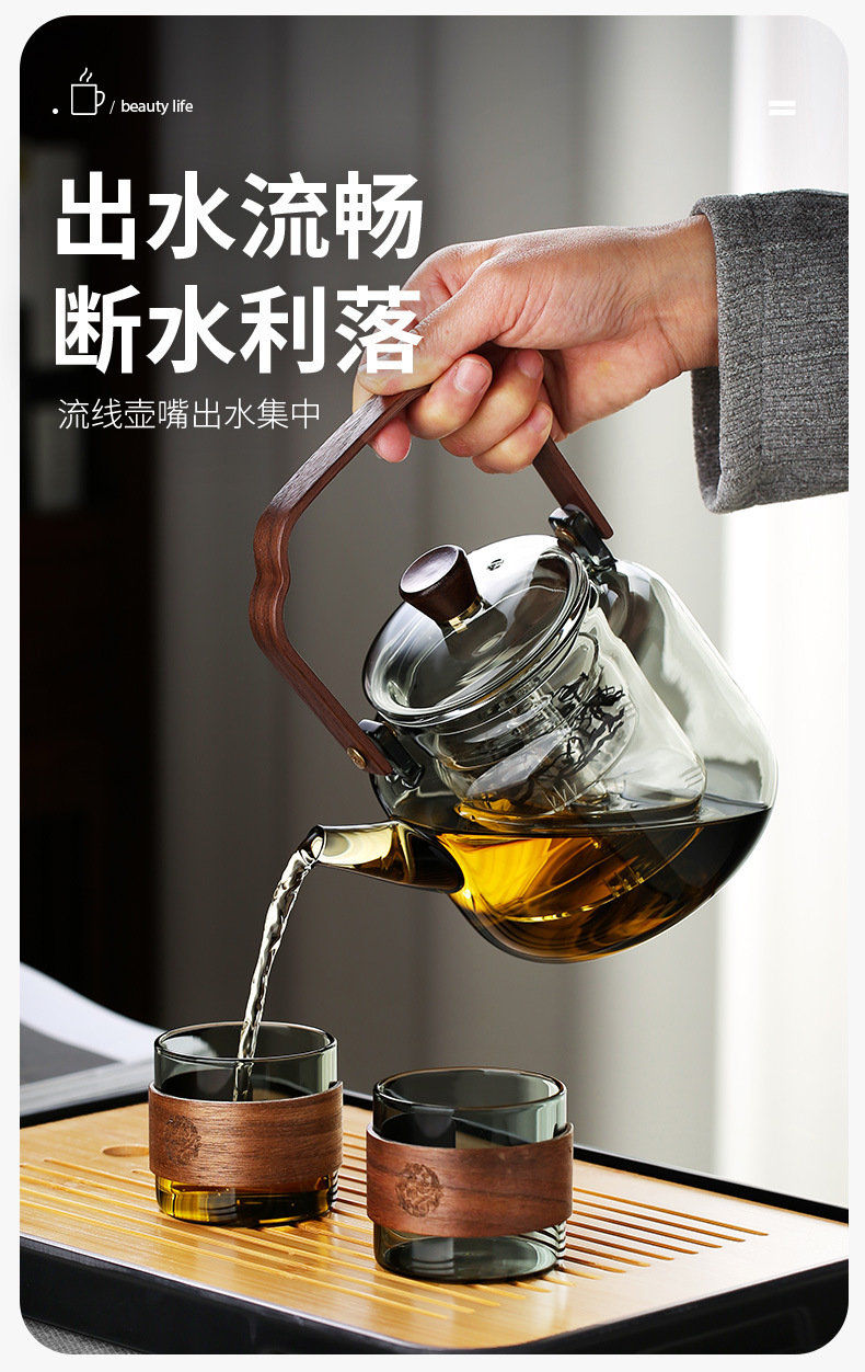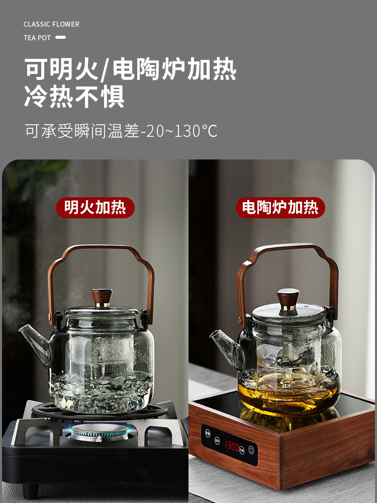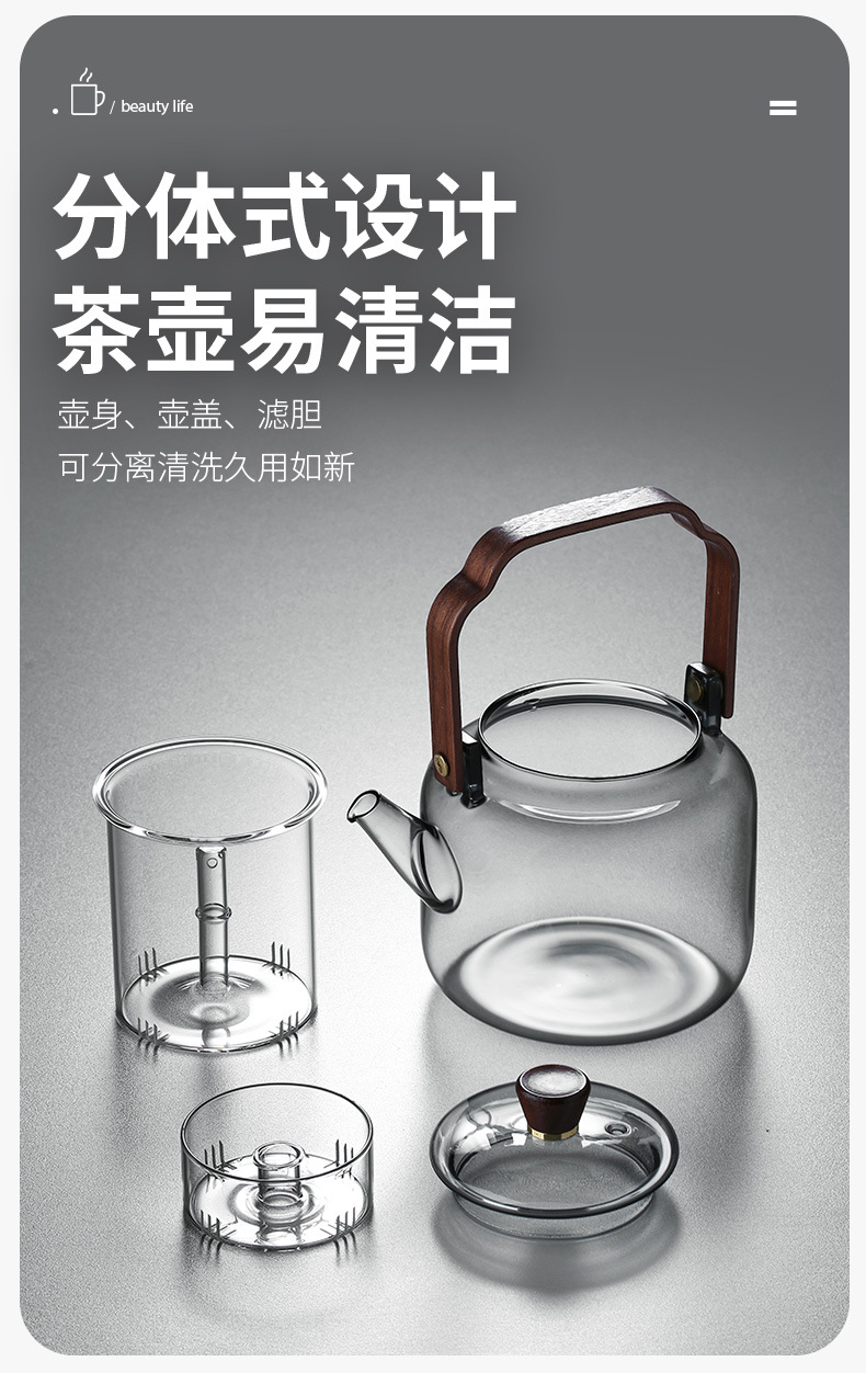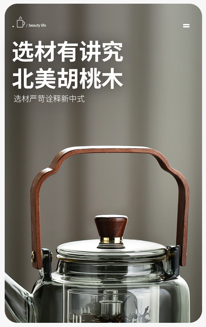 新款高硼硅玻璃煮茶壶家用蒸煮一体四代提梁壶耐高温防爆提梁壶