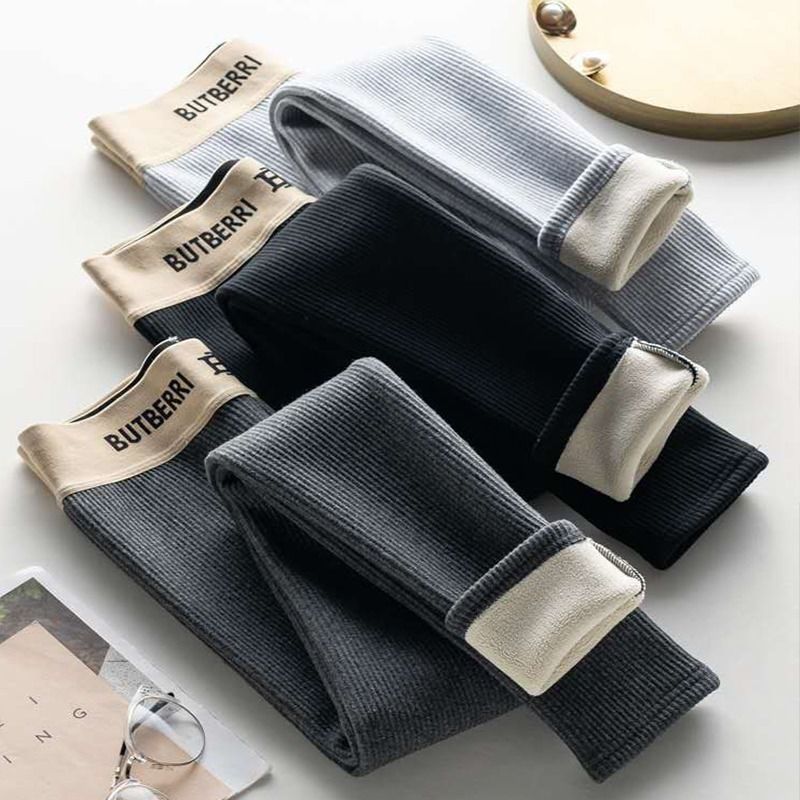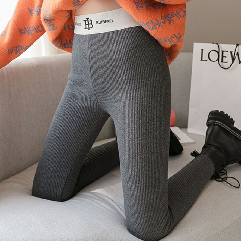秋冬高腰加绒打底裤女外穿保暖裤B字螺纹百搭显瘦弹力绒小脚裤子