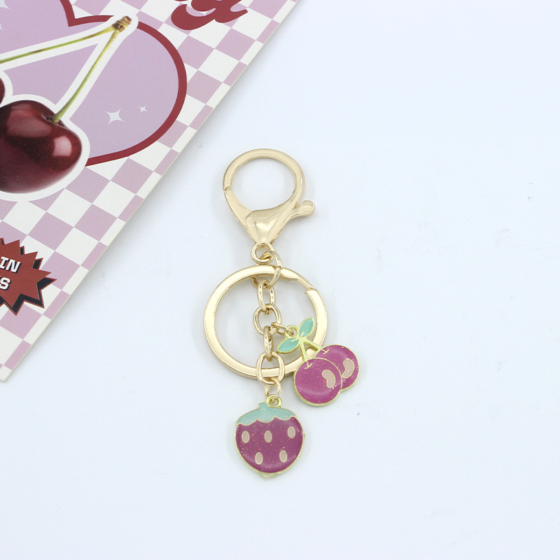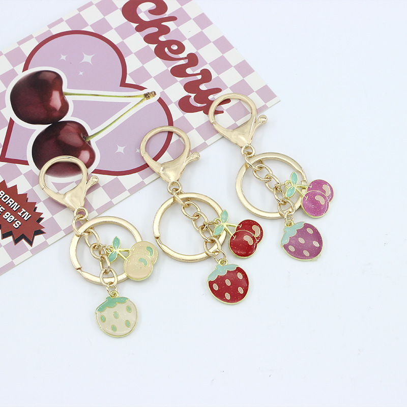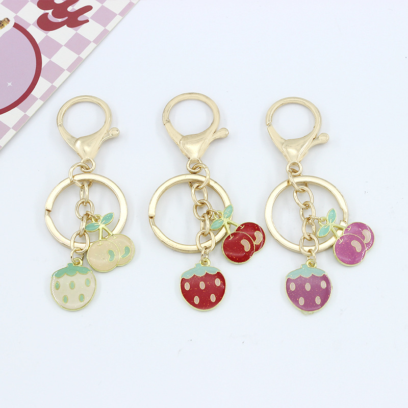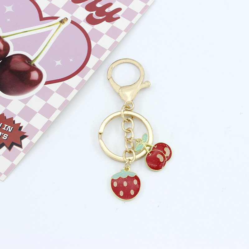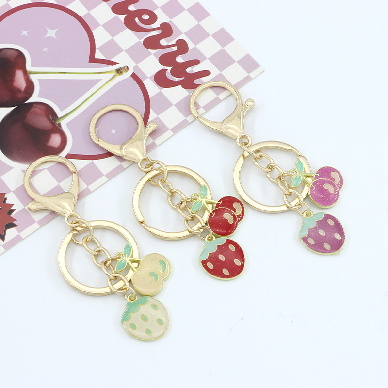 创意樱桃草莓钥匙扣批发可爱水果樱桃学生书包挂饰情侣包包挂件挂