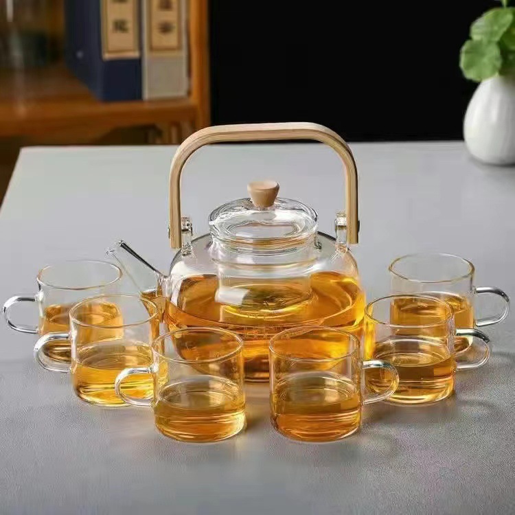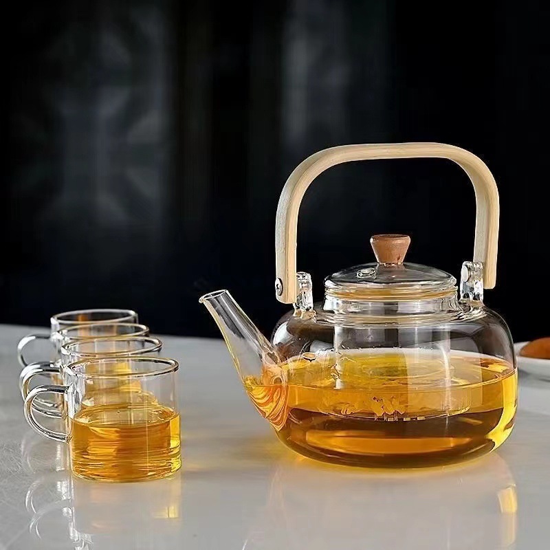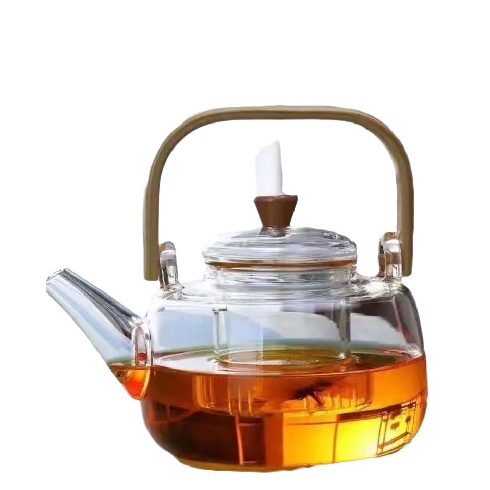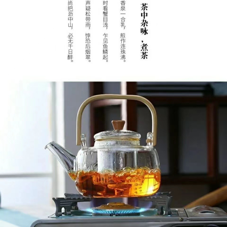 加厚提梁壶玻璃茶壶竹把煮茶壶耐高温玻璃水壶家用烧水壶