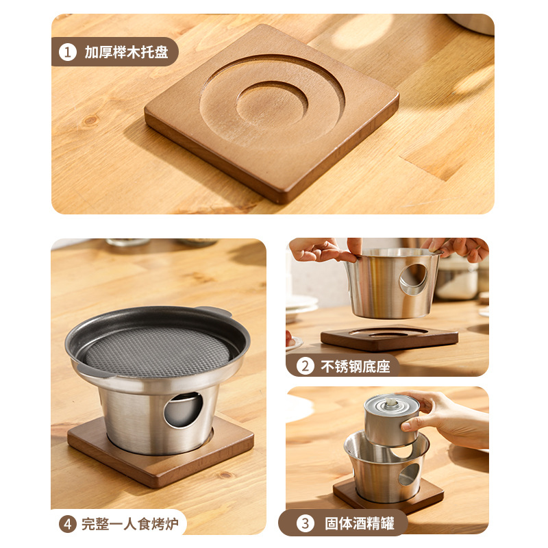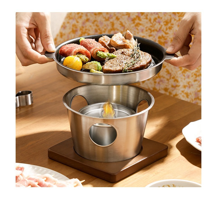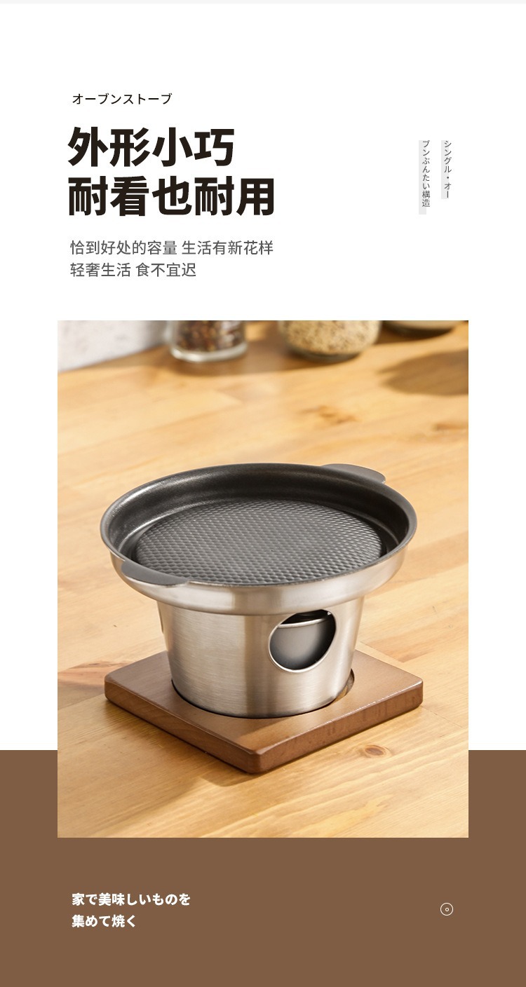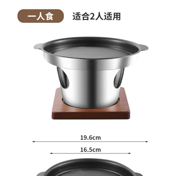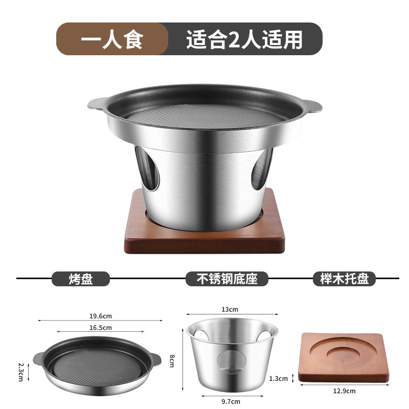 日式304三层钢不锈钢酒精烤炉单人烧烤炉不沾烤盘家用小型烤肉盘