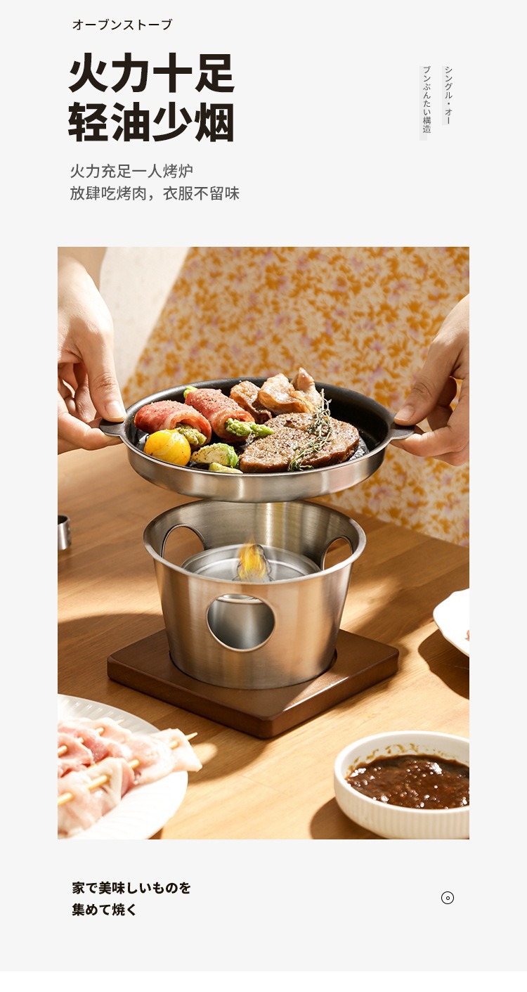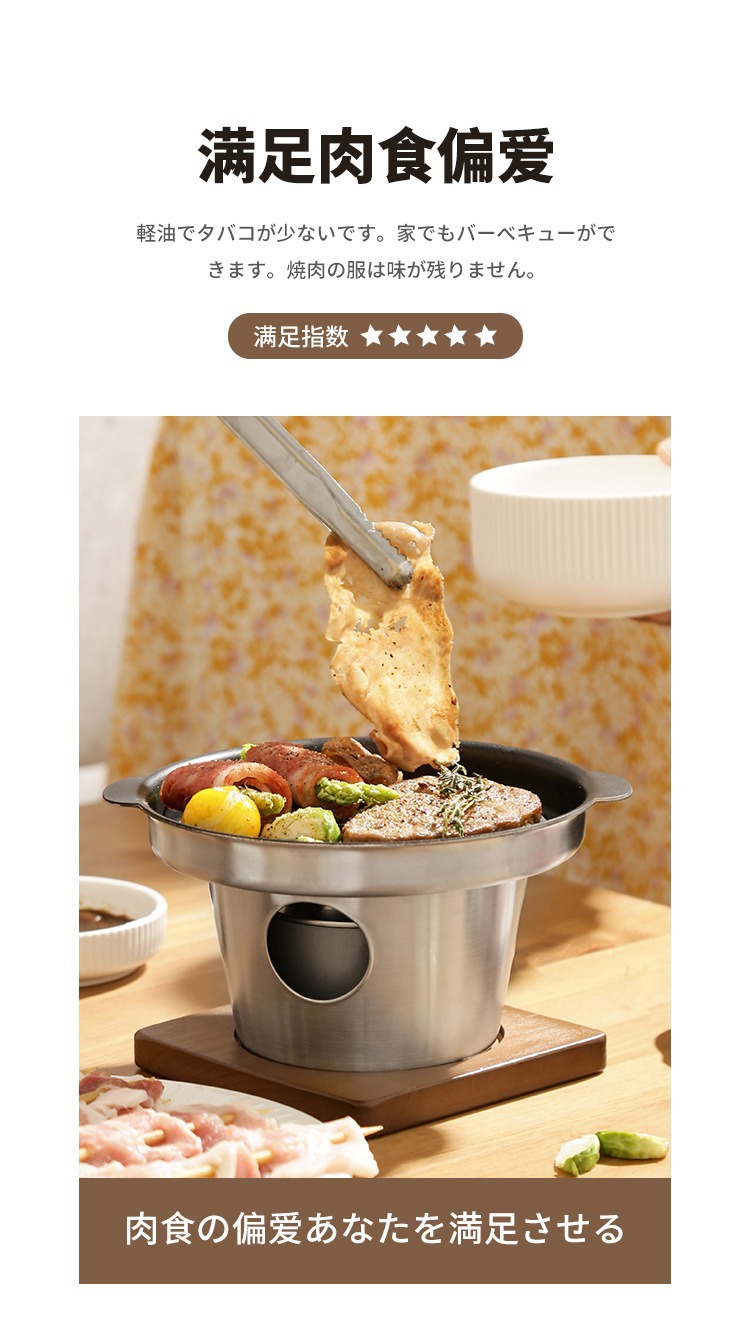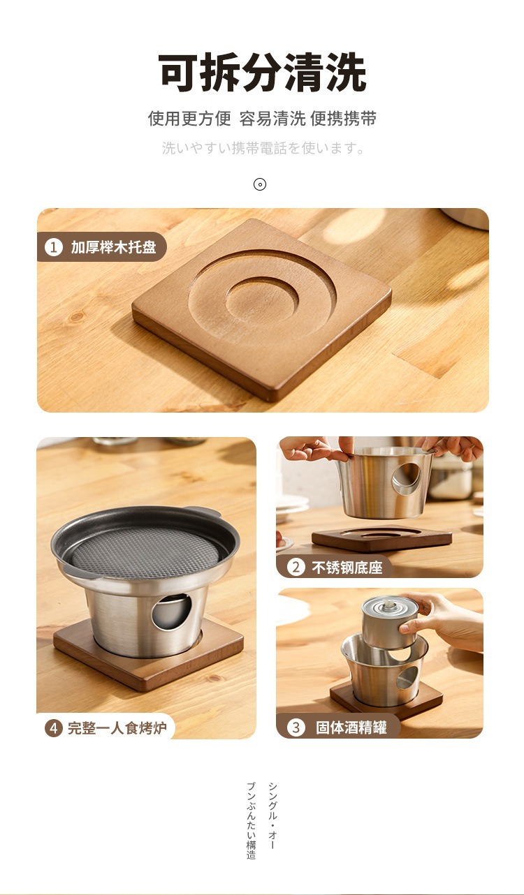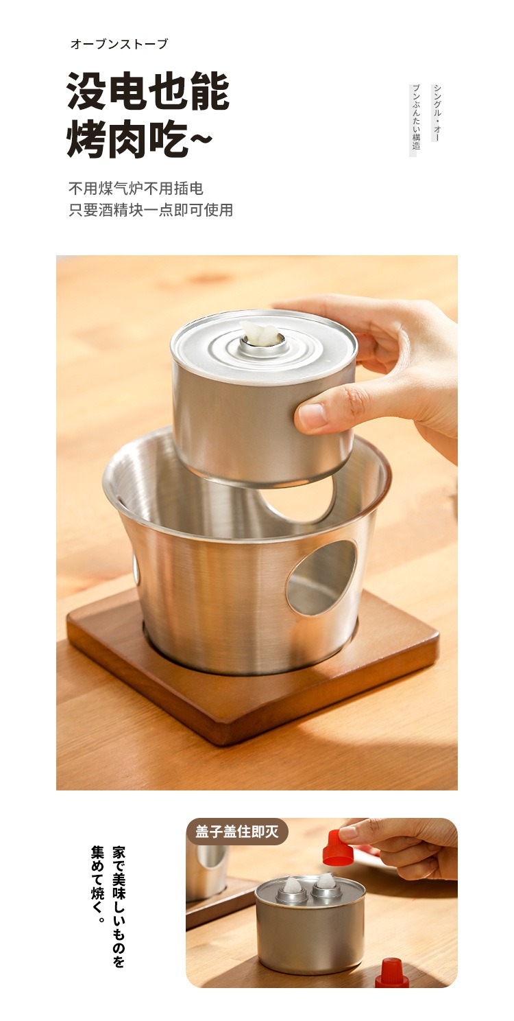 日式304三层钢不锈钢酒精烤炉单人烧烤炉不沾烤盘家用小型烤肉盘