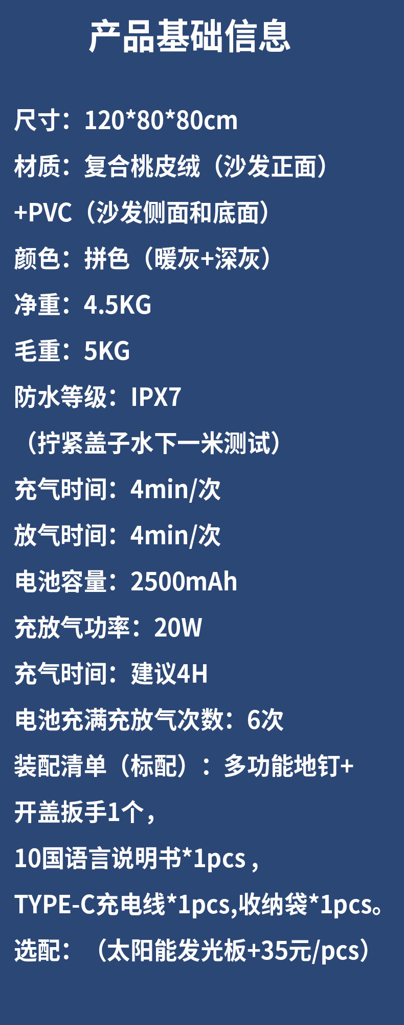 耐用自动充气床垫内置电动泵室内露营便携式旅行床快速充气气床