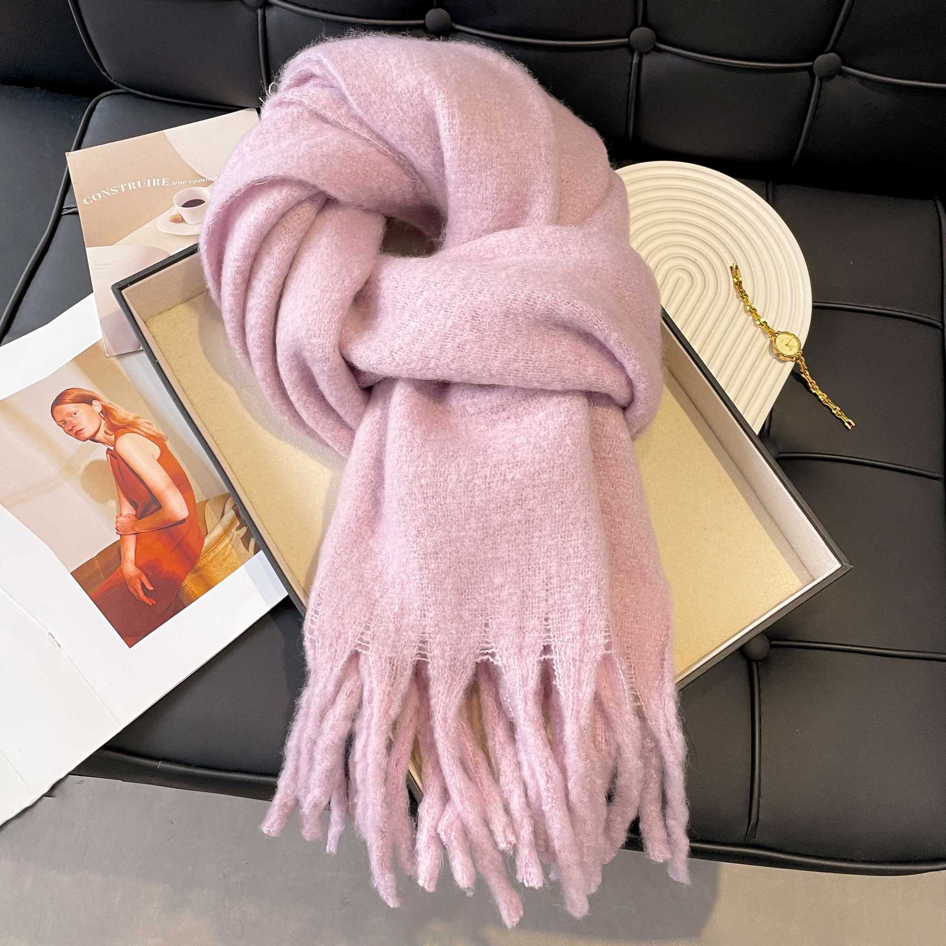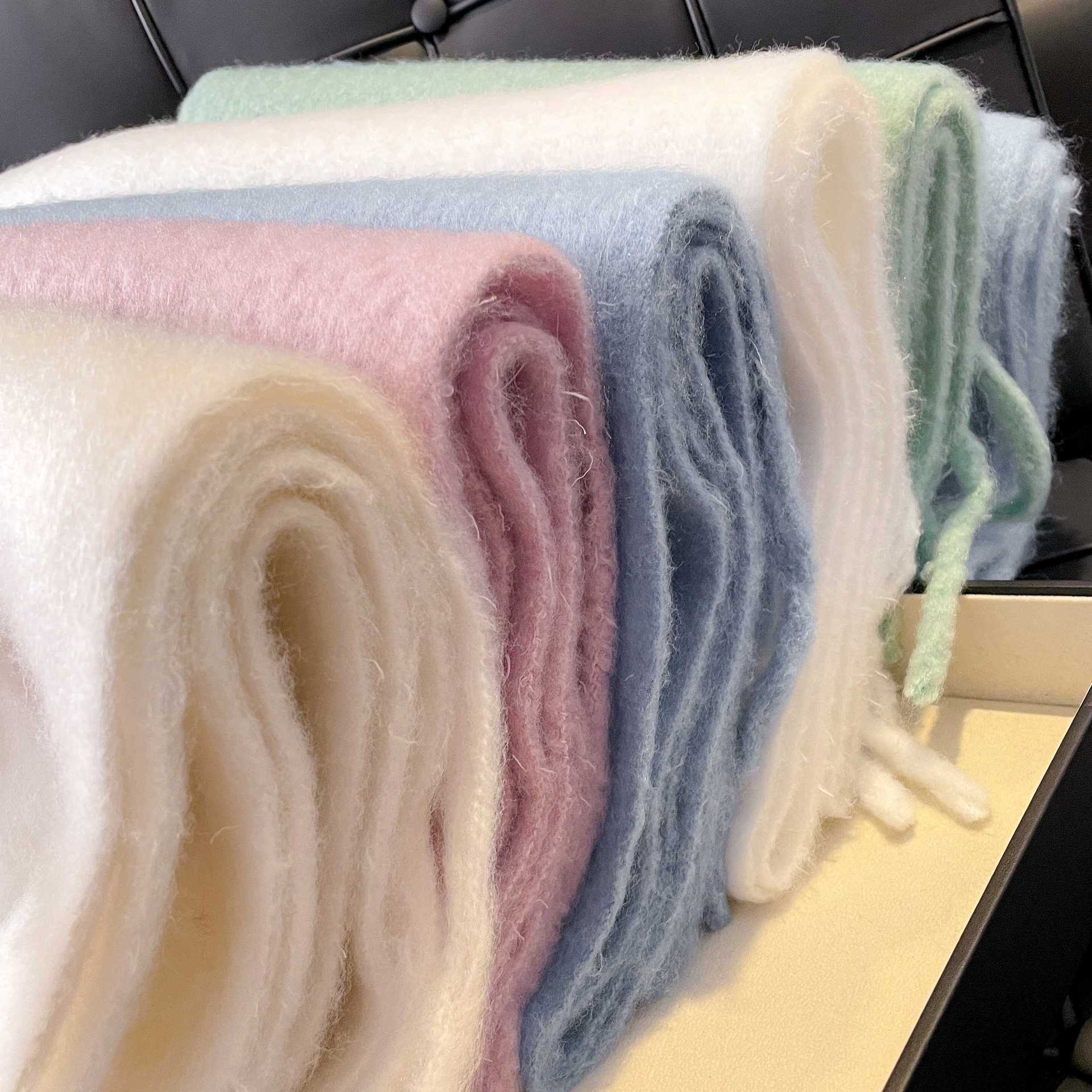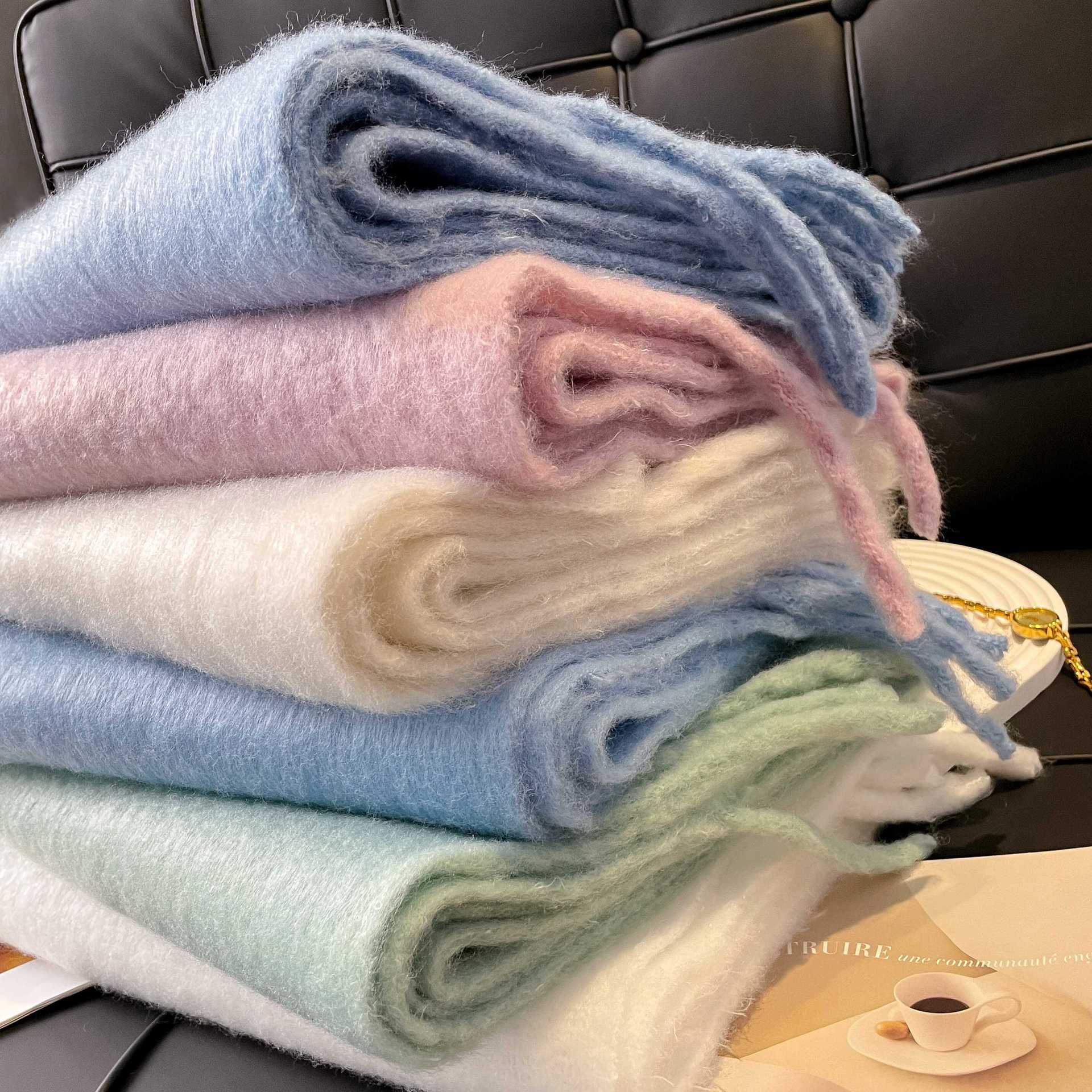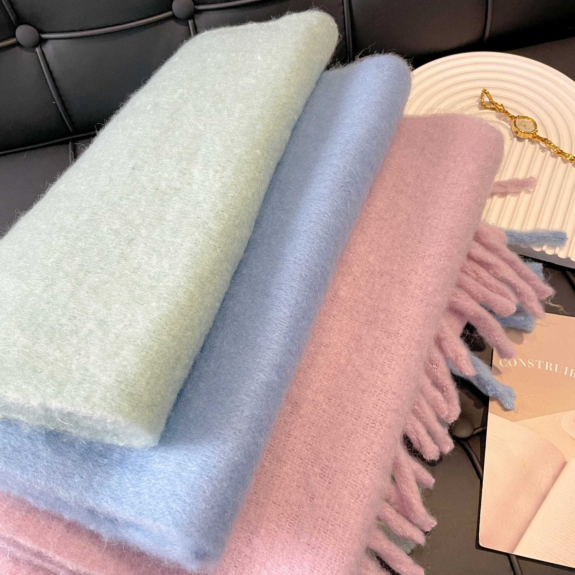 冰岛海盐蓝色围巾女秋冬季新品马海毛纯色百搭围脖保暖仿羊绒披肩