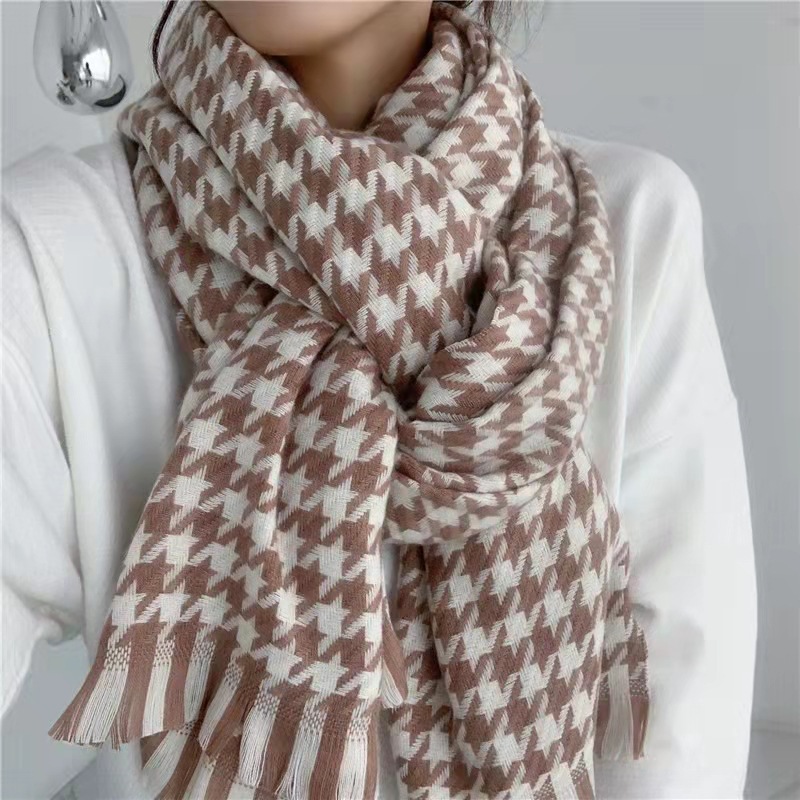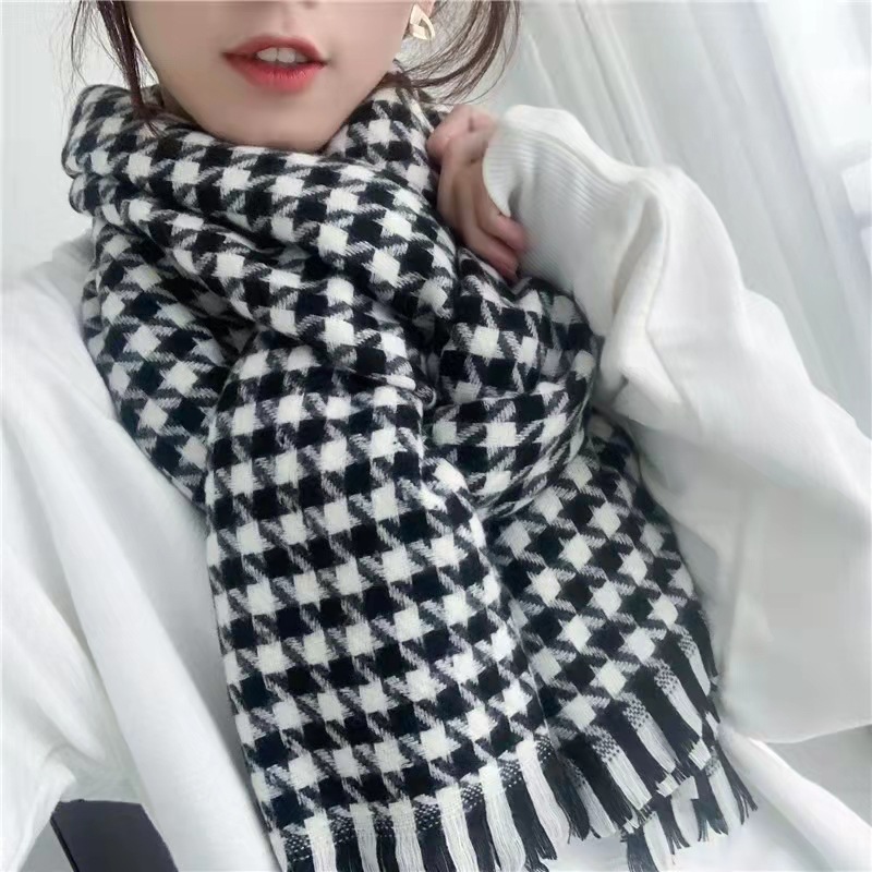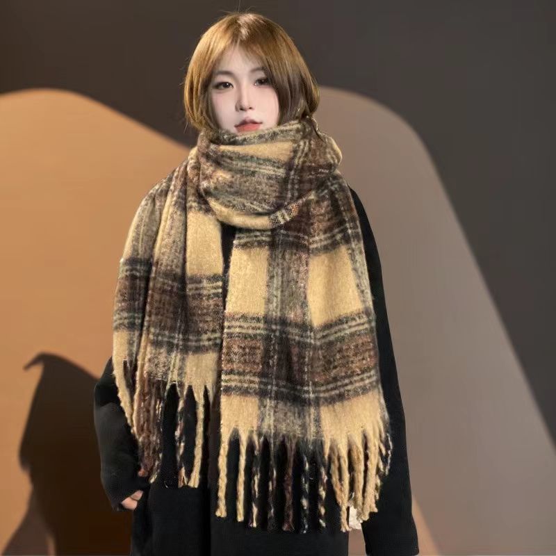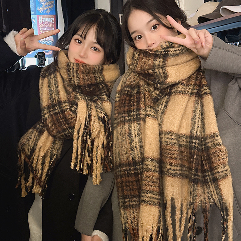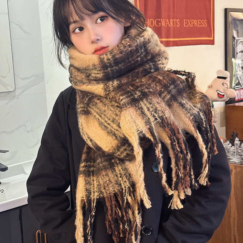 新款复古美拉德围巾百搭保暖加厚冬季氛围感情侣格子流苏围脖女