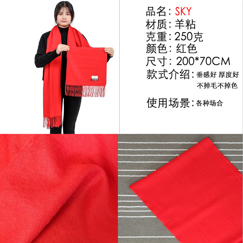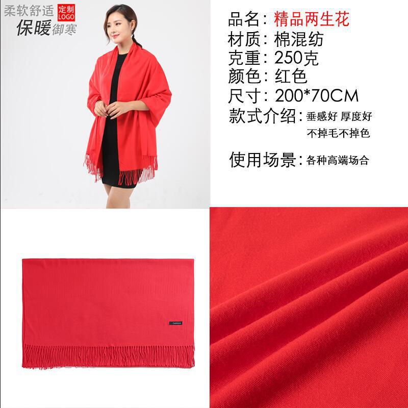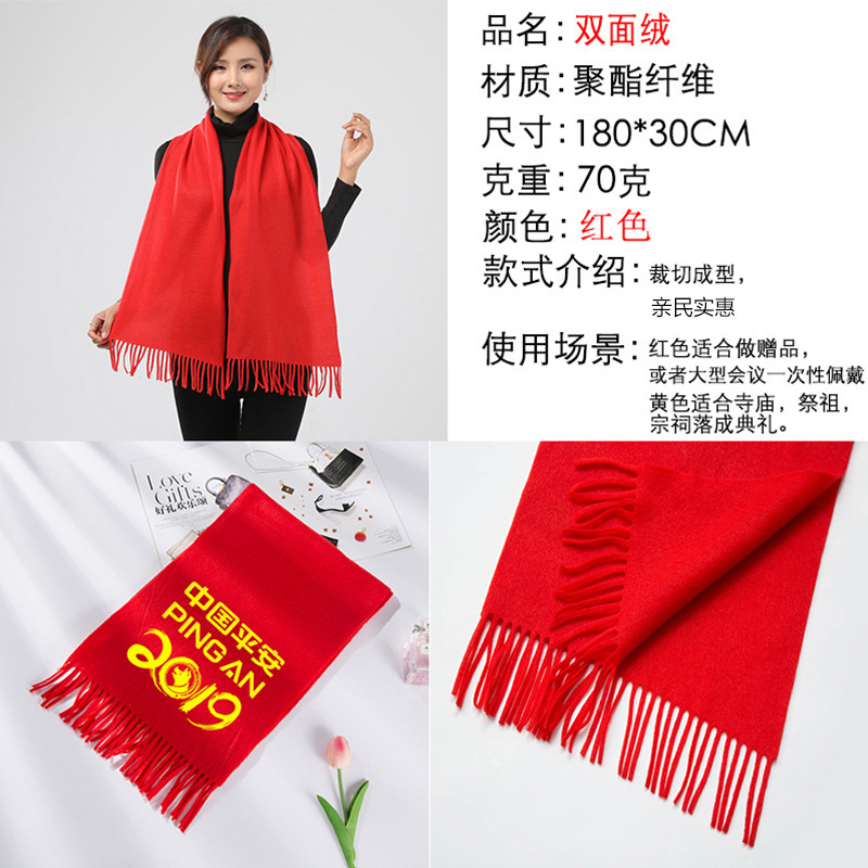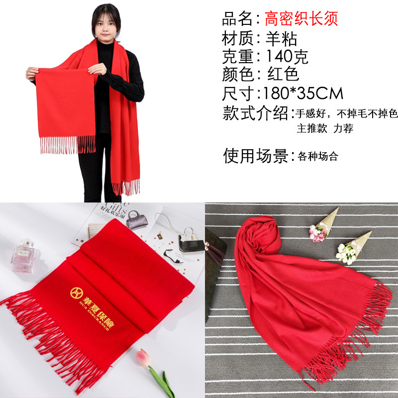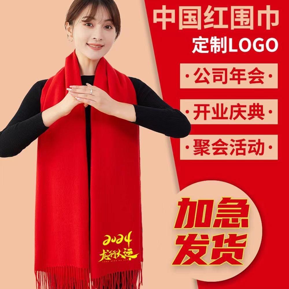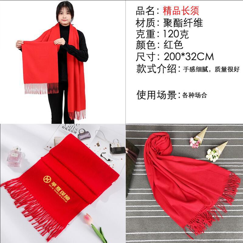 中国风围巾大红色年会议开业典礼聚会仿羊绒围脖刺绣印字围巾纯色