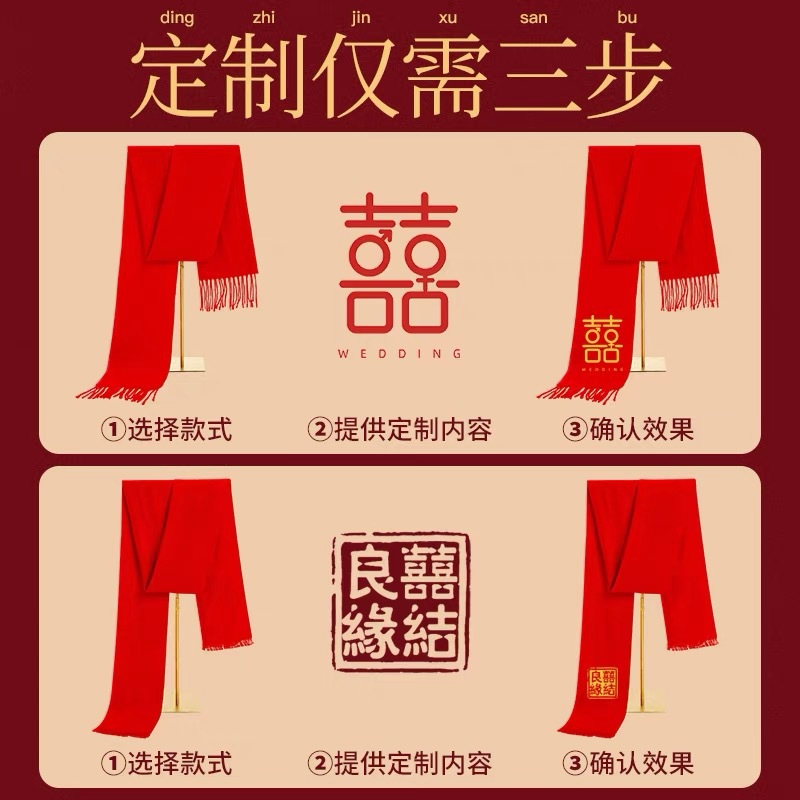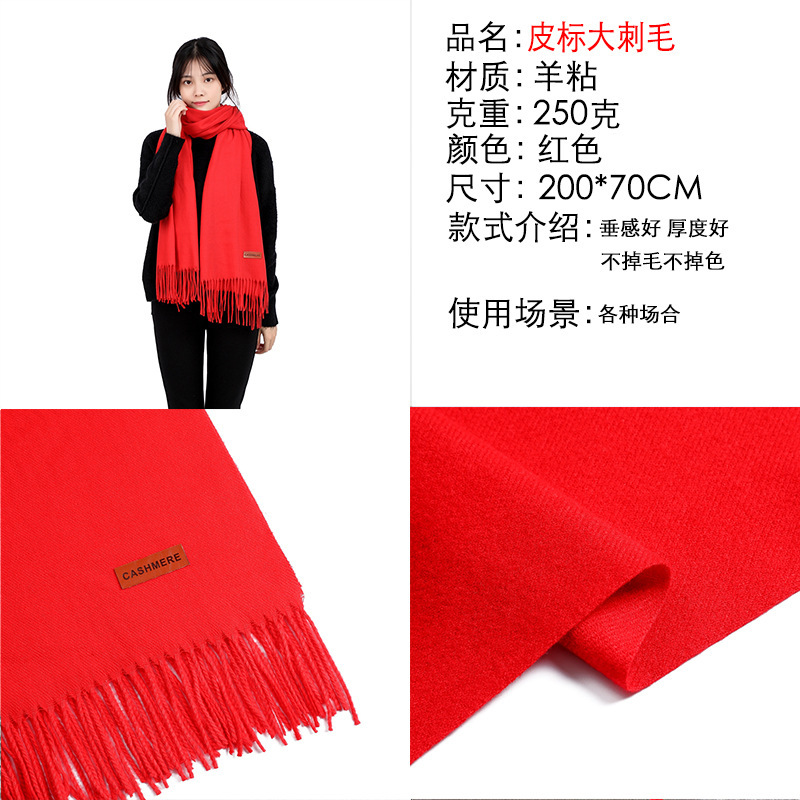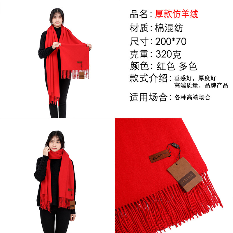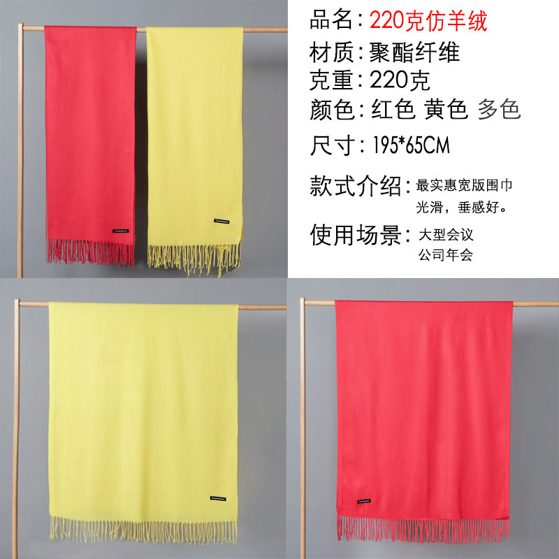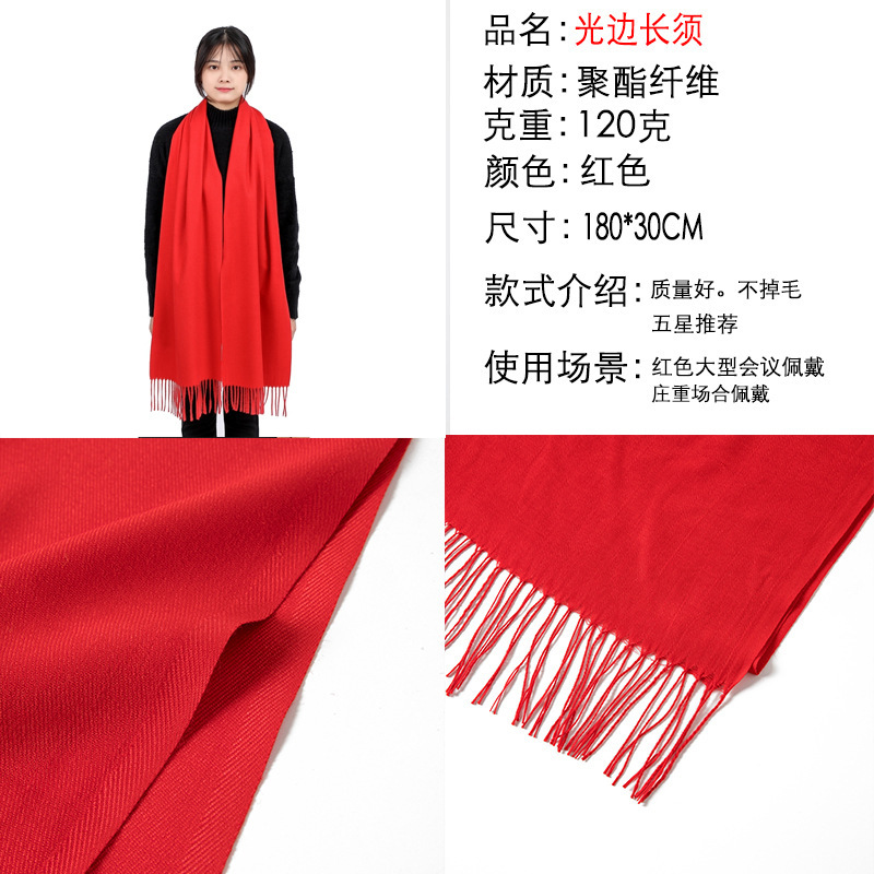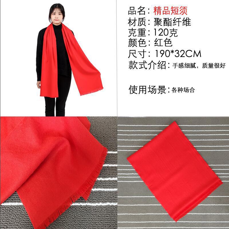 中国风围巾大红色年会议开业典礼聚会仿羊绒围脖刺绣印字围巾纯色
