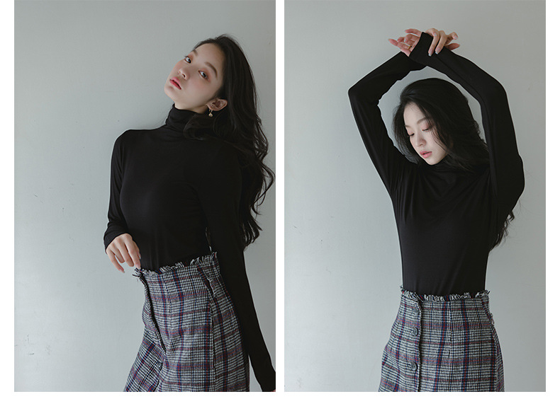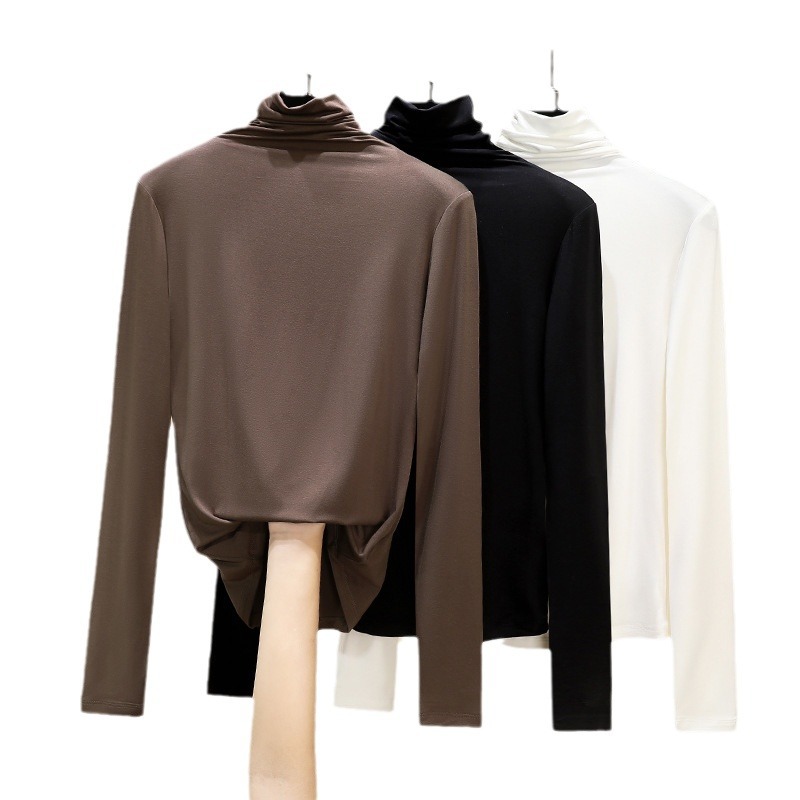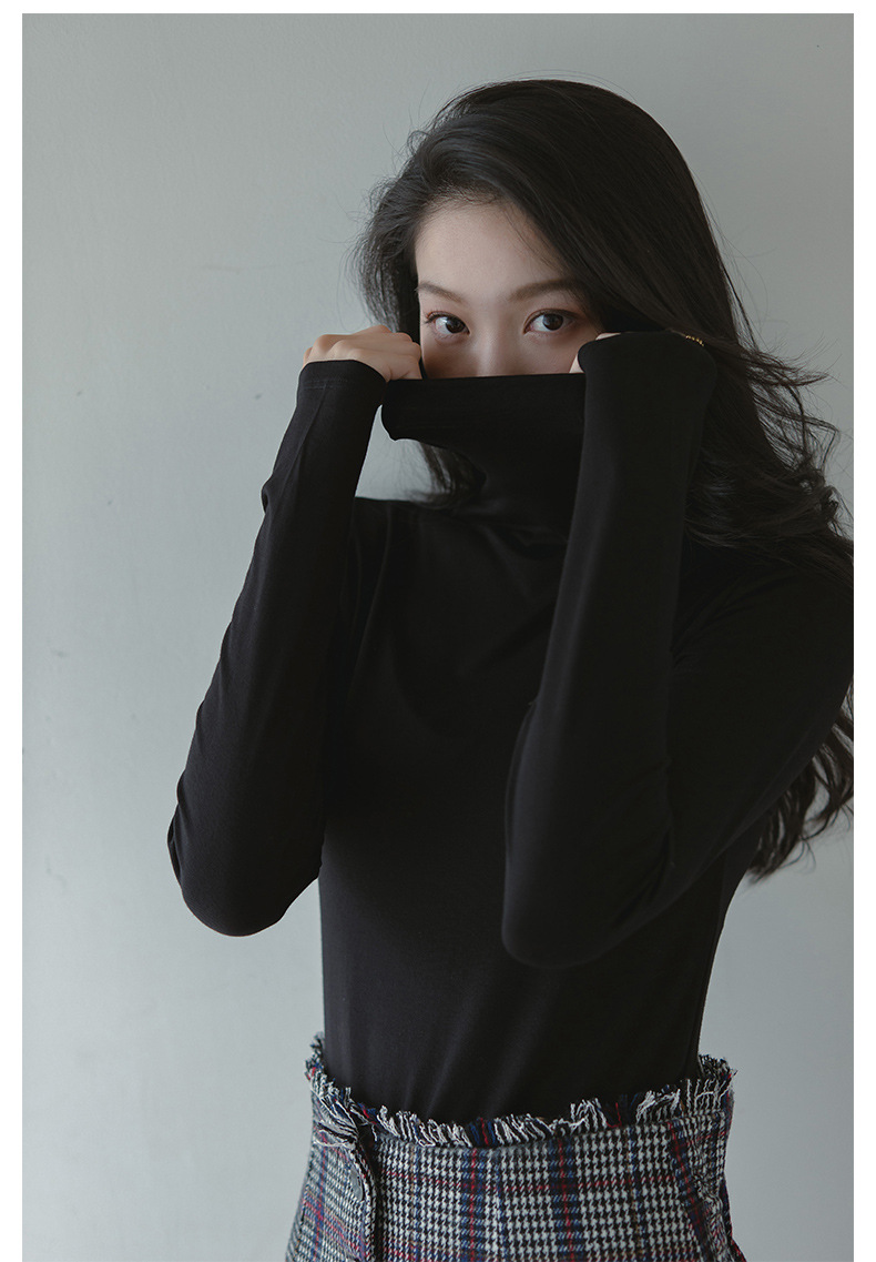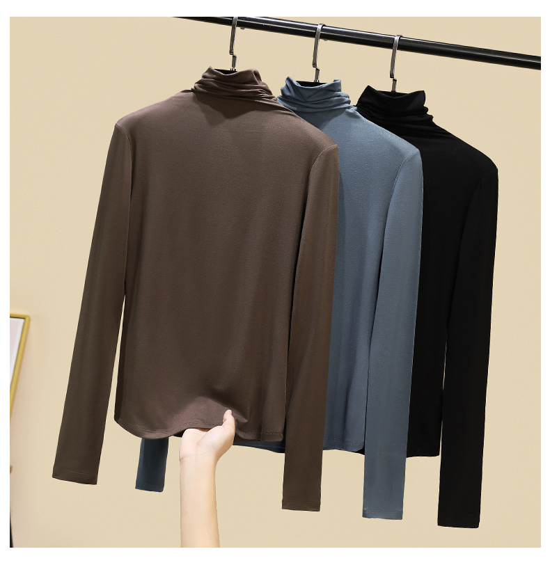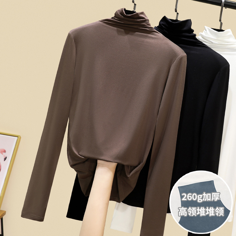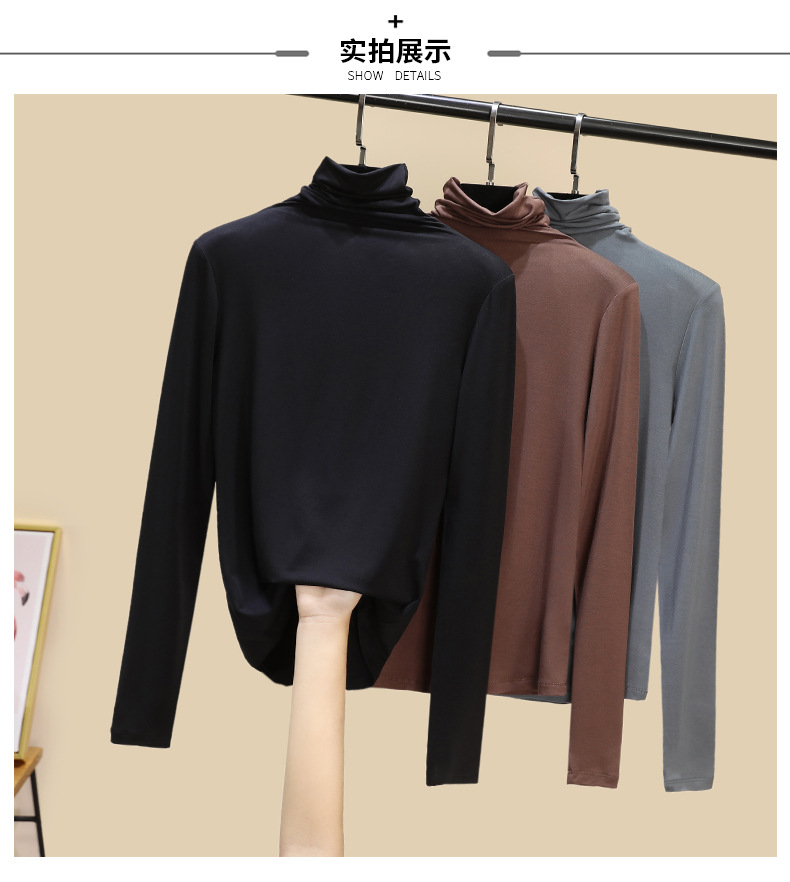 莫代尔休闲高领打底衫女秋冬内搭洋气秋冬2024新款堆堆领黑色上衣