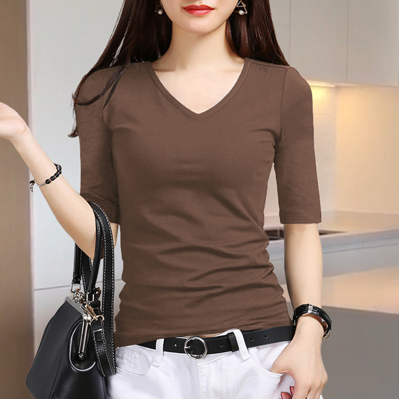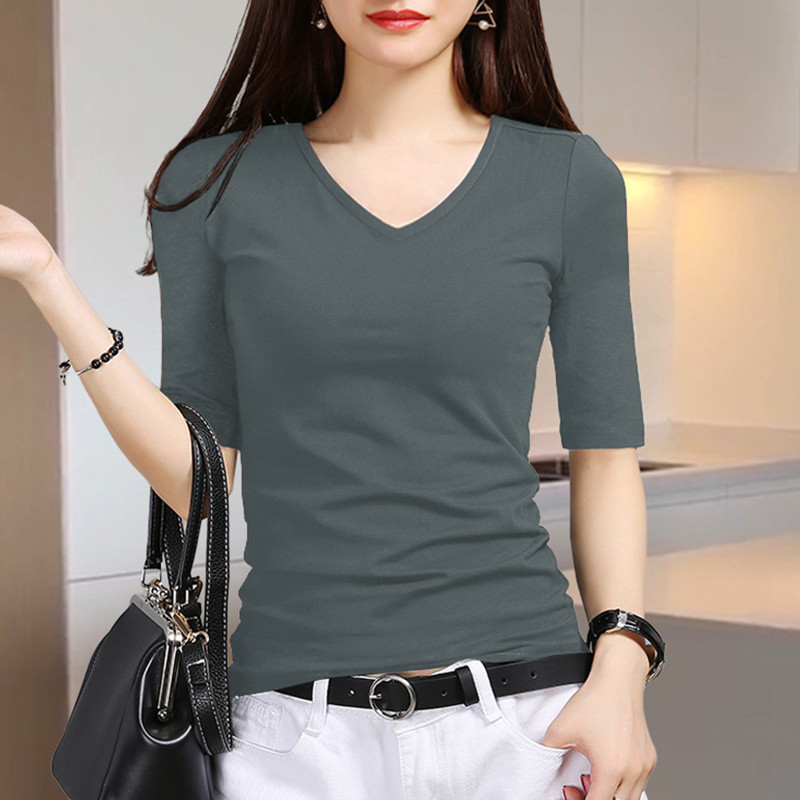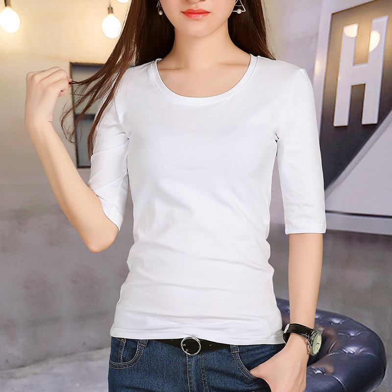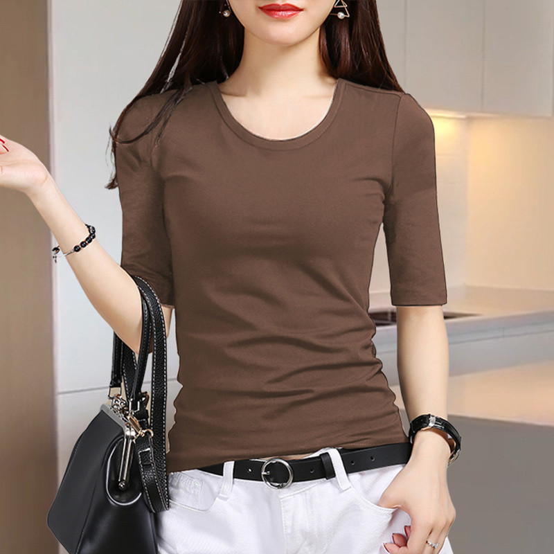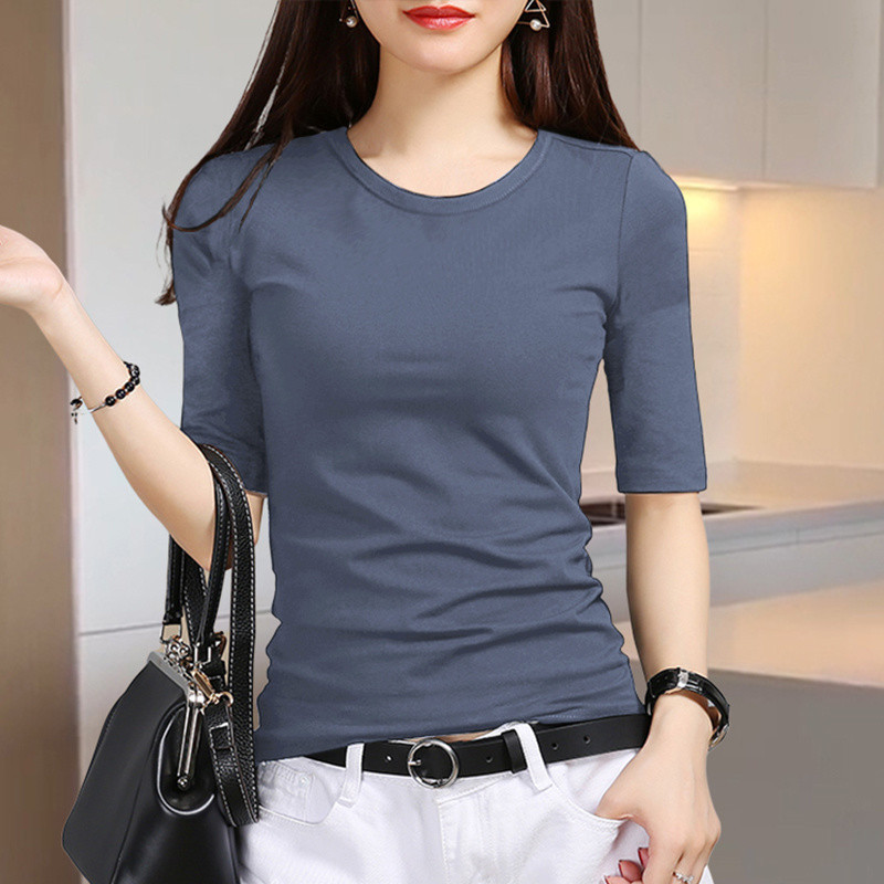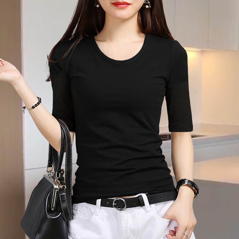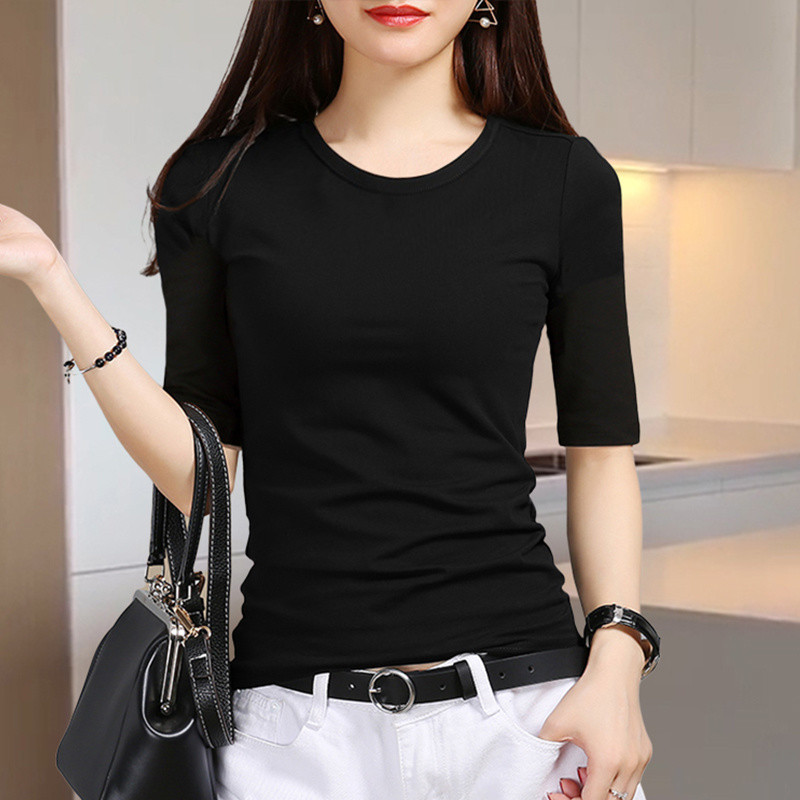 黑色莫代尔中袖上衣女七分袖打底衫女2024年春秋新款7分袖恤女