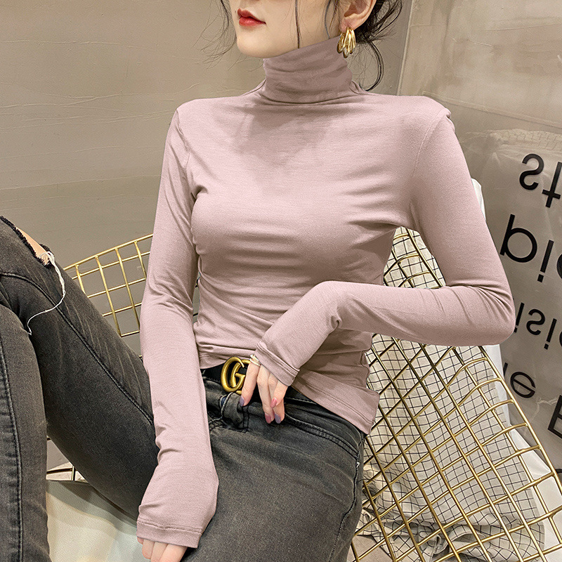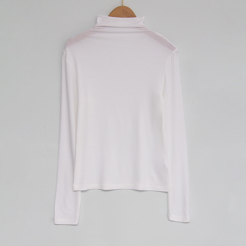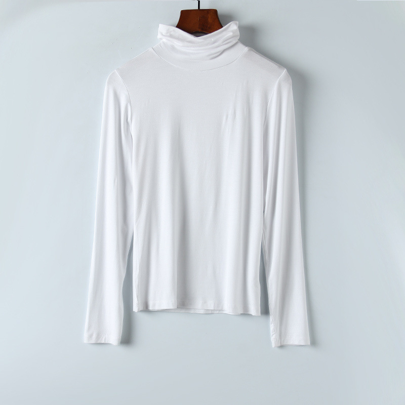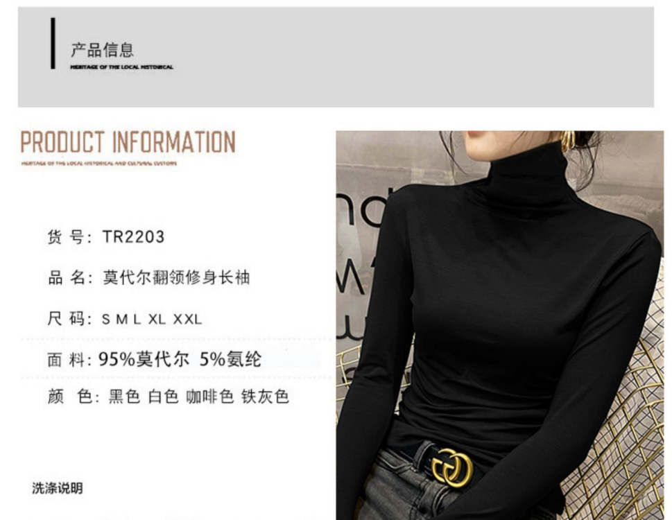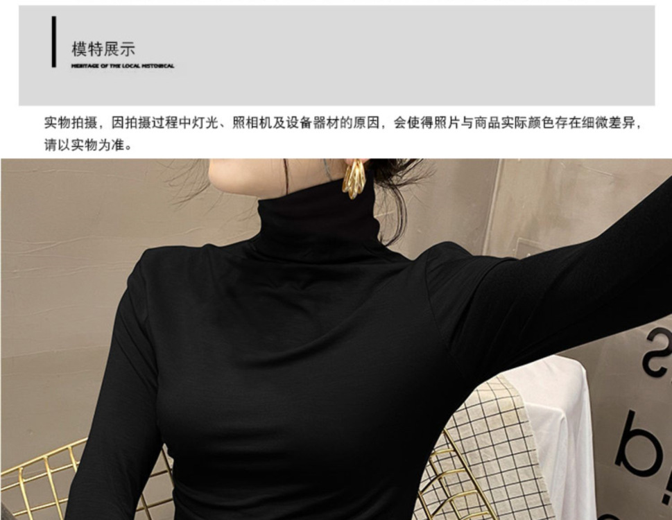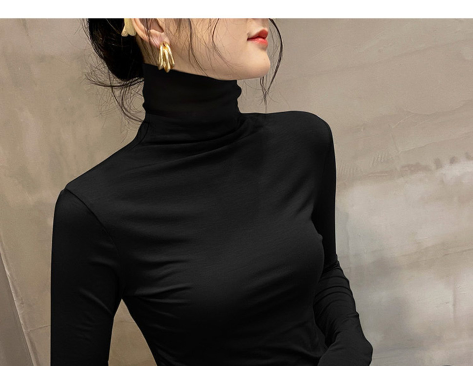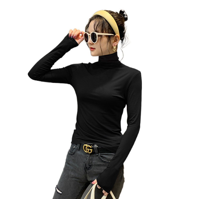 莫代尔高领打底衫女2024春秋冬内搭堆领长袖T恤百搭洋气黑色上衣
