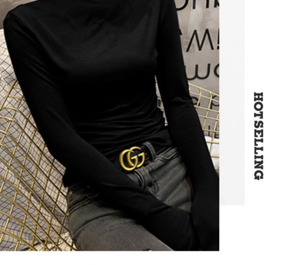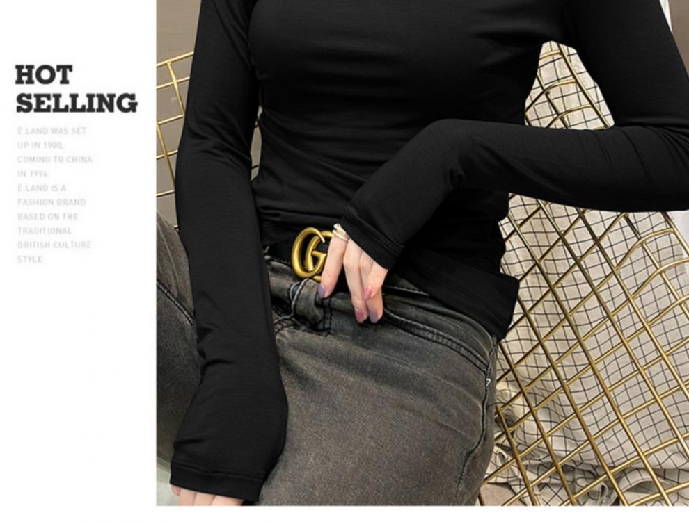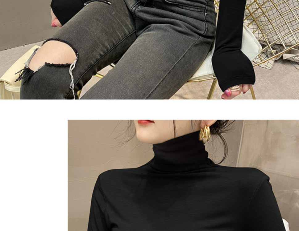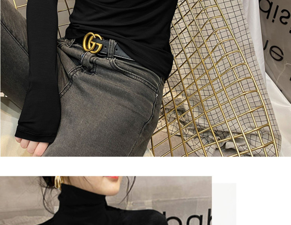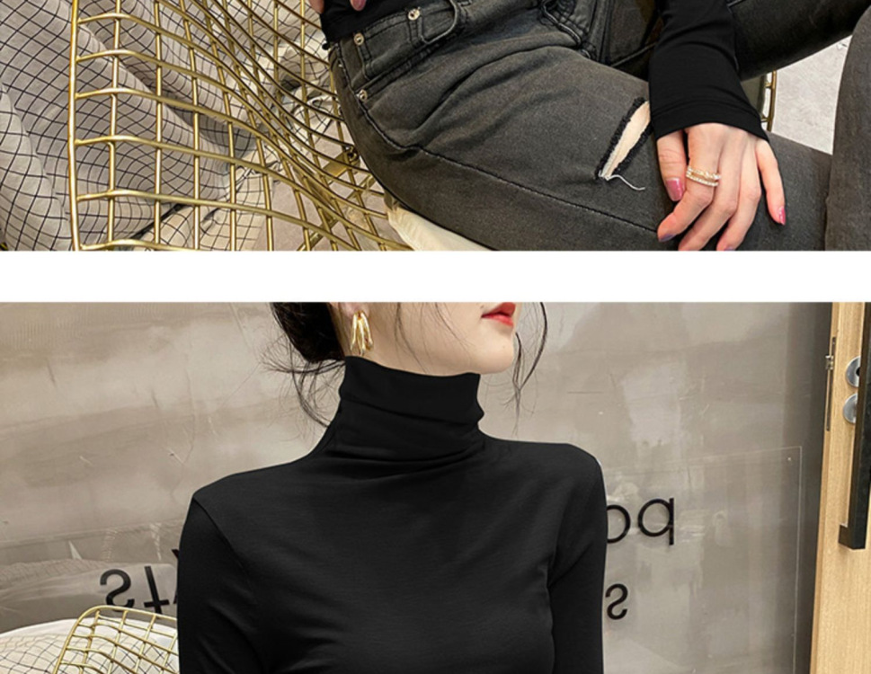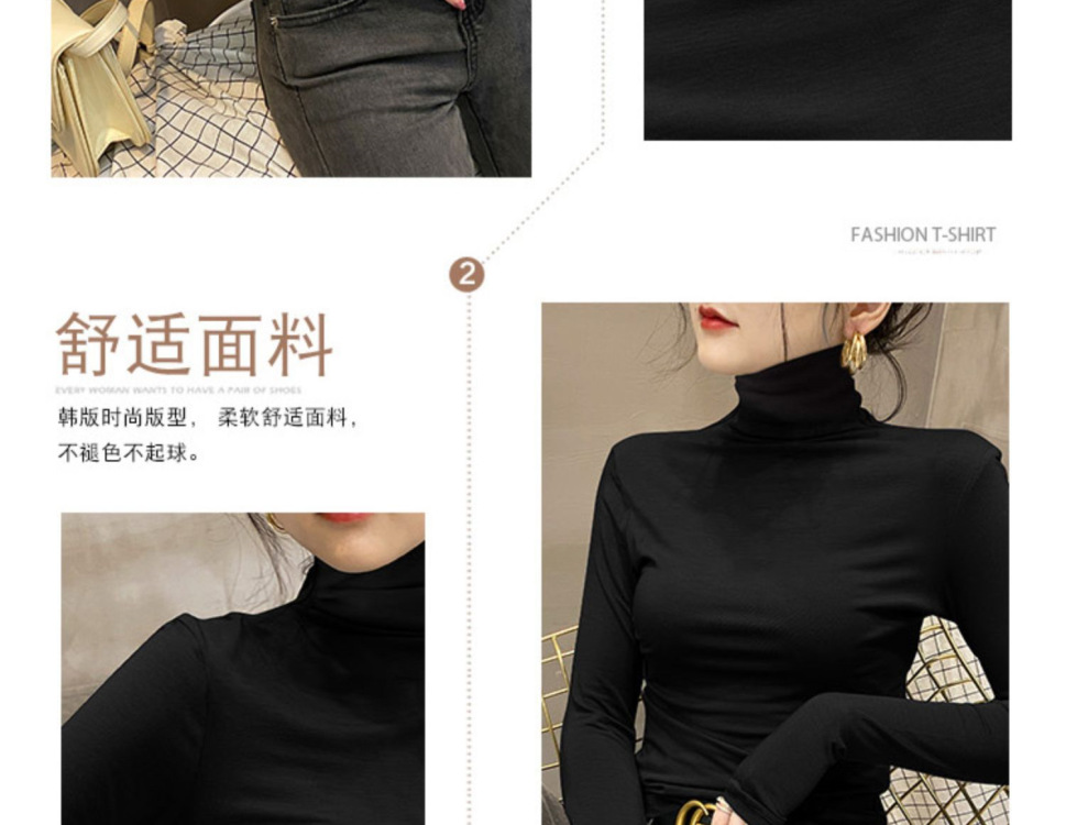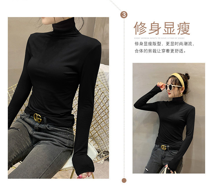 莫代尔高领打底衫女2024春秋冬内搭堆领长袖T恤百搭洋气黑色上衣