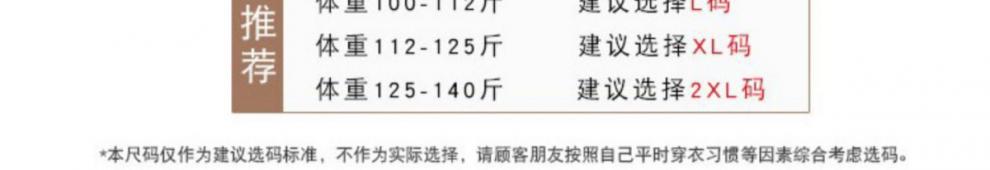| XL 【114-125斤】 | USD $3.29 | 1000 piece available |