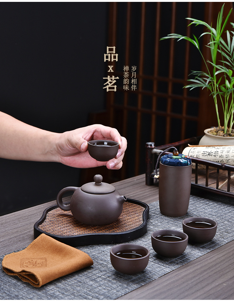 紫砂一壶二杯功夫茶具套装 便携收纳旅行泡茶壶茶杯整套商务礼品