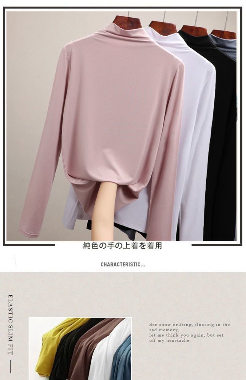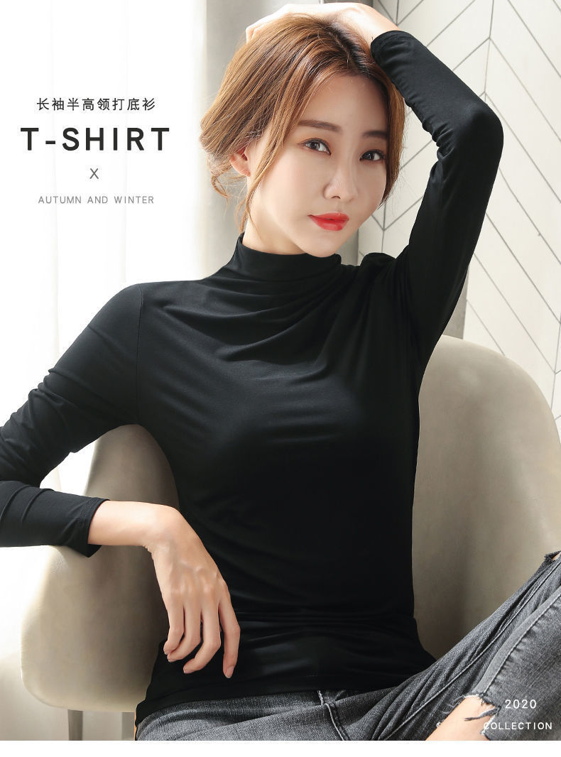 【厂家直销】莫代尔半高领打底衫女秋冬长袖t恤薄款内搭叠穿上衣