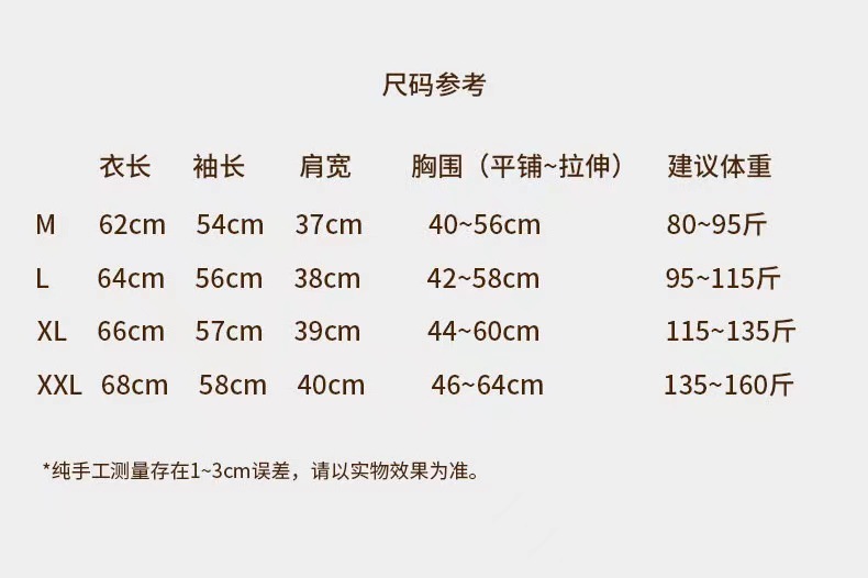 | 2XL-【135-160斤】 | USD $0.0 | 77 piece available |