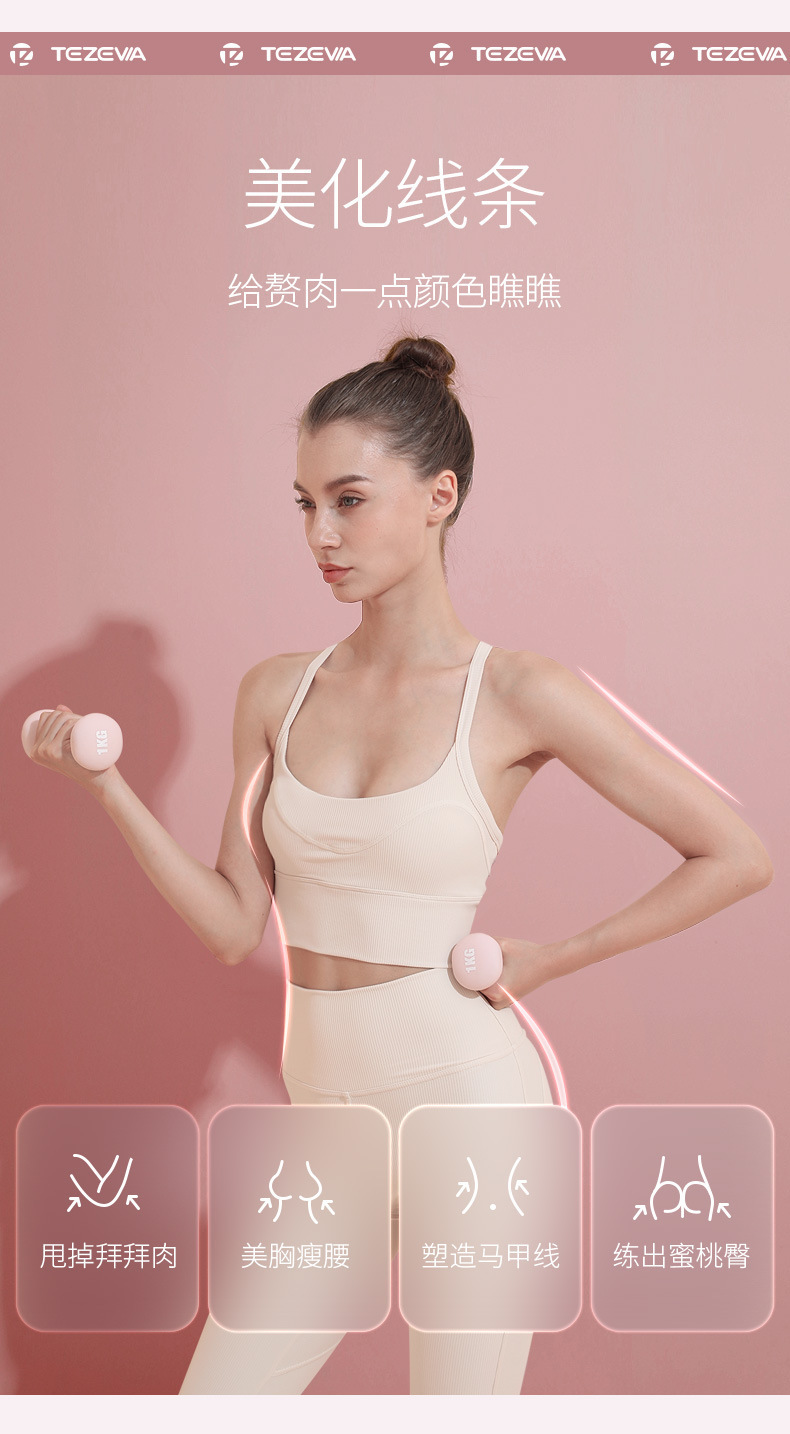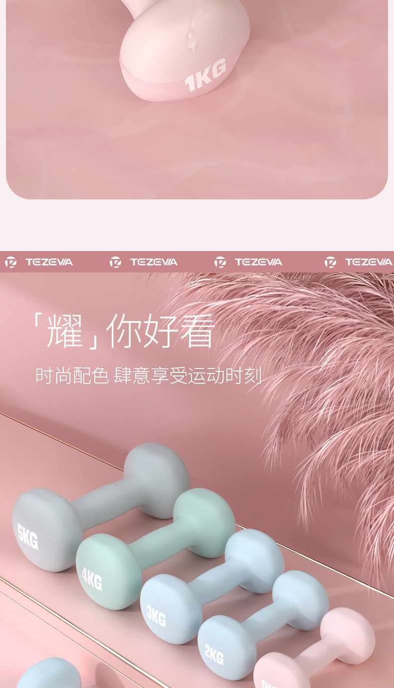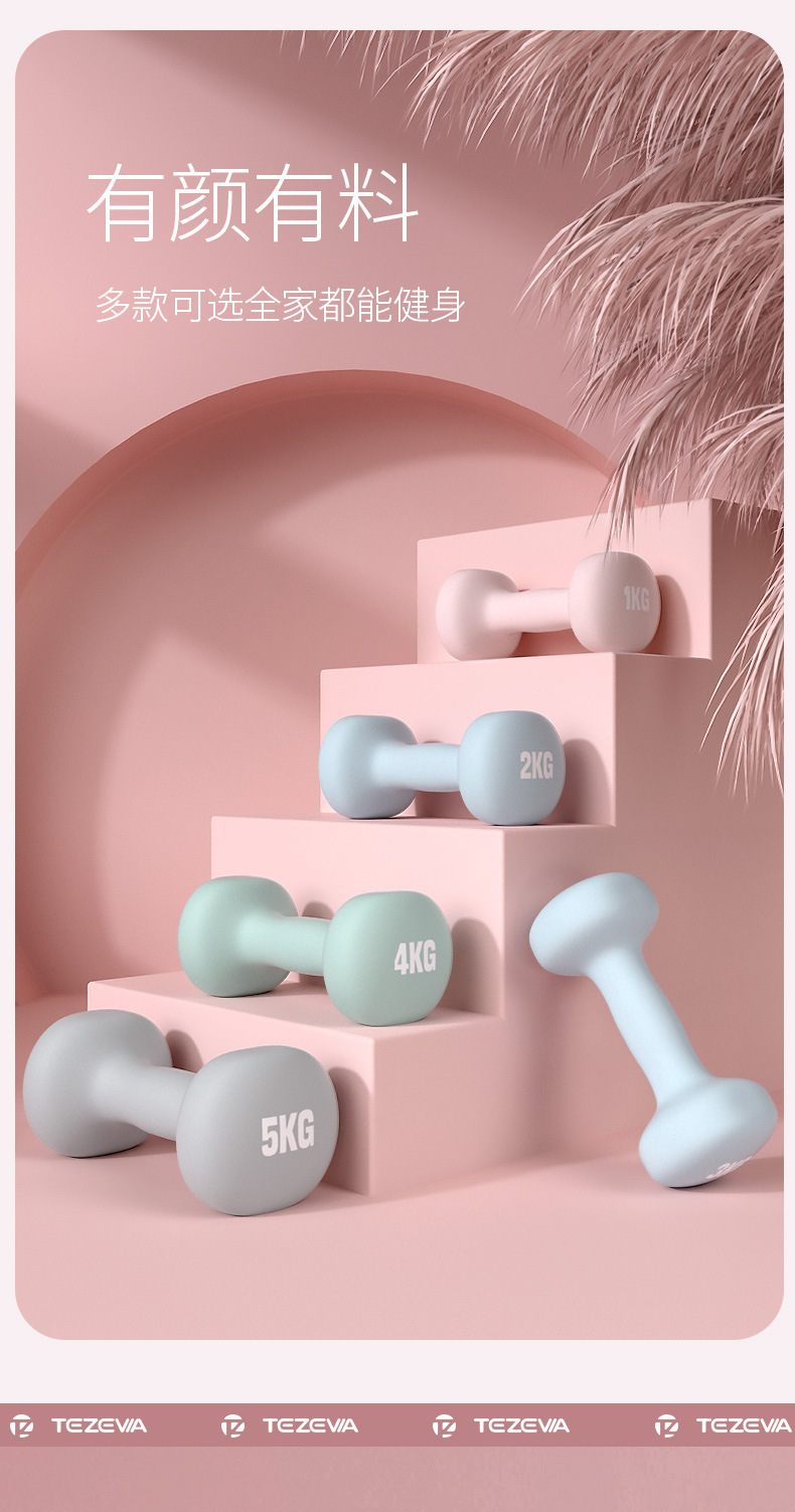 女士特泽瓦浸塑哑铃彩色儿童瑜伽包胶小哑铃实心铸铁小哑铃