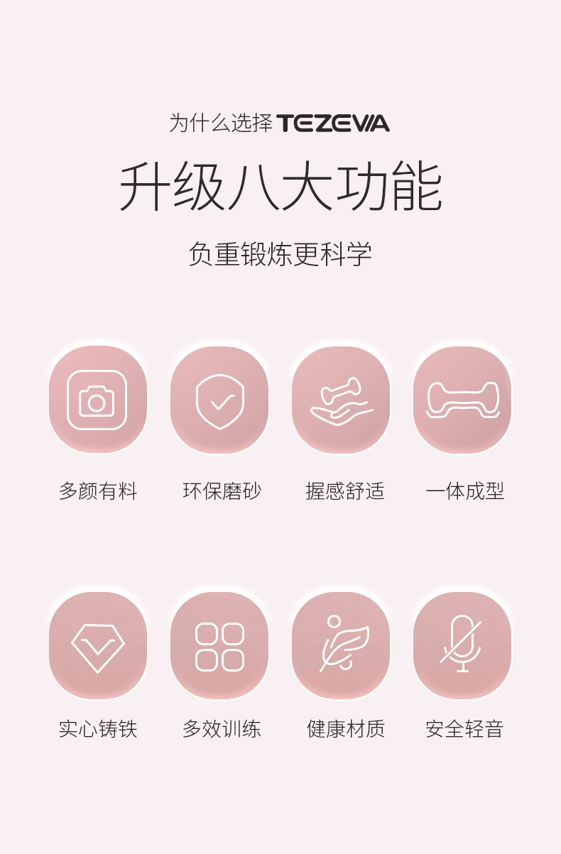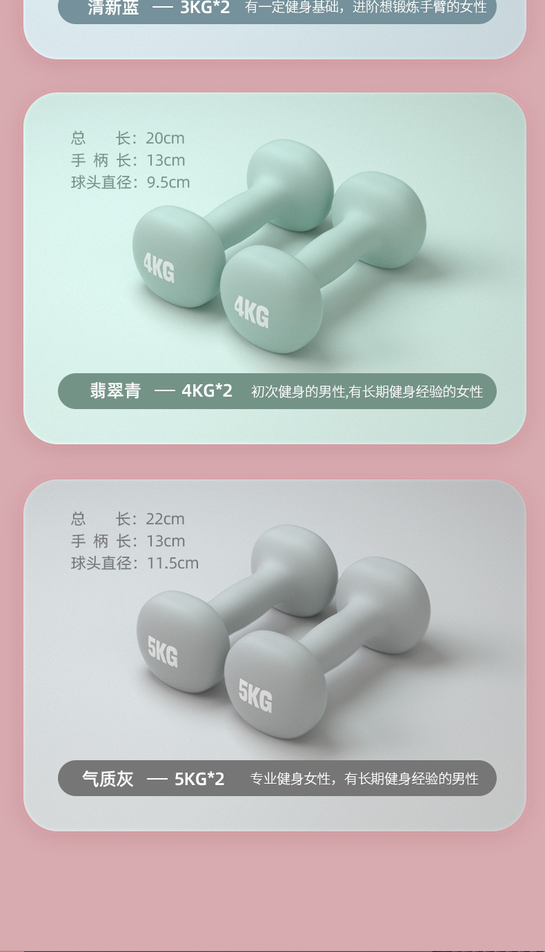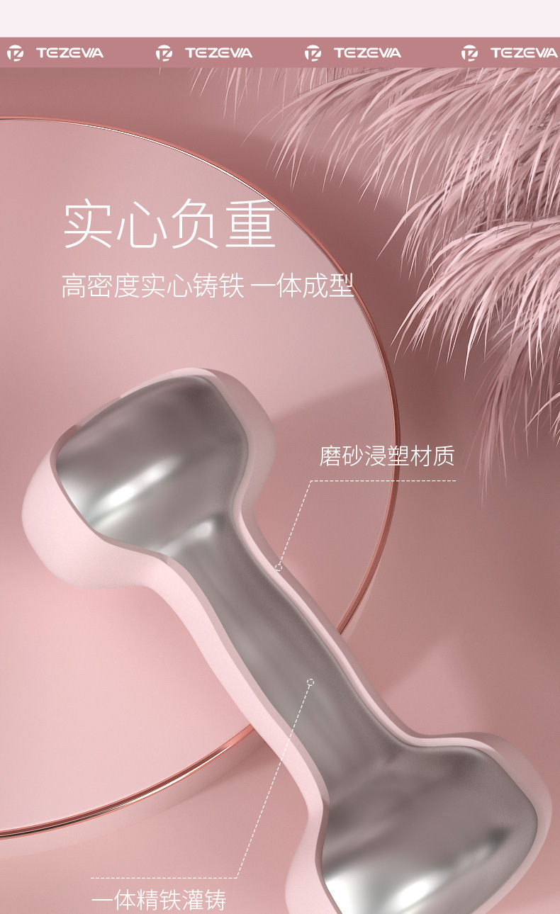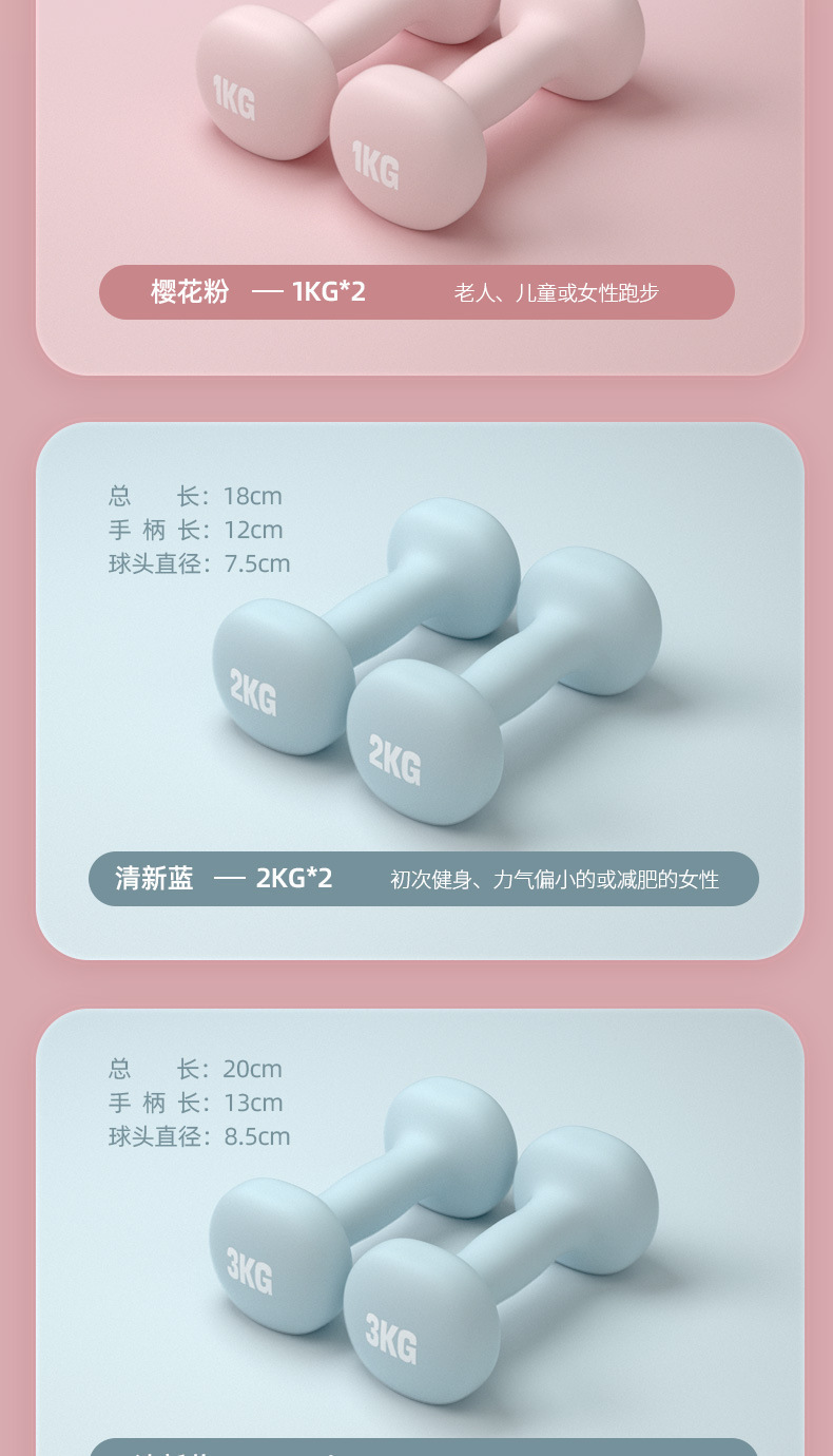 女士特泽瓦浸塑哑铃彩色儿童瑜伽包胶小哑铃实心铸铁小哑铃
