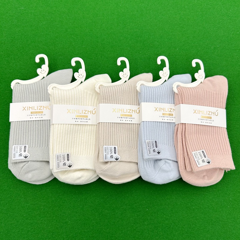 加厚秋冬袜子女长绒棉中筒袜多巴胺色双针织法女士棉袜诸暨袜业