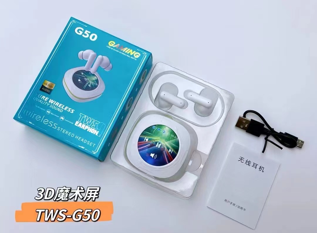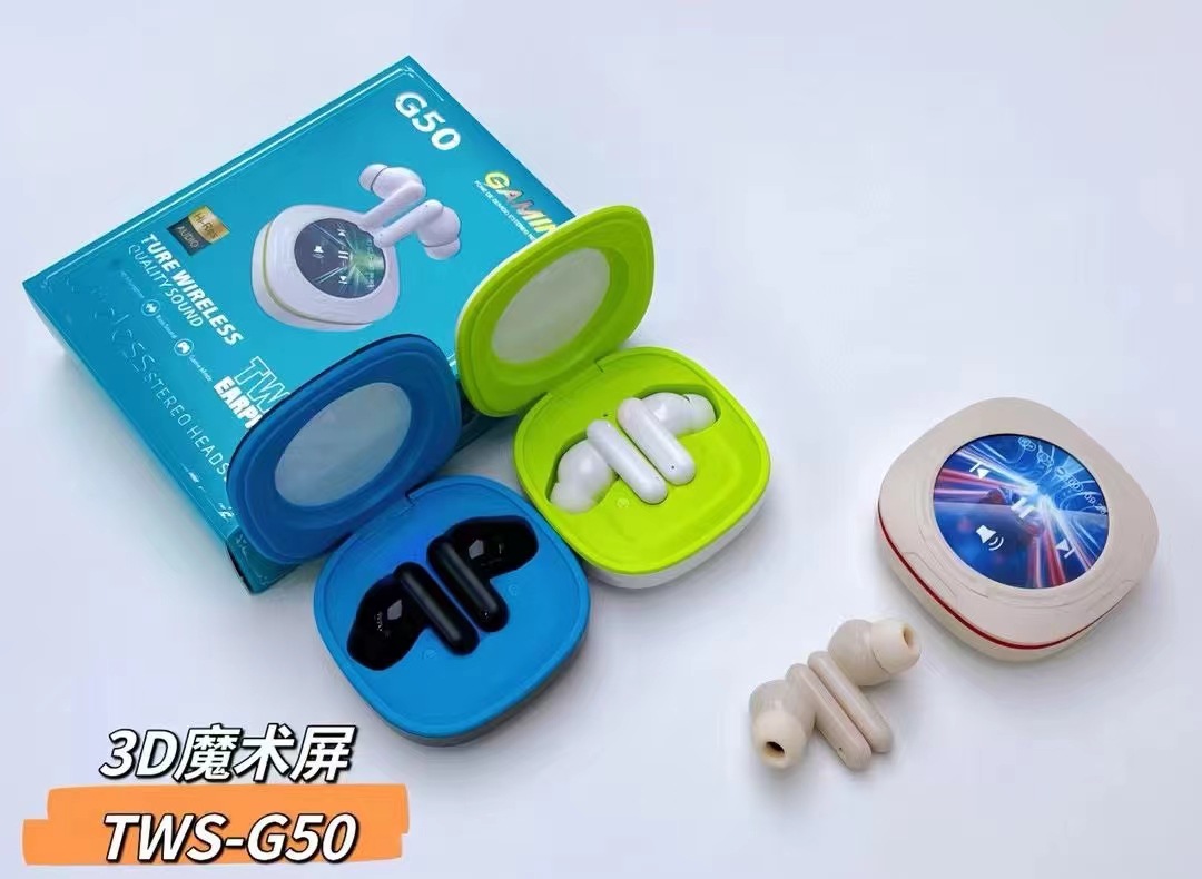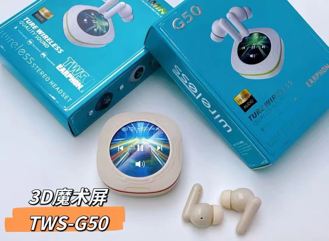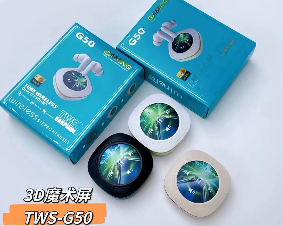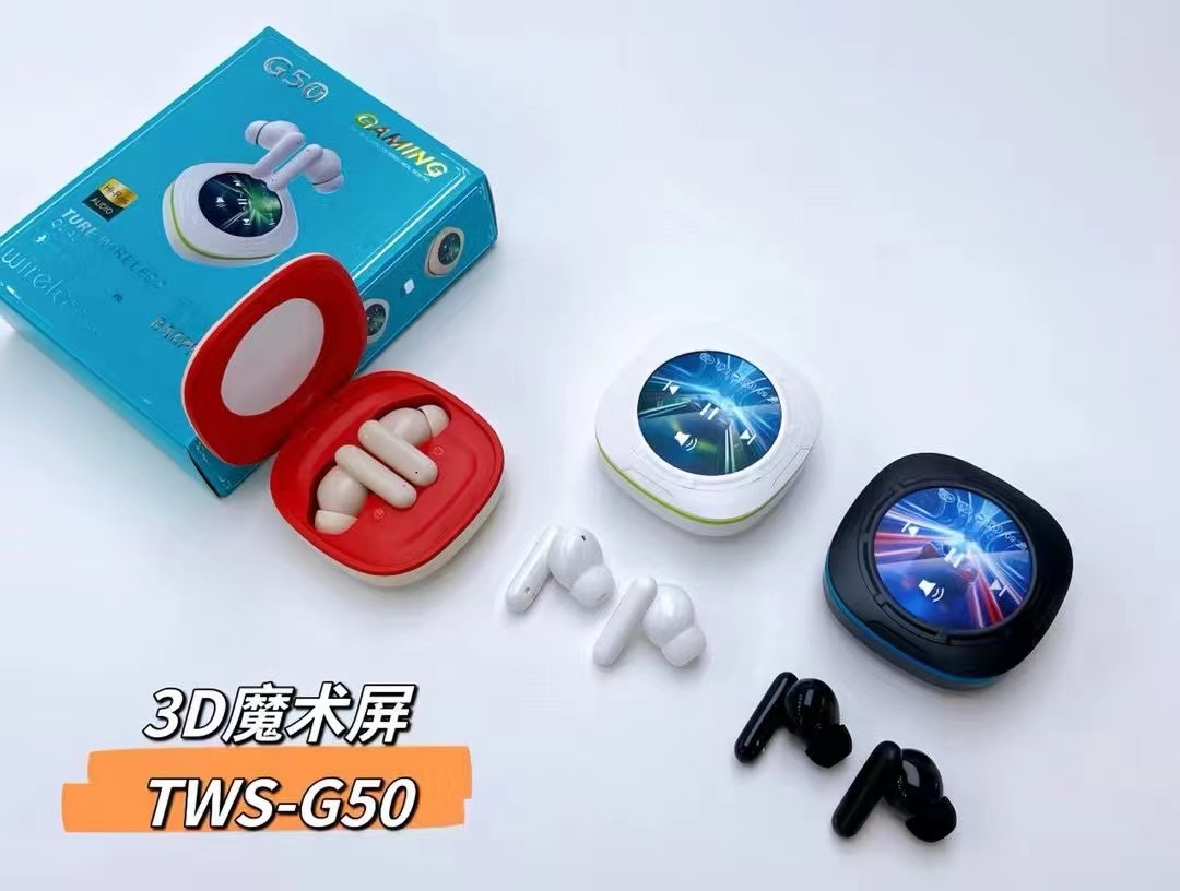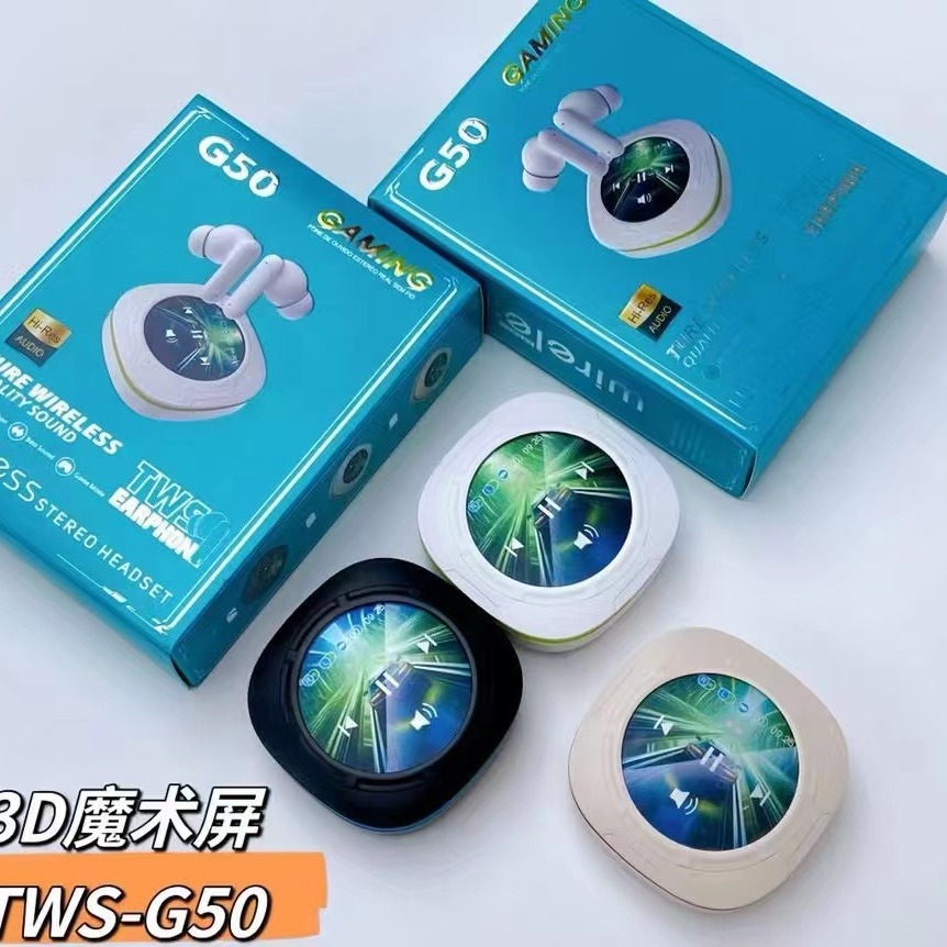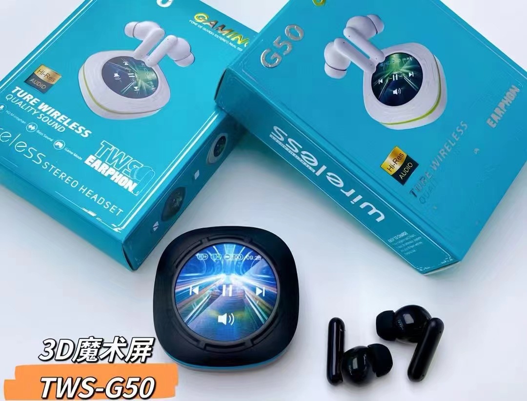 G50新品蓝牙耳机3D魔术屏TWS无线重低音降噪耳机跨境爆款带屏耳机