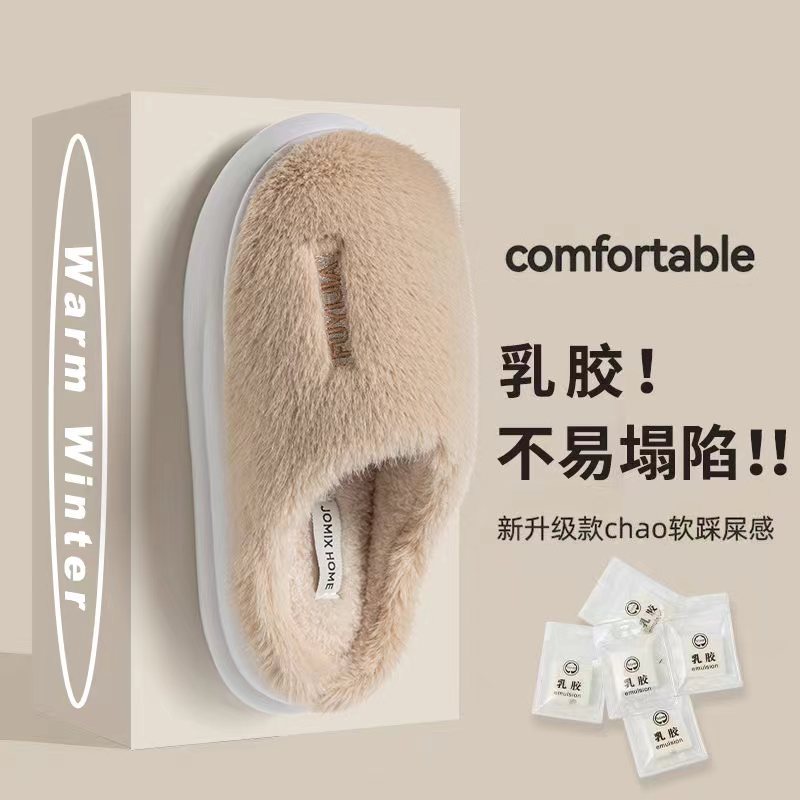 高档超厚棉拖鞋男冬季爆款踩屎感乳胶厚底毛茸茸耐磨舒适居家室内
