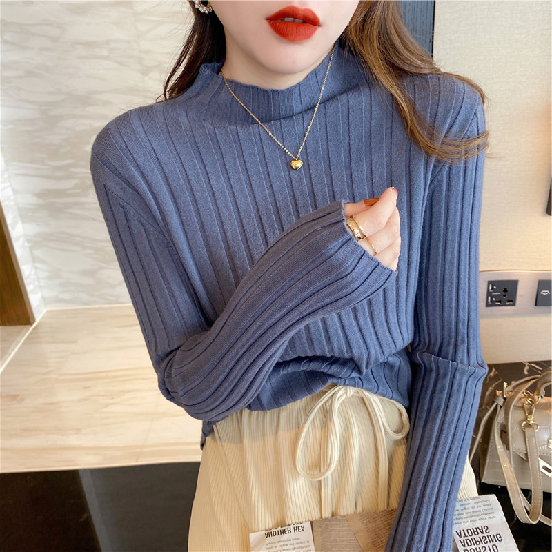 坑条半高领打底衫女士内搭毛衣女秋冬白色洋气百搭上衣黑色针织衫