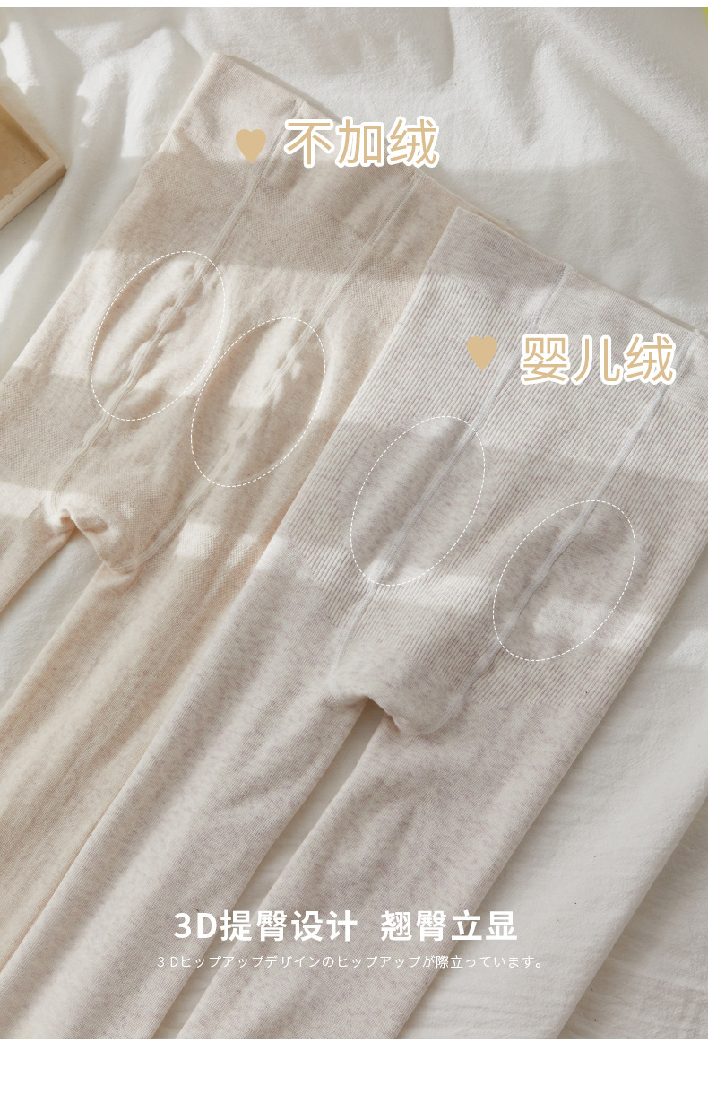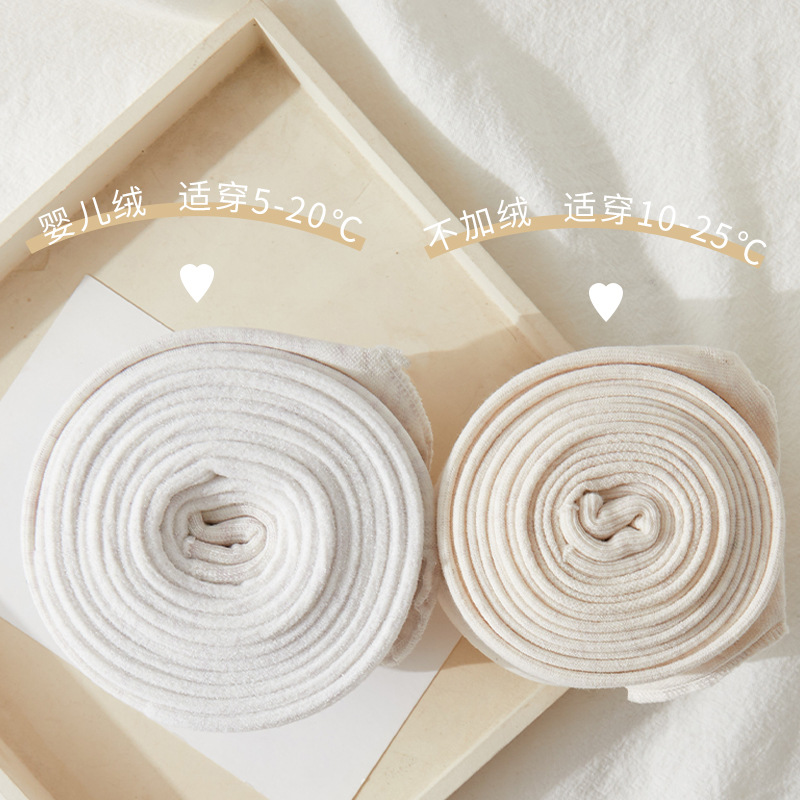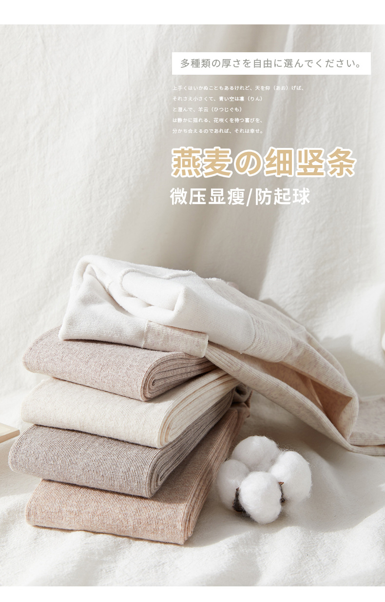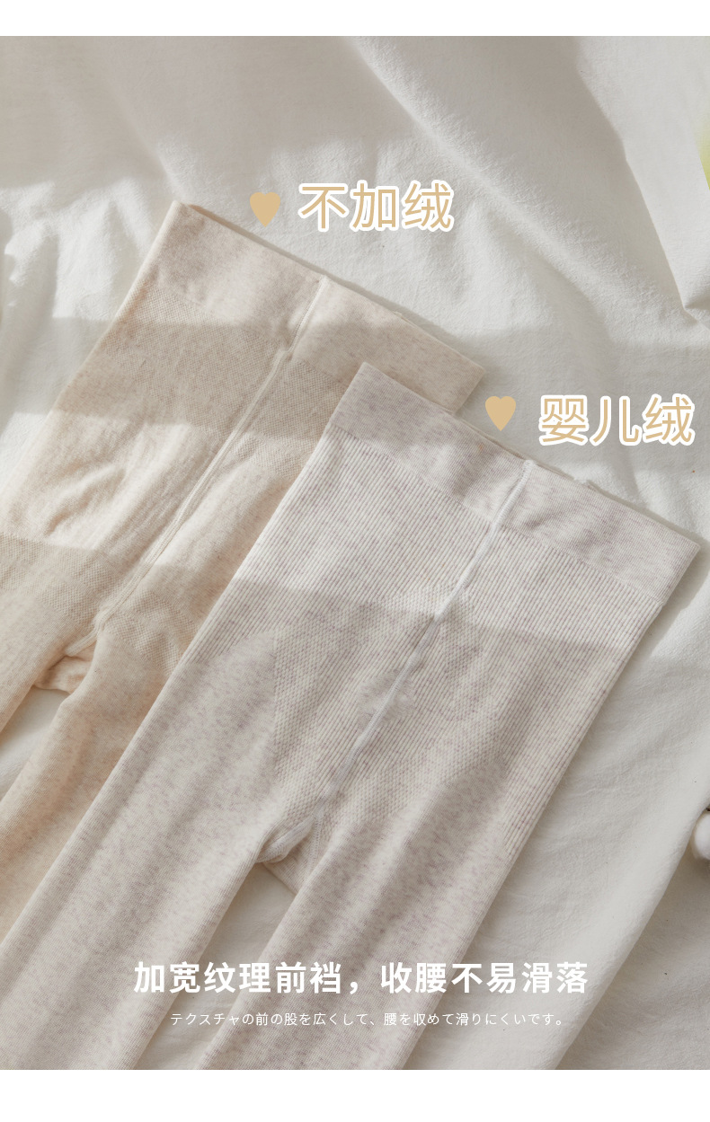 秋冬日系精梳棉打底裤婴儿绒竖条微压收腹提臀燕麦白浅色连袜裤女