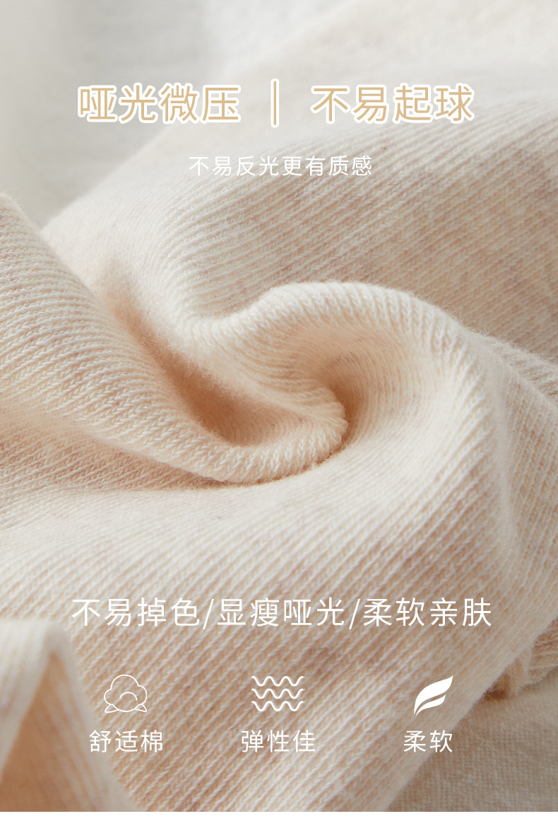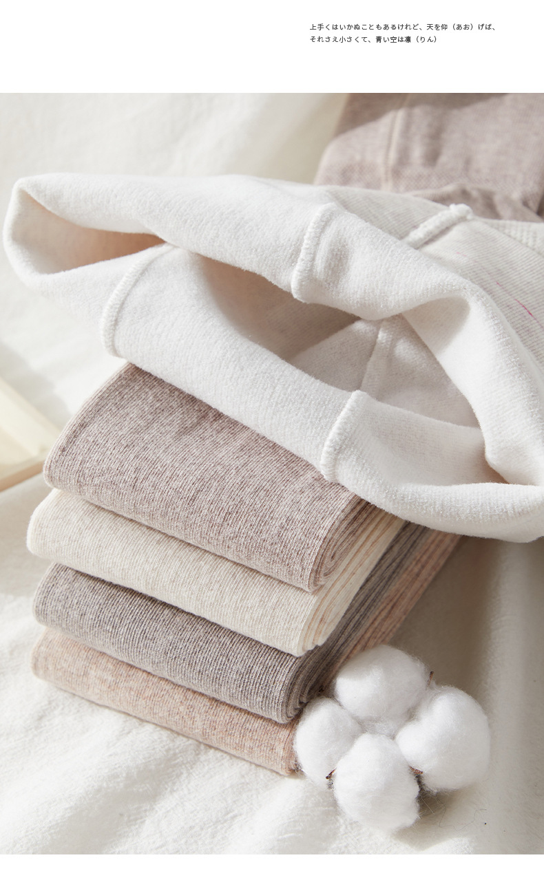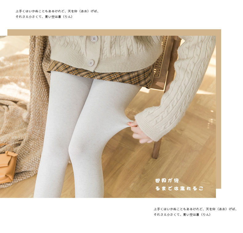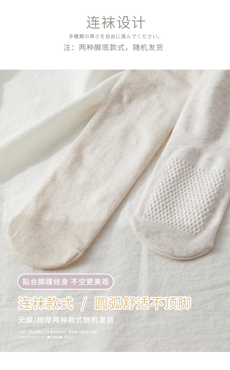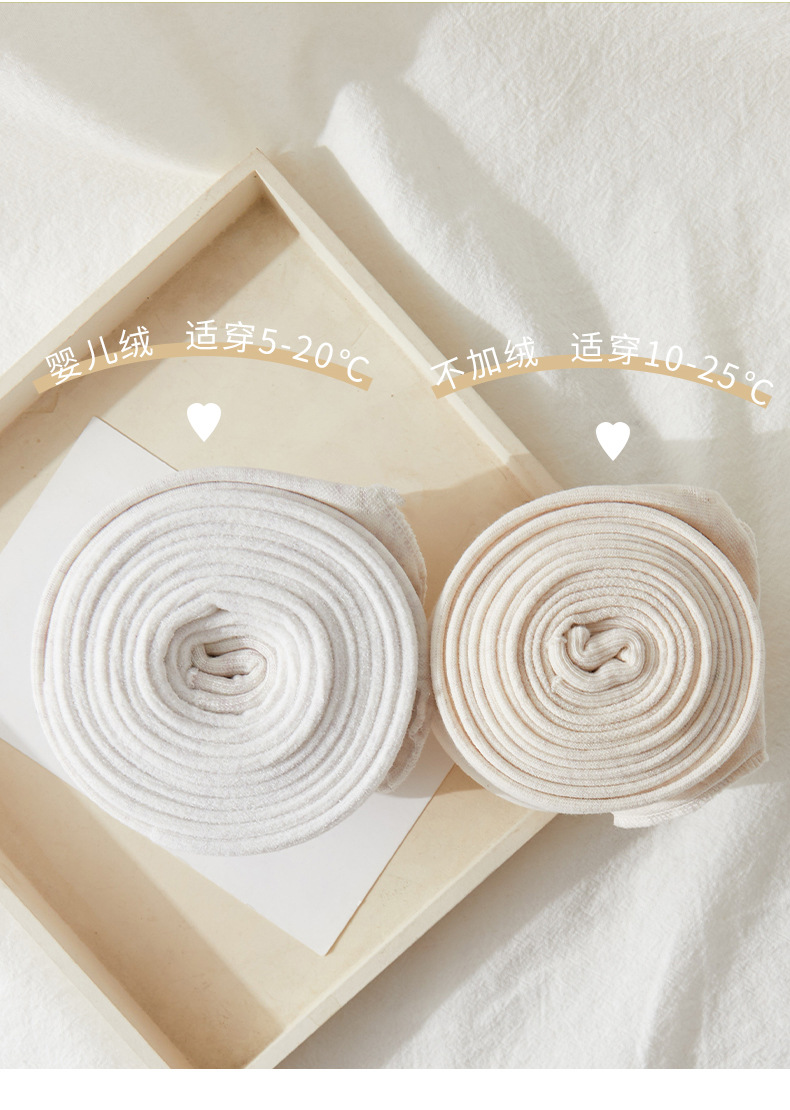 秋冬日系精梳棉打底裤婴儿绒竖条微压收腹提臀燕麦白浅色连袜裤女
