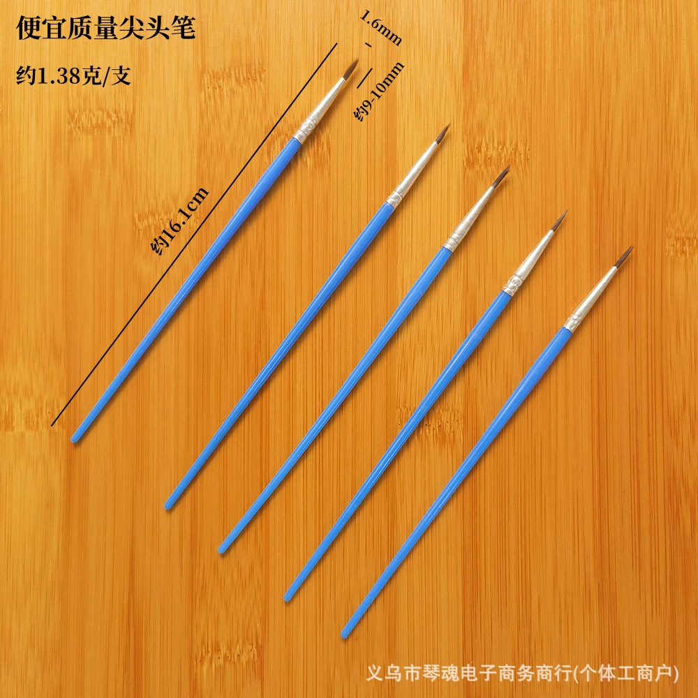 规格:8CM、10.8CM、11.5CM、12.5CM、12.8CM、13.5CM、14CM、16.1CM0.5-0.6CM小尖头、16.4CM长0.8-0.8毛长大尖头笔、16.5CM长251-2号尖头笔、0.6CM宽棕色毛扁平头笔、0.8CM宽棕色毛扁平头笔、0.6CM宽双色毛扁平头、0.8CM宽双色毛扁平头笔、0.9CM宽扁平头笔