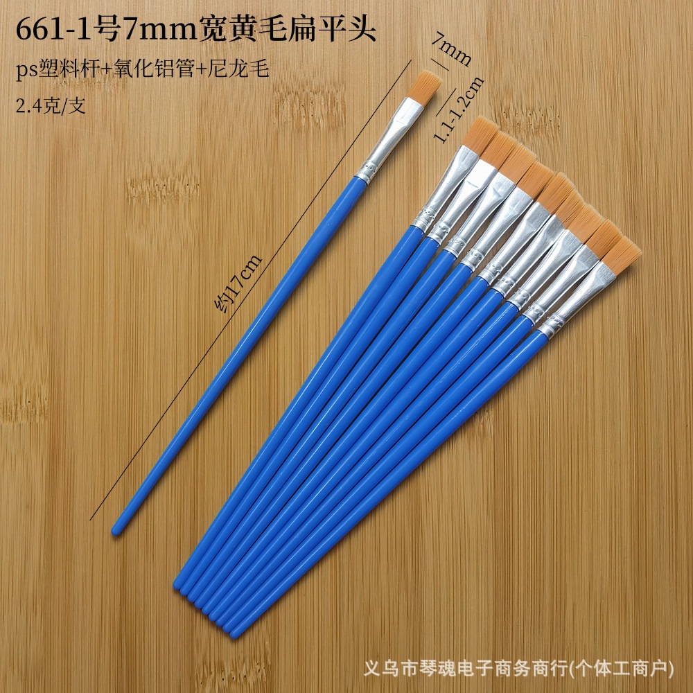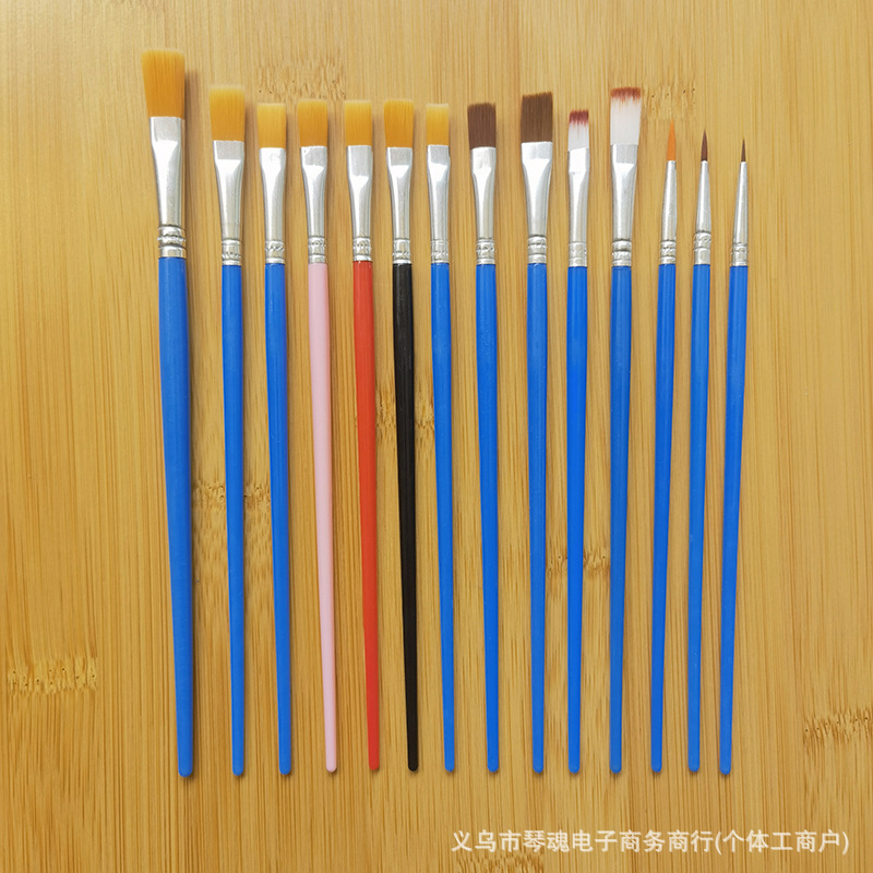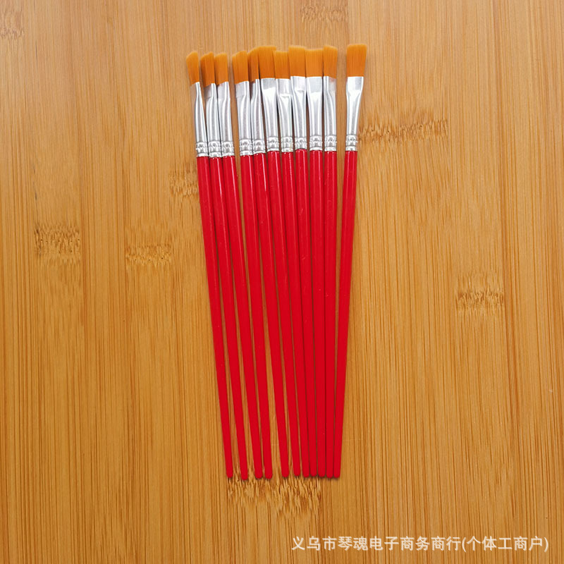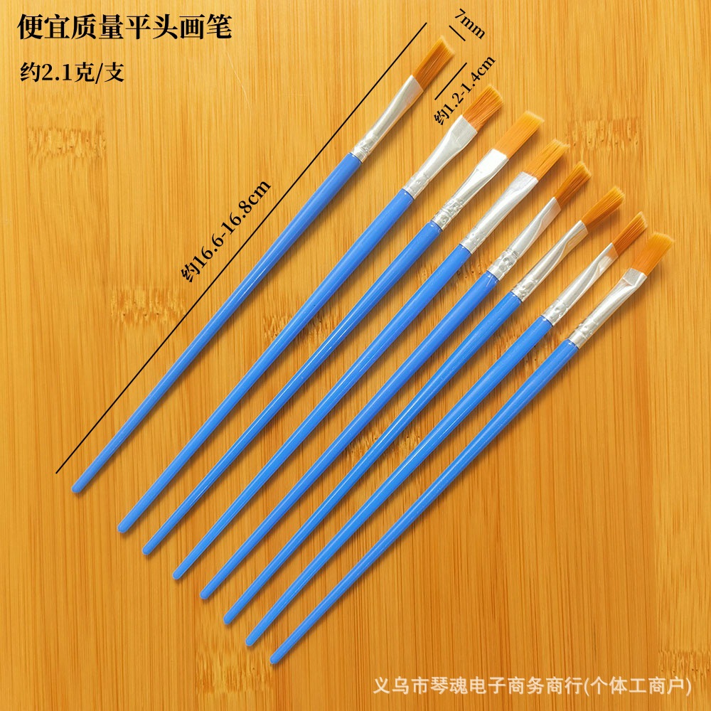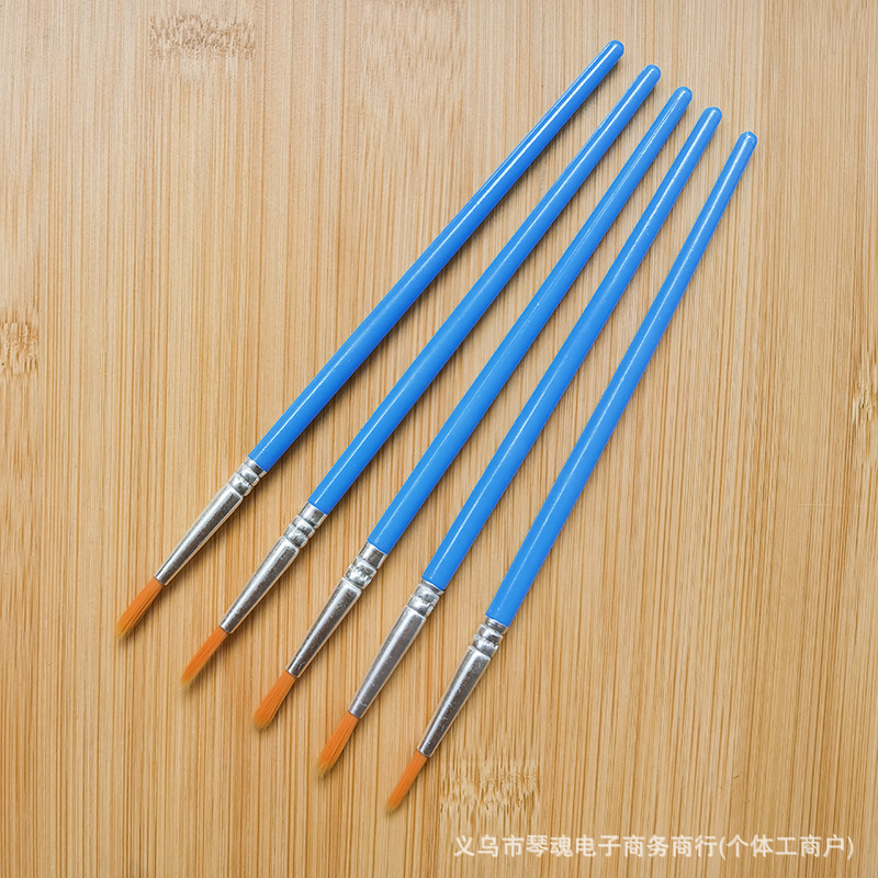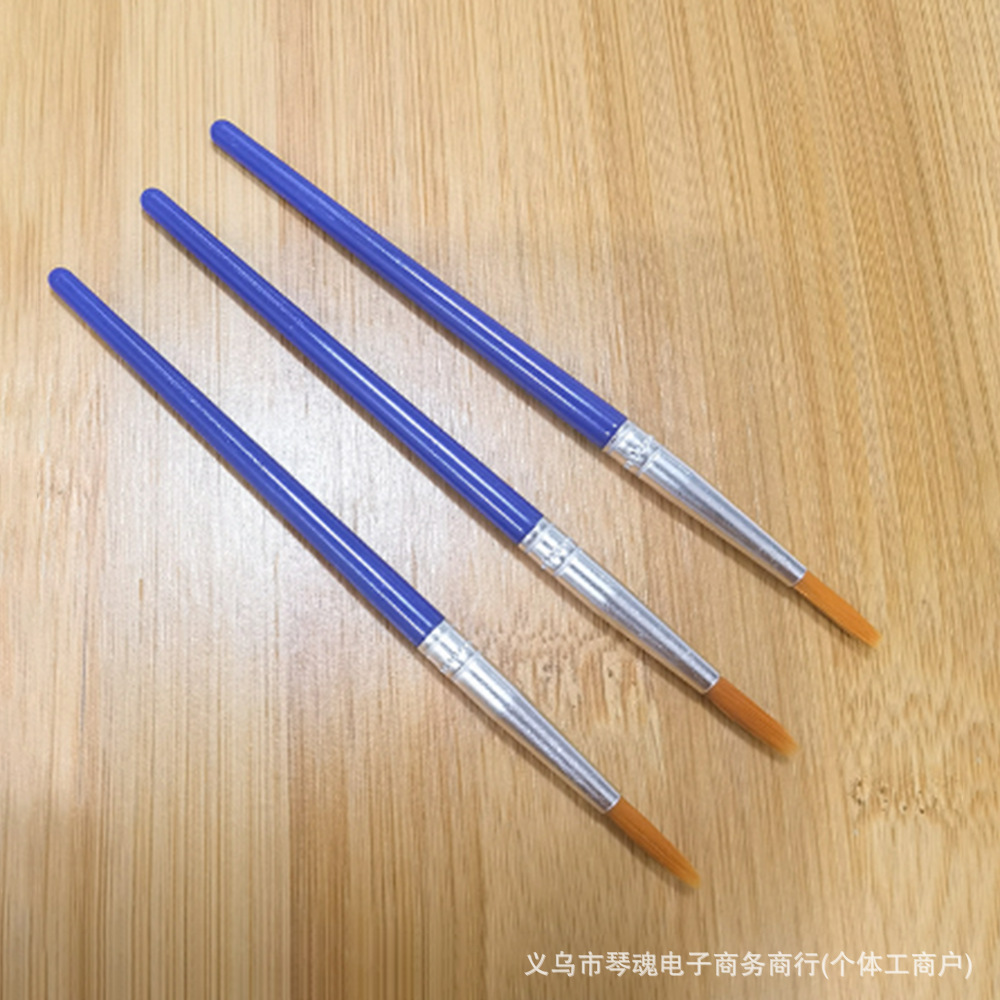 数字油画笔塑料杆尼龙勾线笔儿童平头笔刷石膏陶瓷颜料笔丙烯画笔