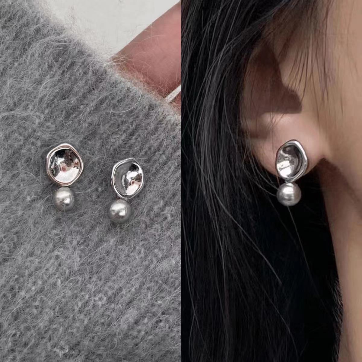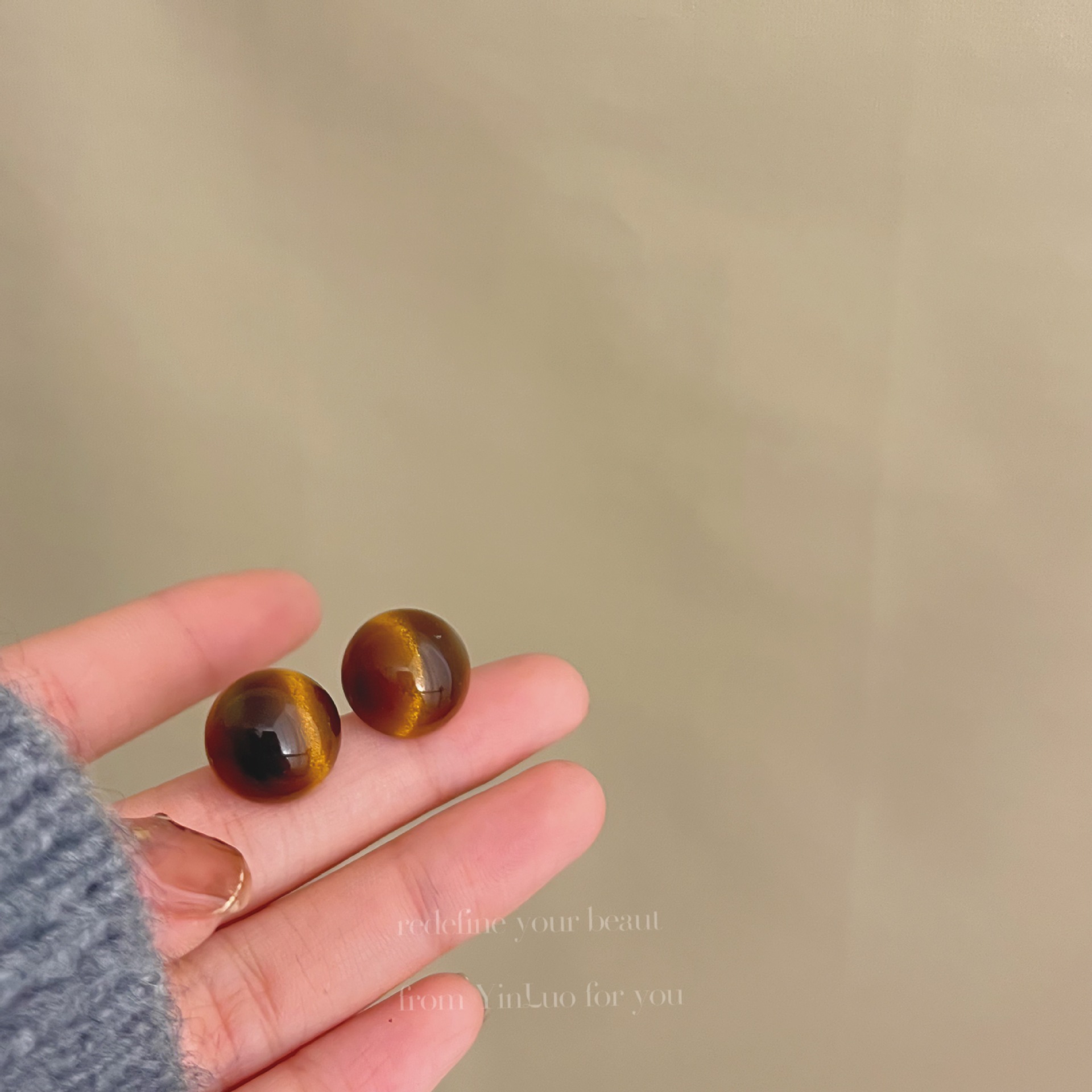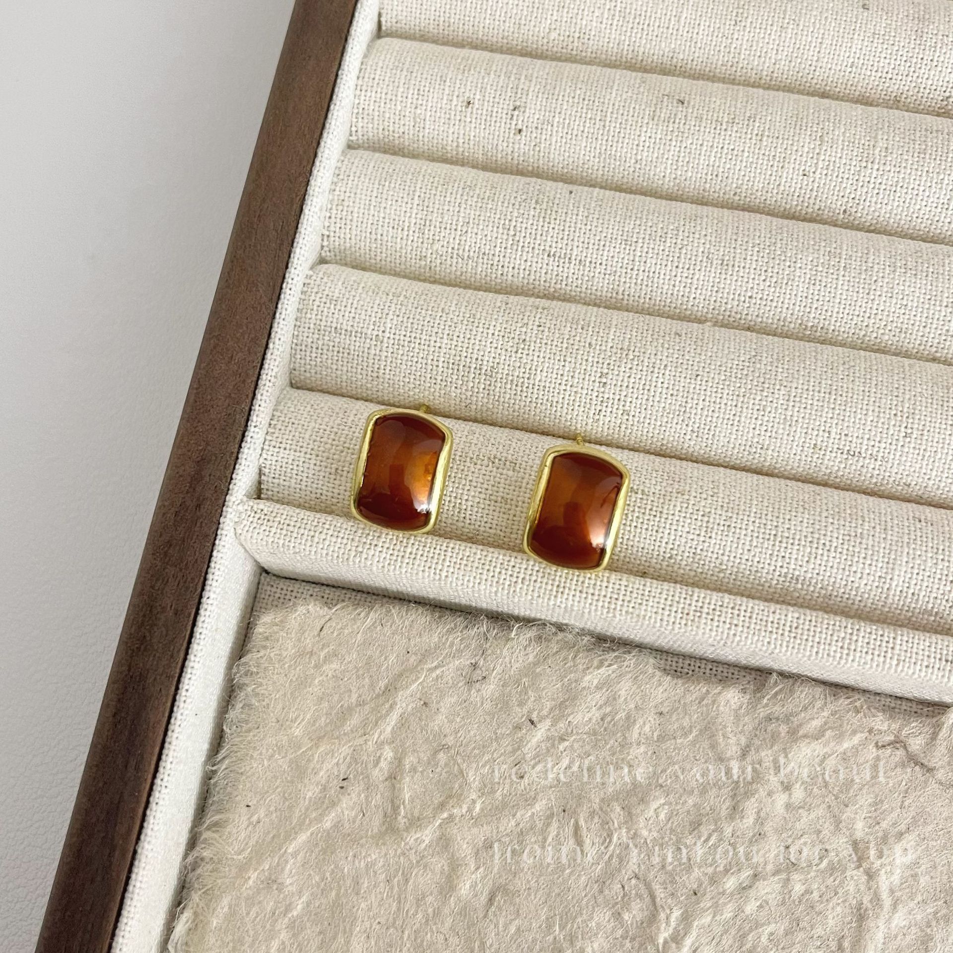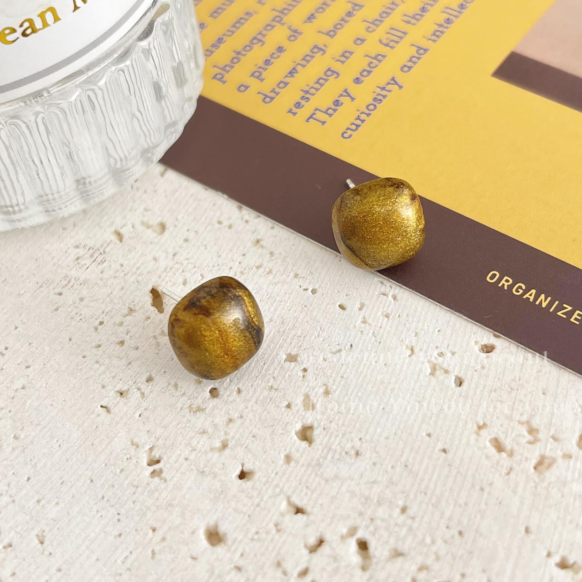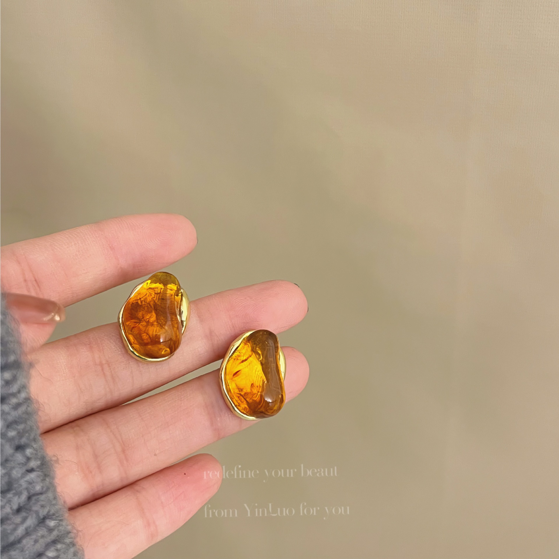 美拉德风925针耳钉女秋冬气质复古琥珀色珍珠小众高级感耳环耳饰