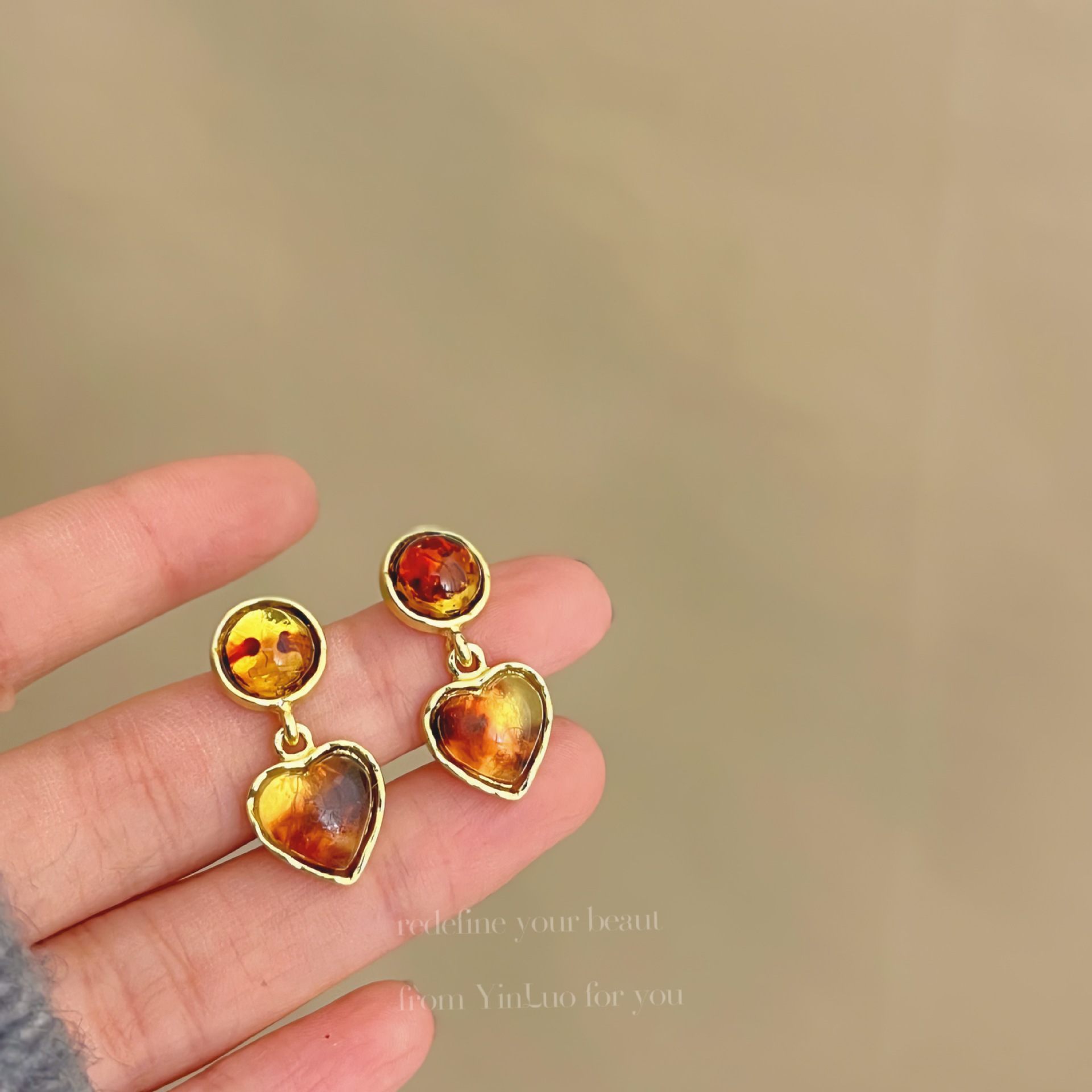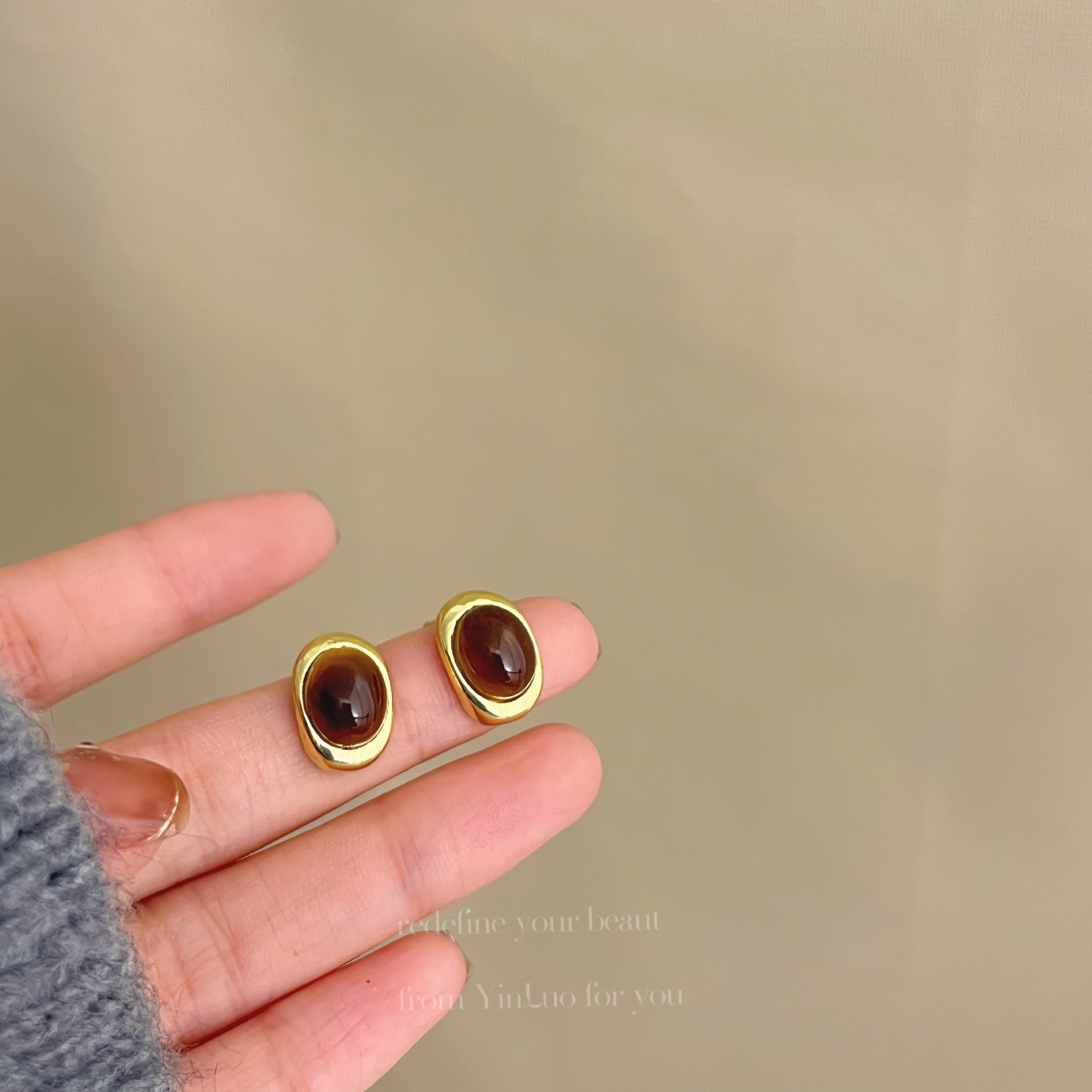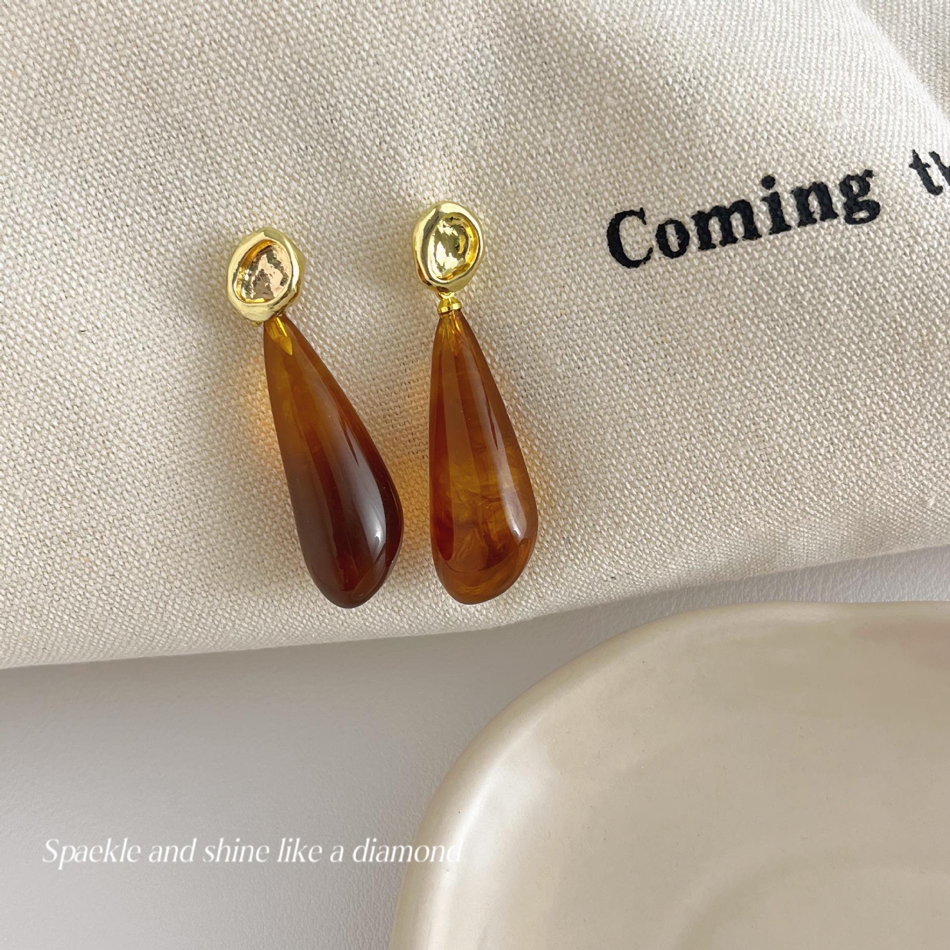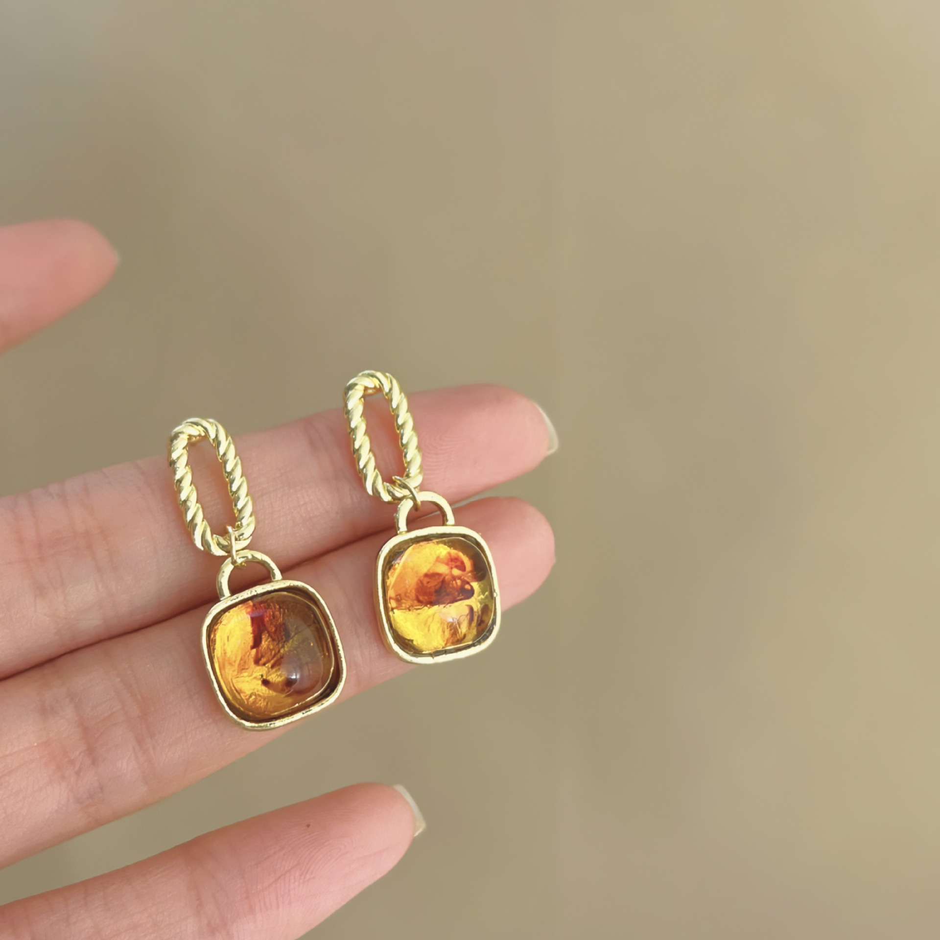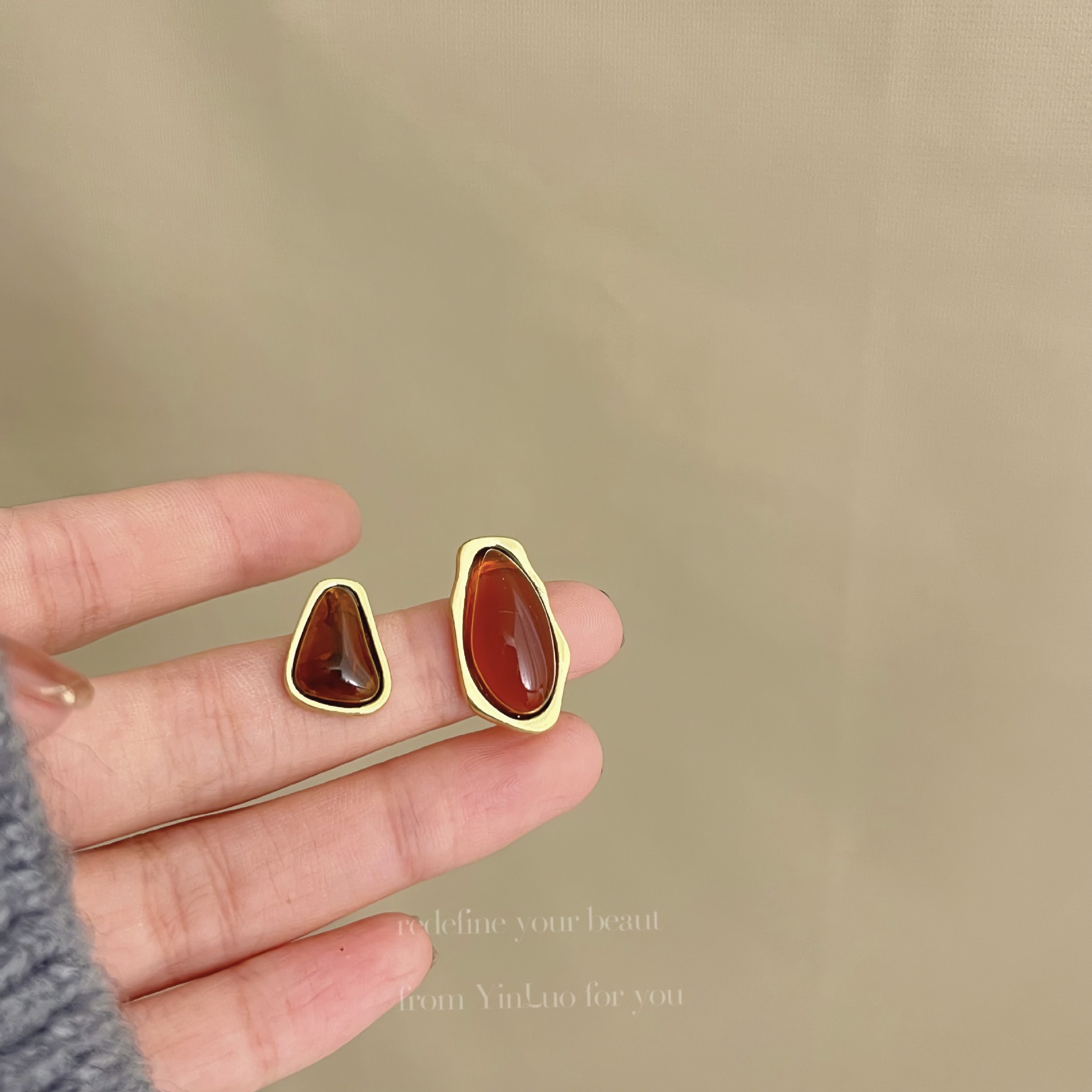 美拉德风925针耳钉女秋冬气质复古琥珀色珍珠小众高级感耳环耳饰