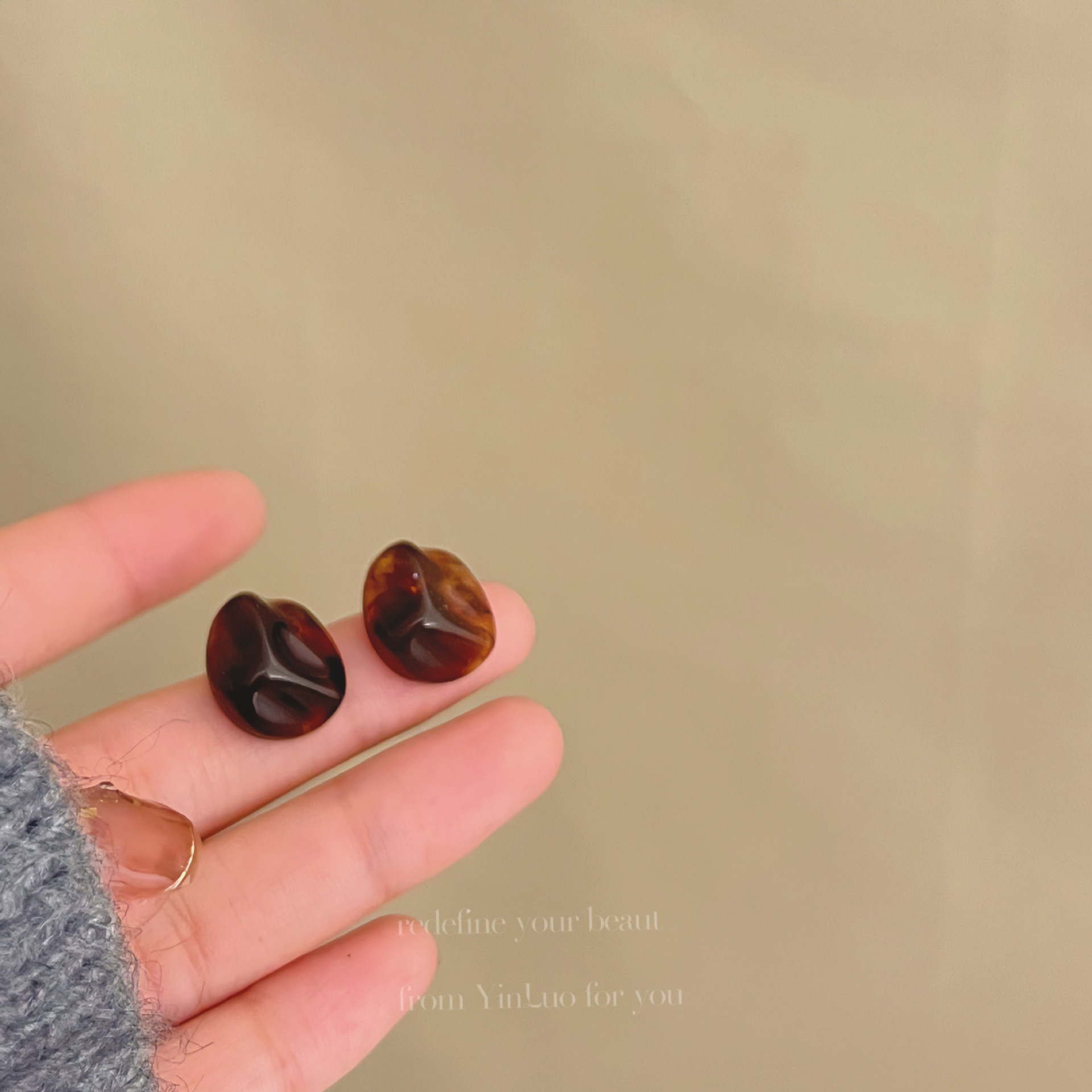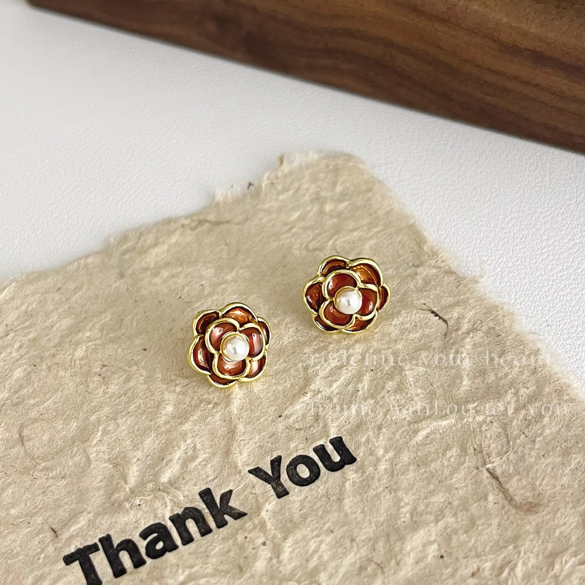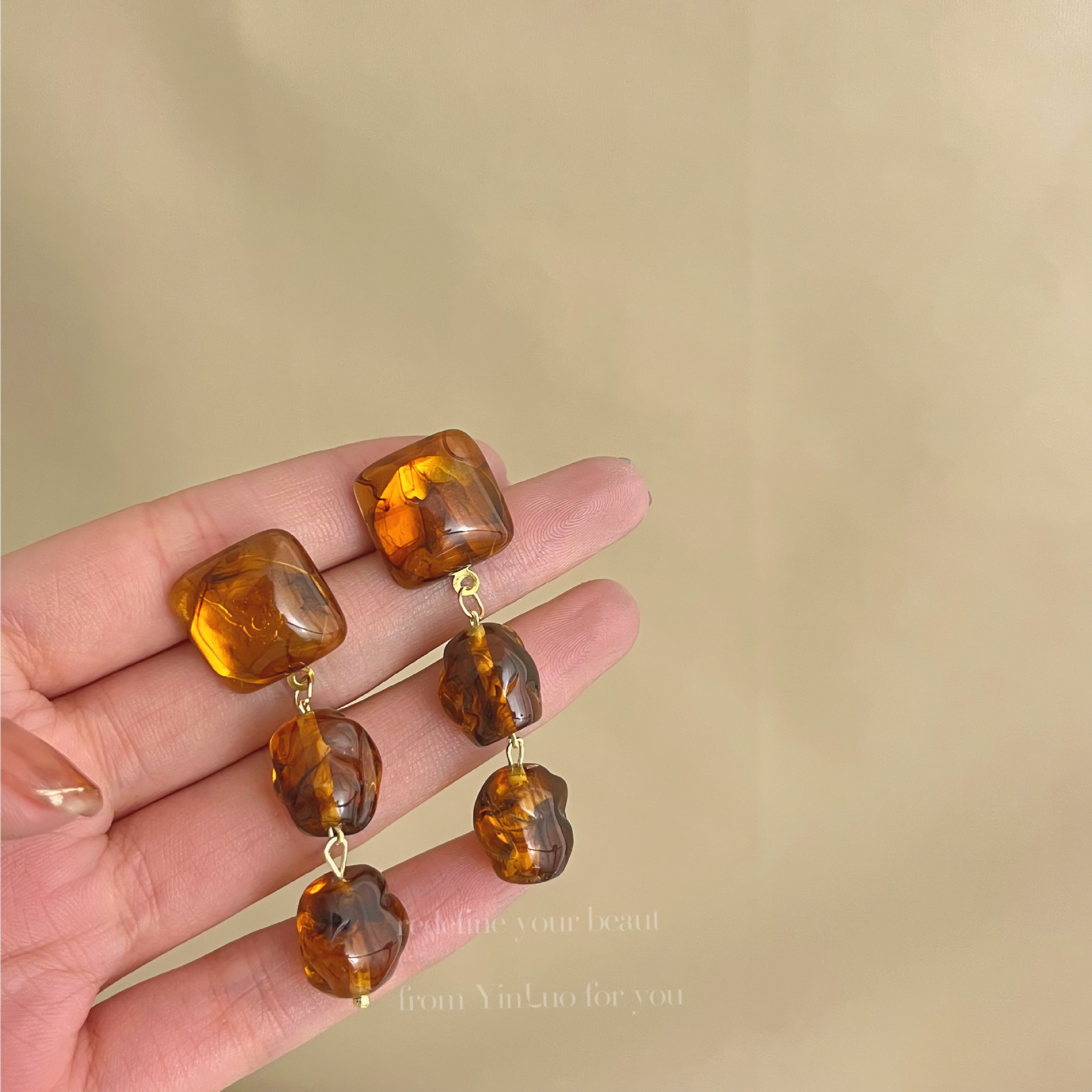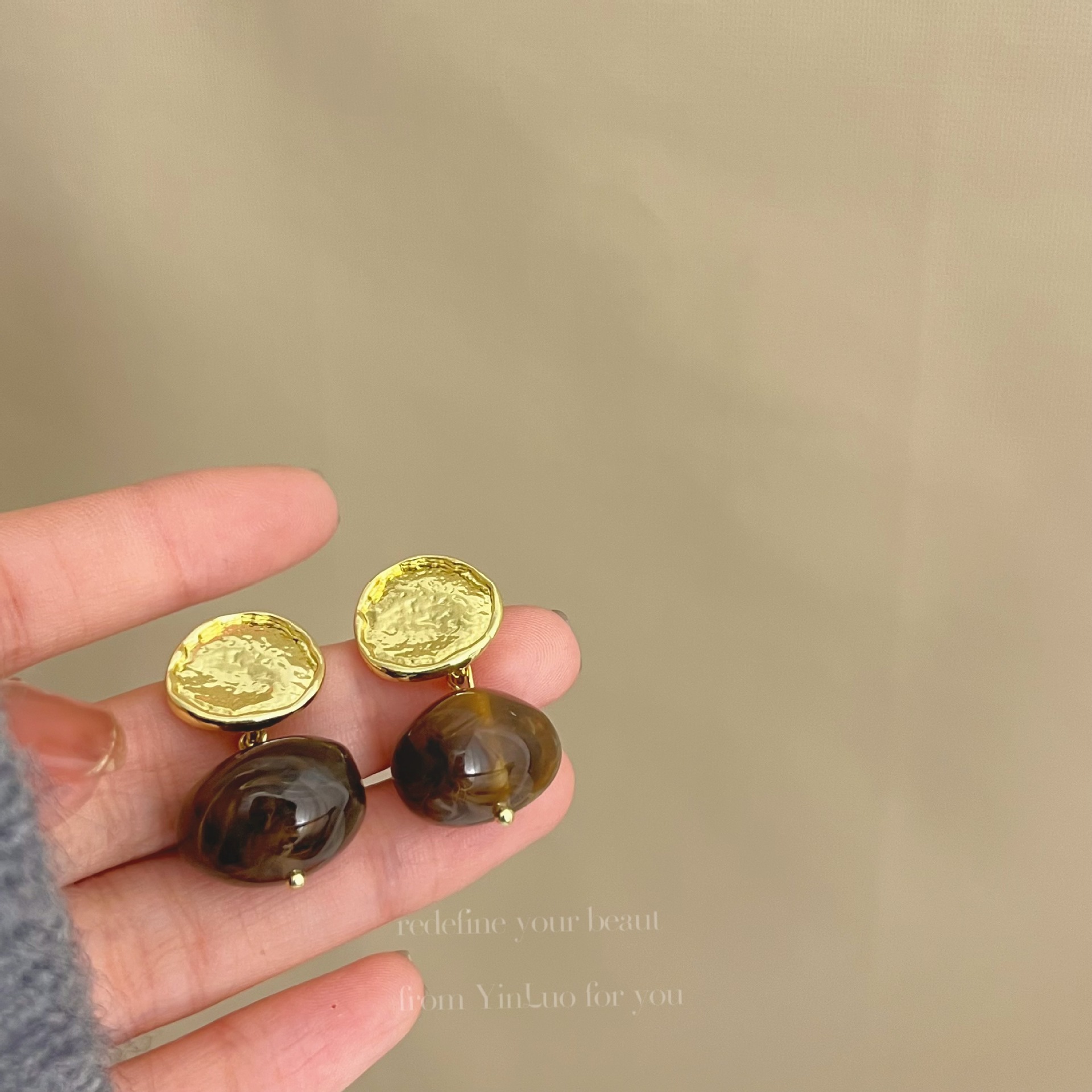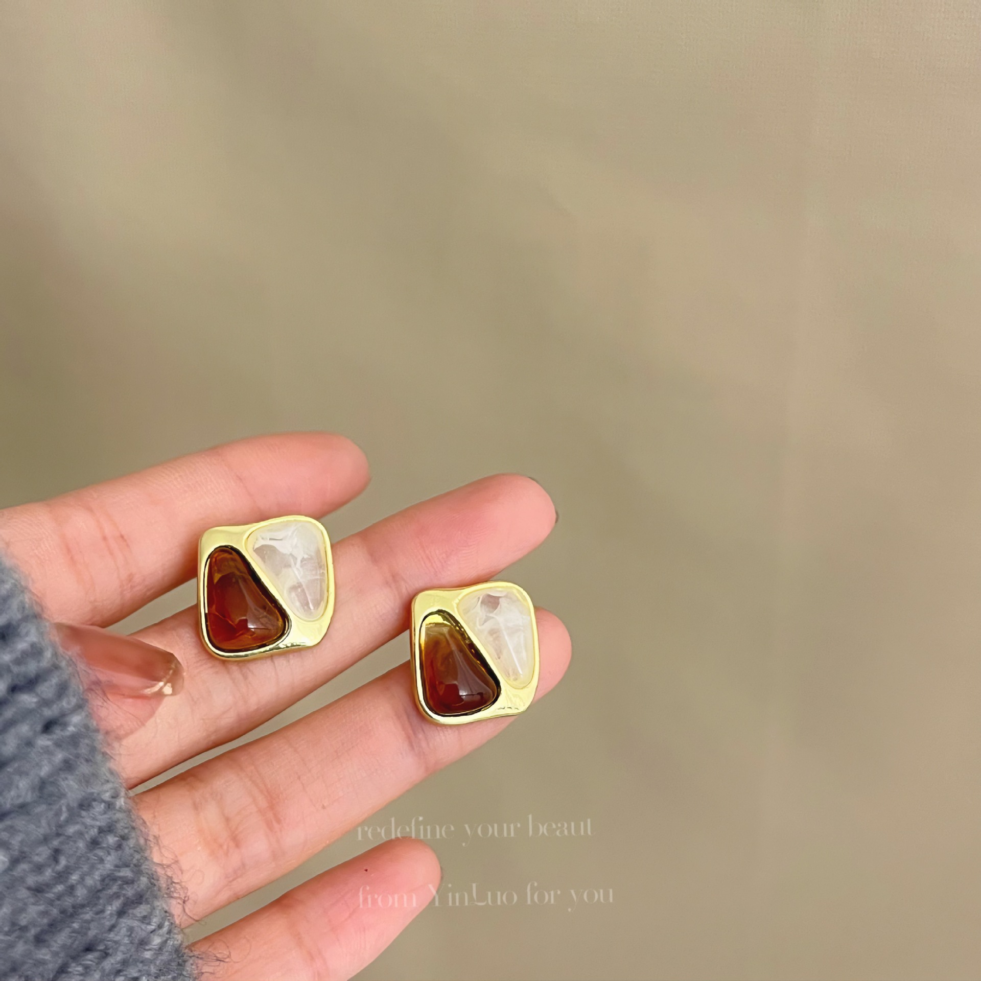 美拉德风925针耳钉女秋冬气质复古琥珀色珍珠小众高级感耳环耳饰