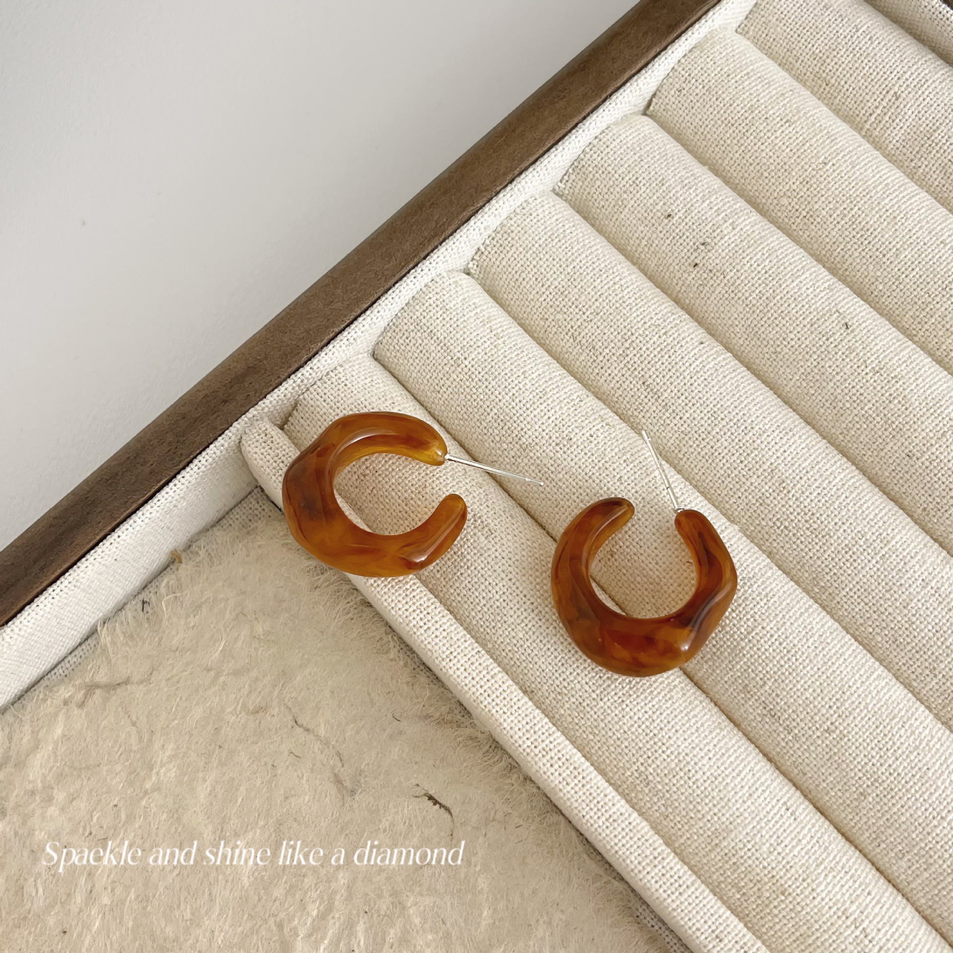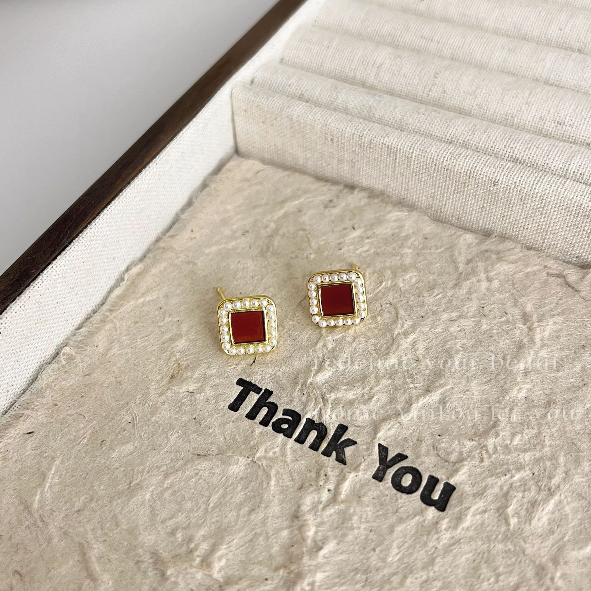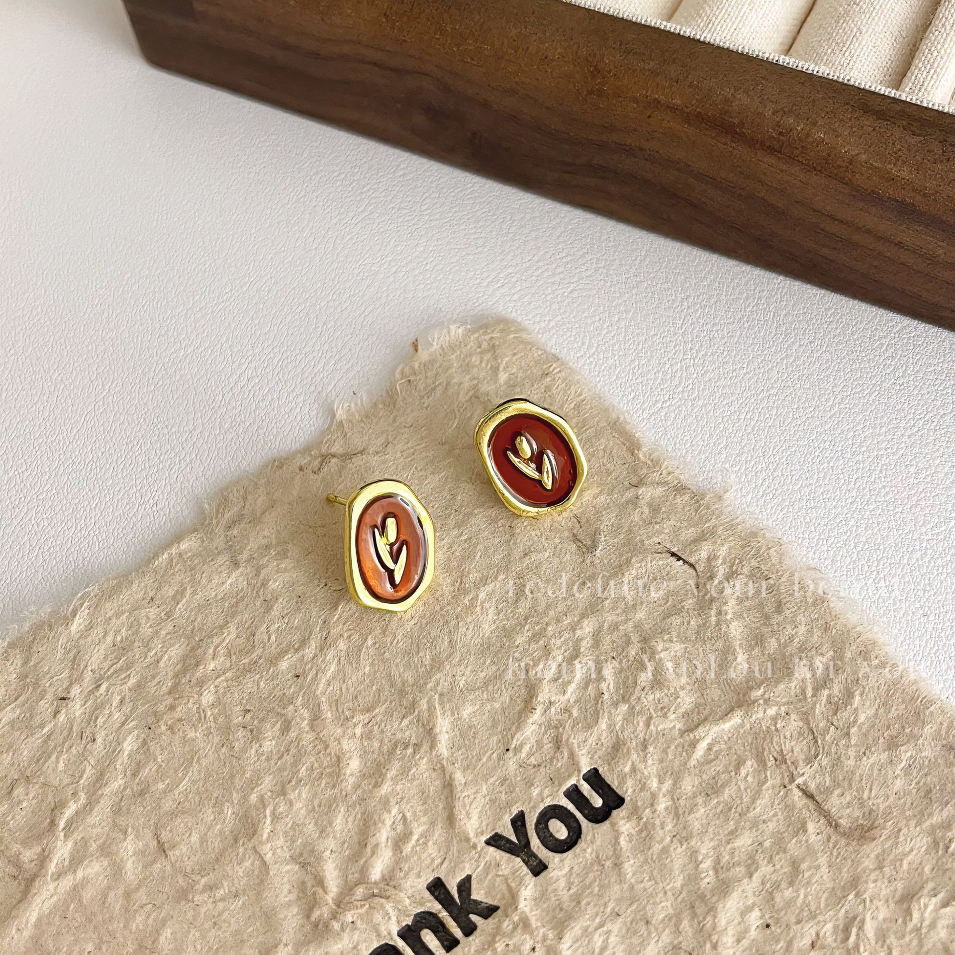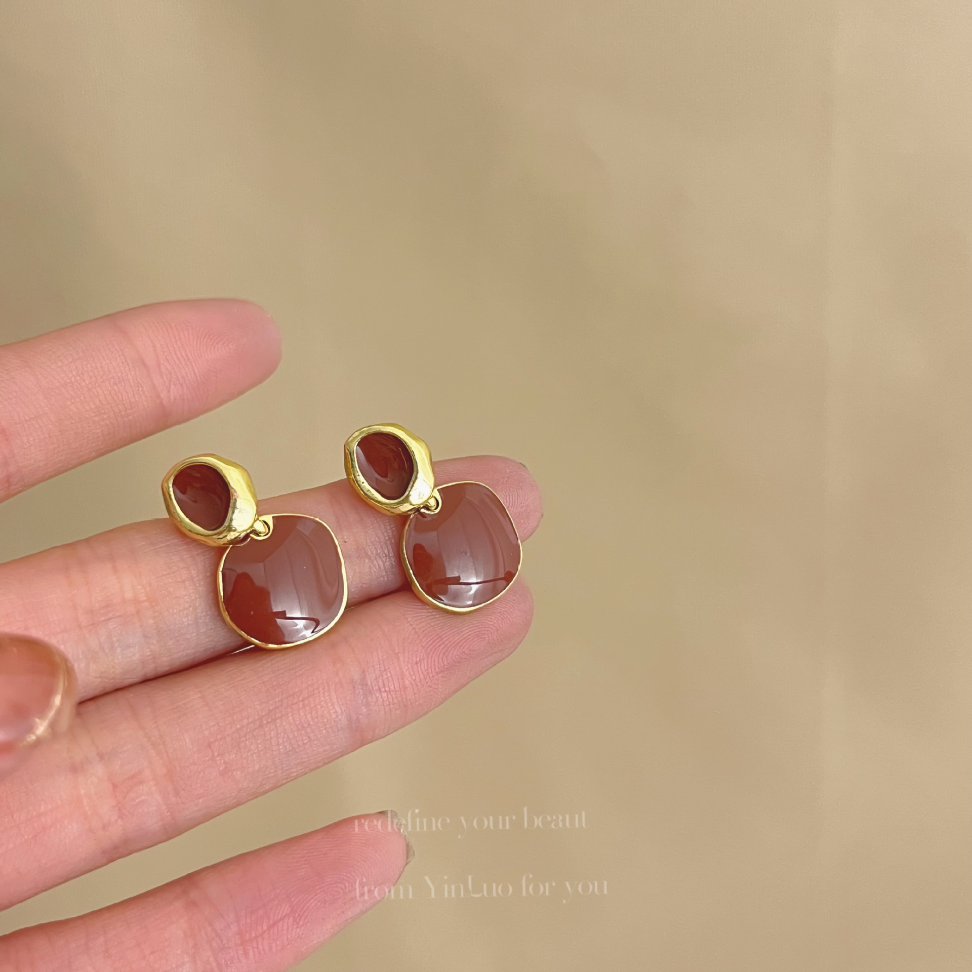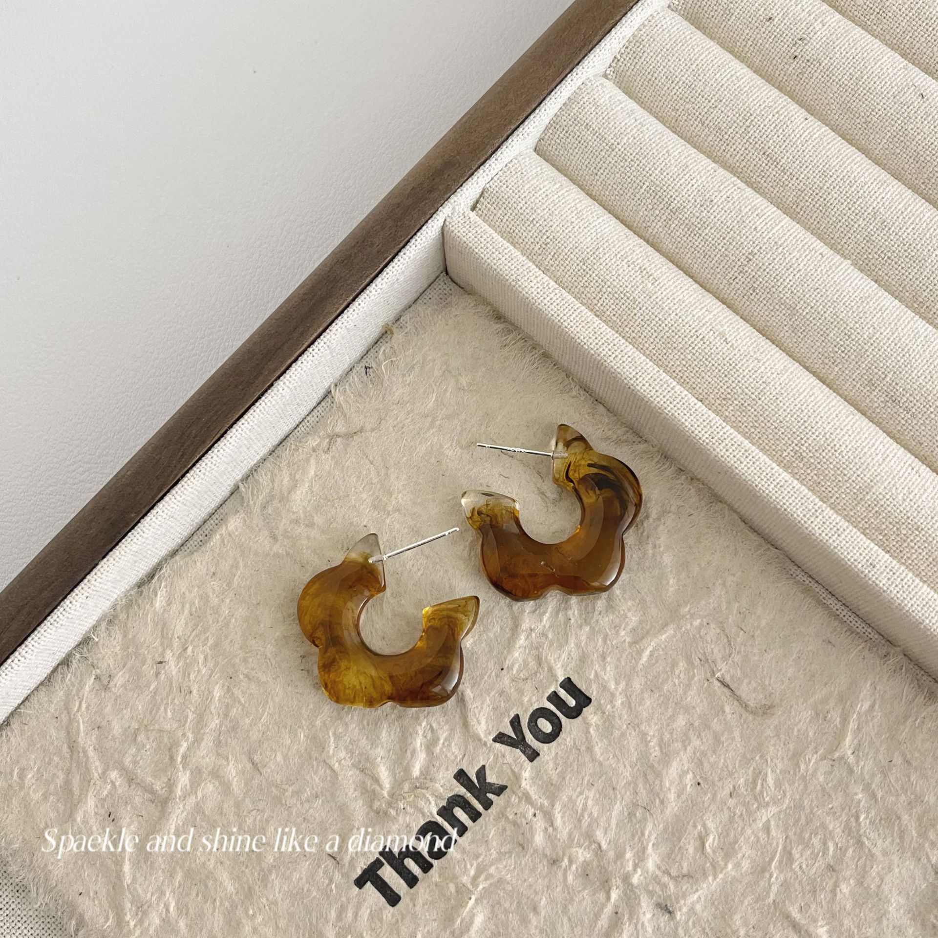 美拉德风925针耳钉女秋冬气质复古琥珀色珍珠小众高级感耳环耳饰