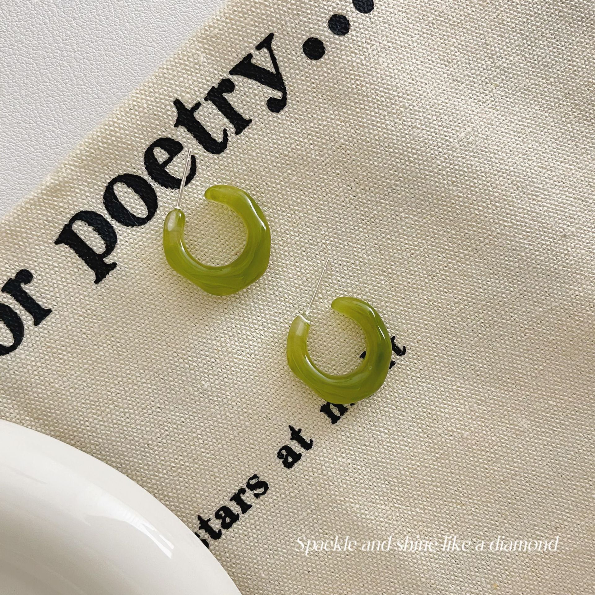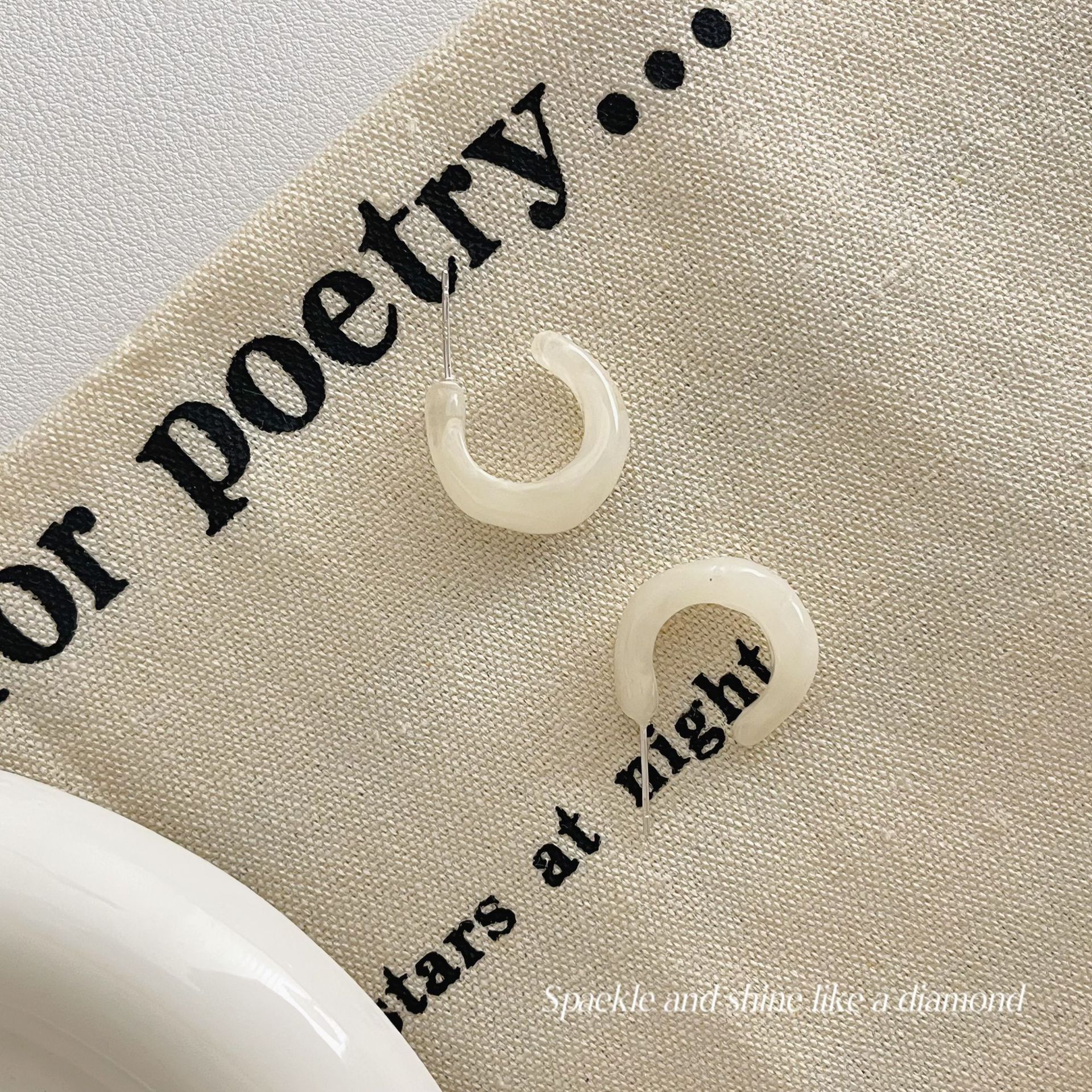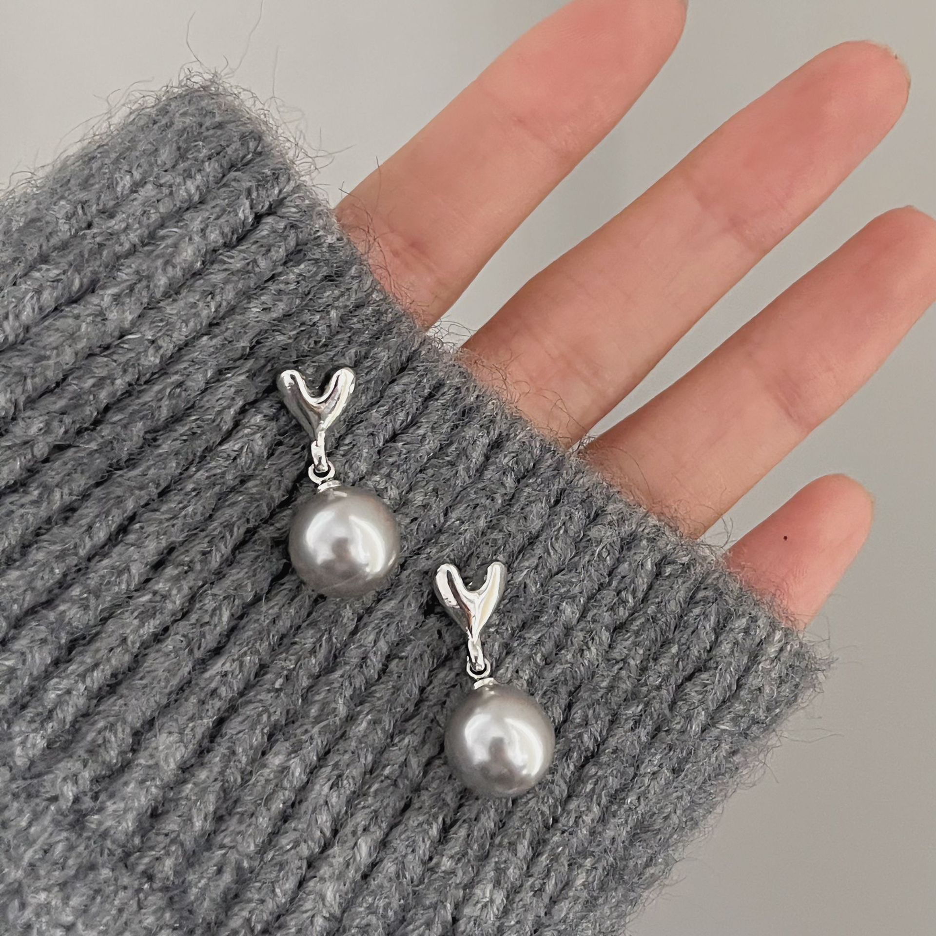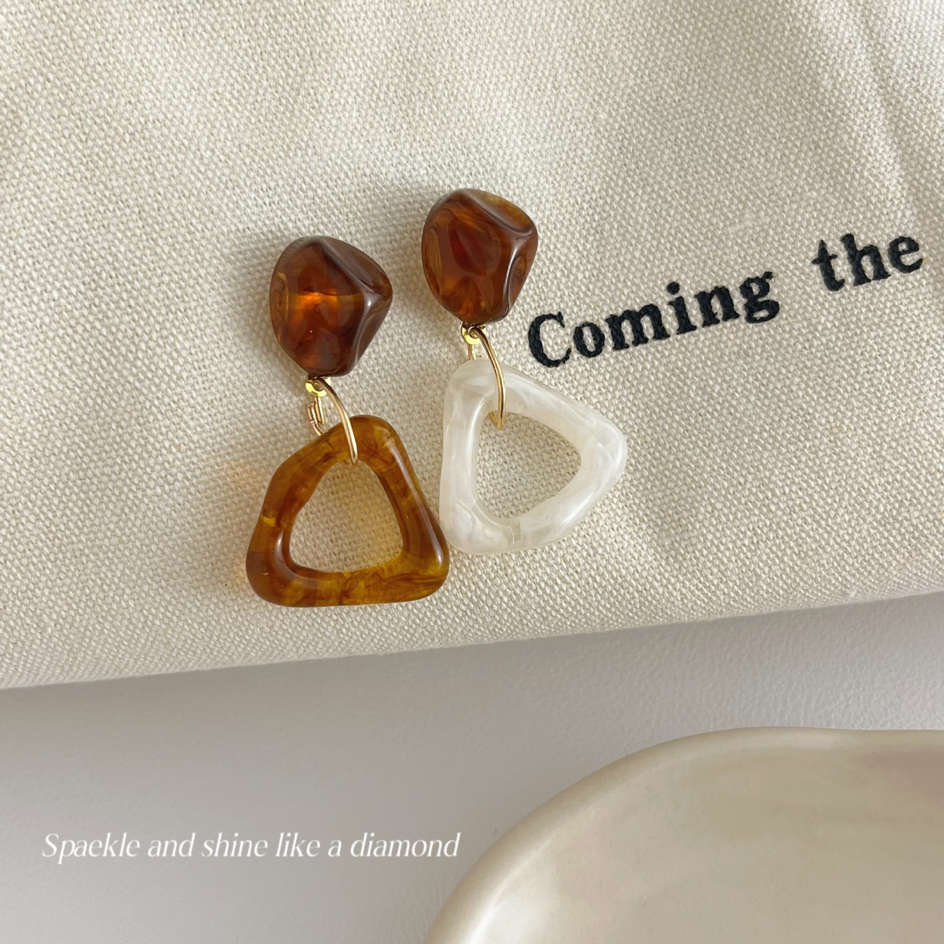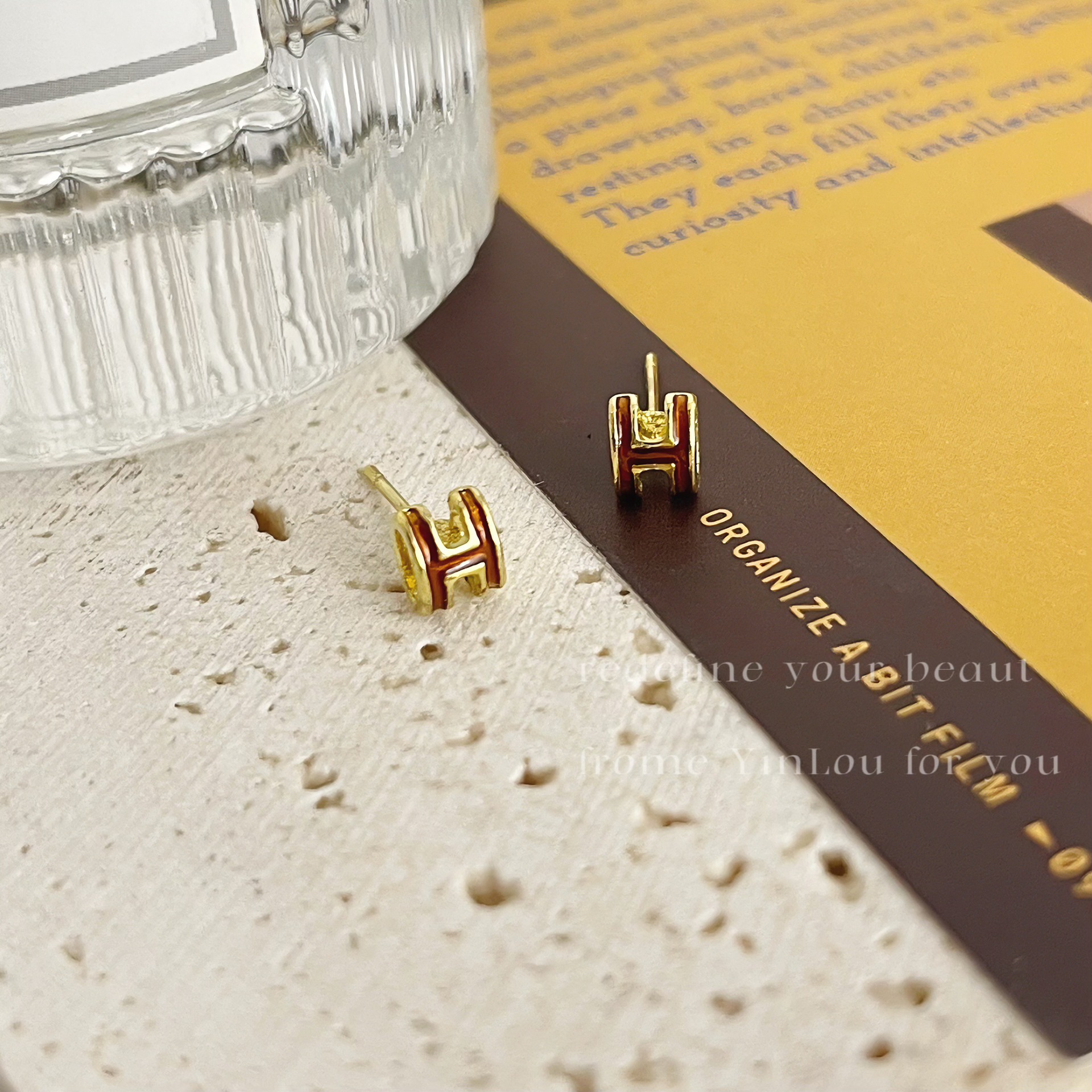 美拉德风925针耳钉女秋冬气质复古琥珀色珍珠小众高级感耳环耳饰