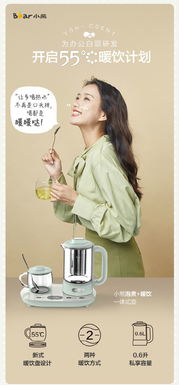 小熊养生壶YSH-C06N1 煮茶器电热水壶55度恒温杯+100度烧煮壶