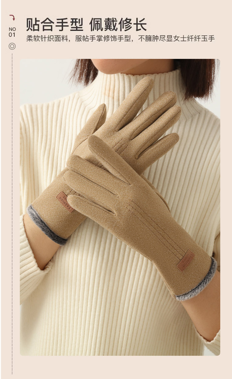 新款手套女冬保暖手套德绒女士手套加绒骑行韩版可爱开车防寒触屏