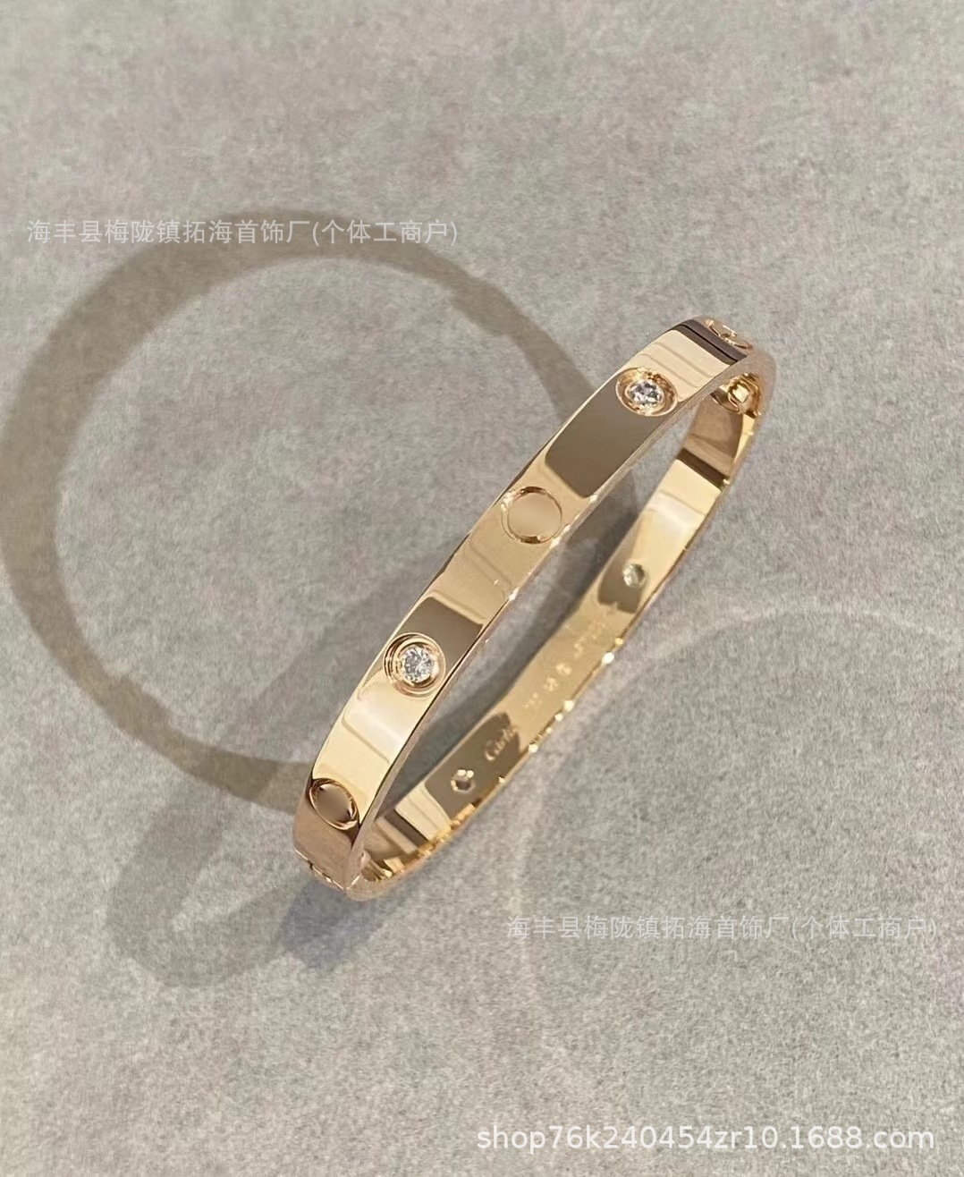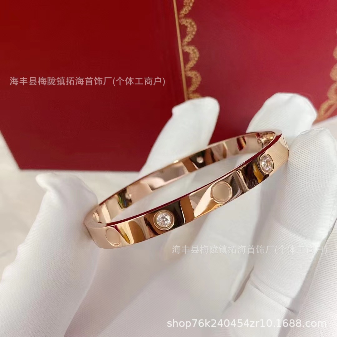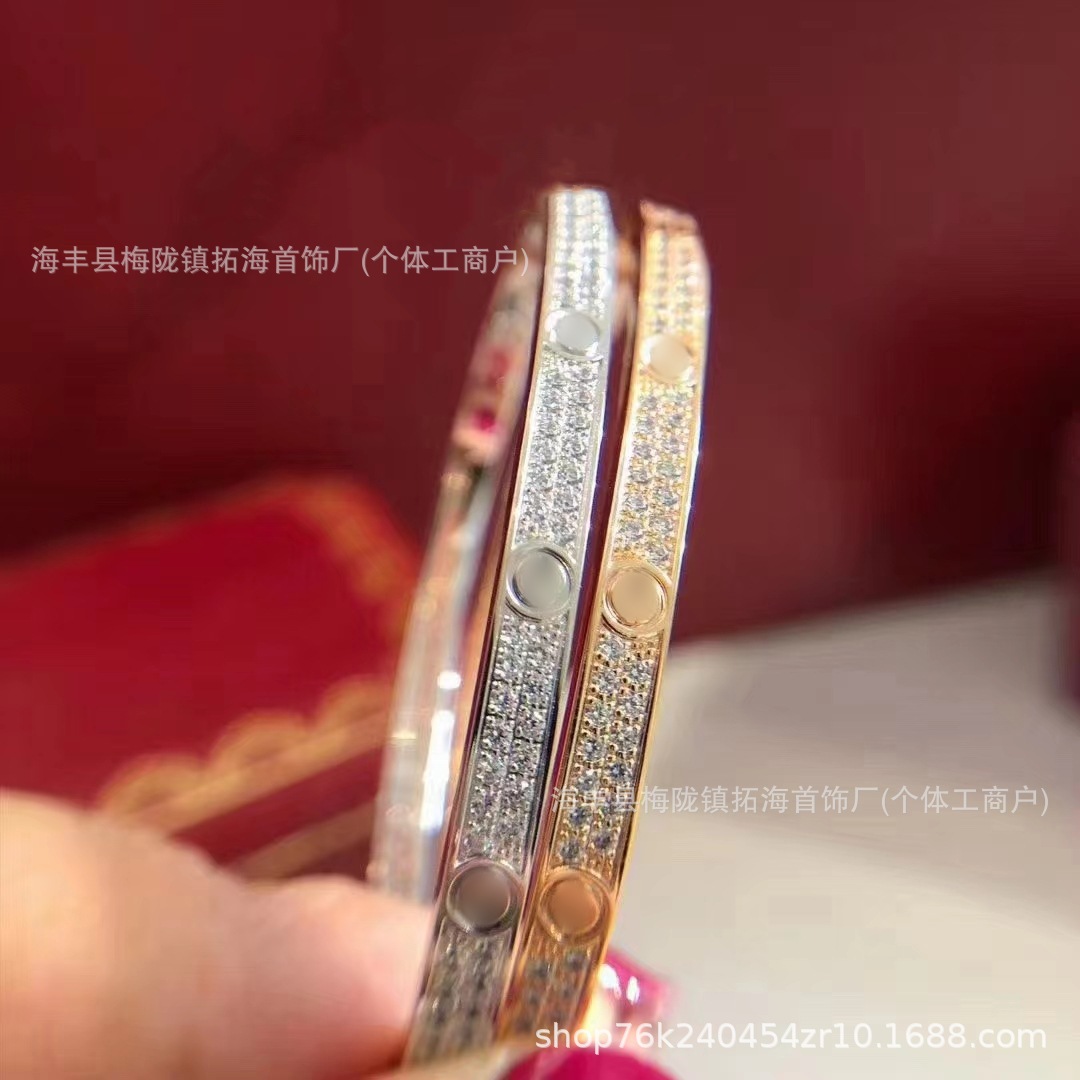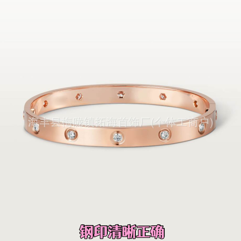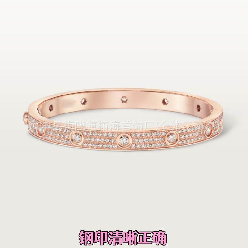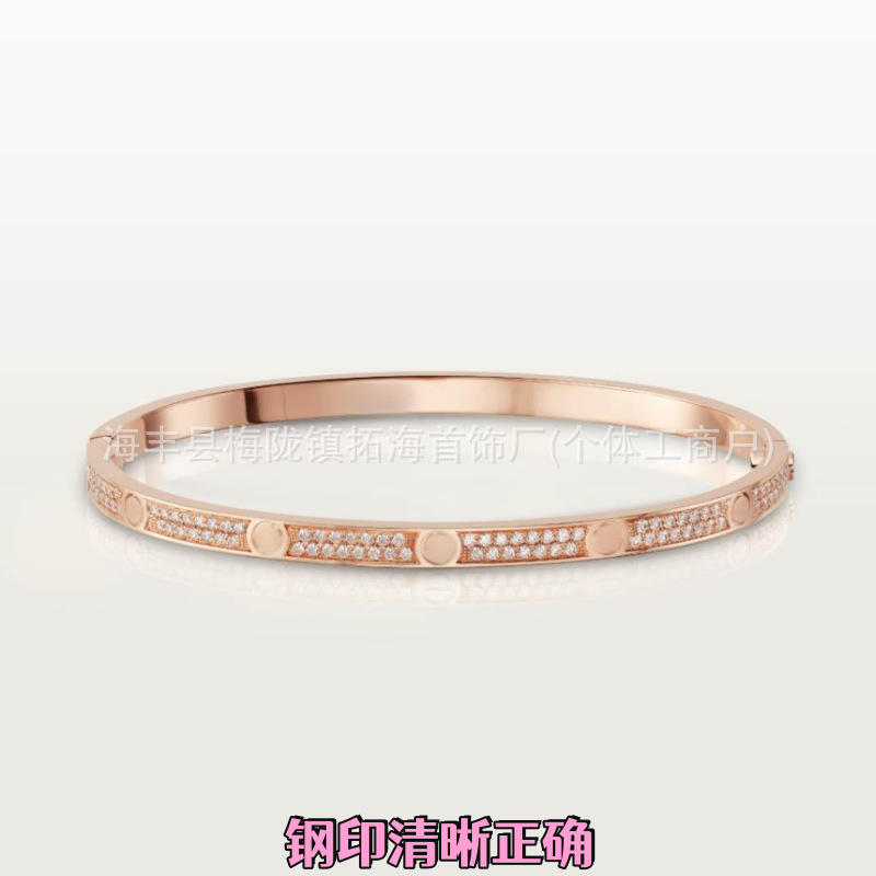 V金高版卡家LOVE窄版手镯镀18K玫瑰金精工不掉色镶钻男女手环手饰