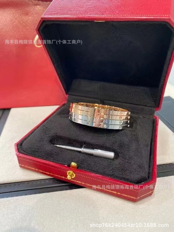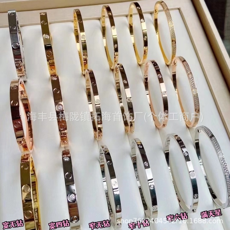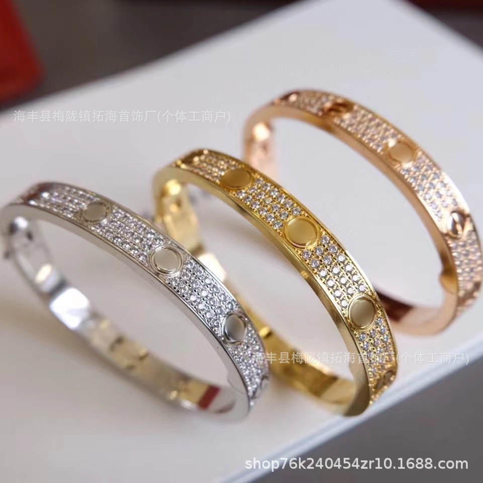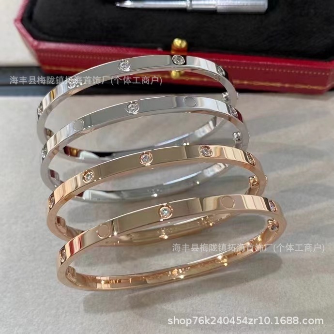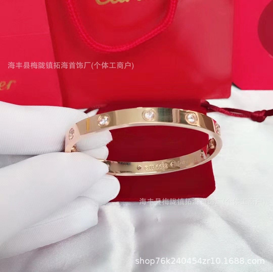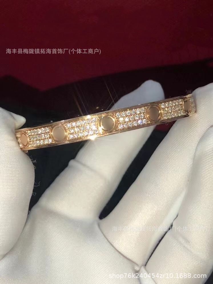 V金高版卡家LOVE窄版手镯镀18K玫瑰金精工不掉色镶钻男女手环手饰
