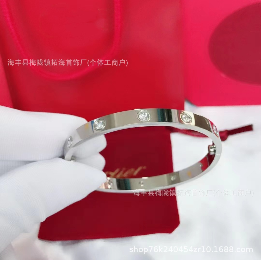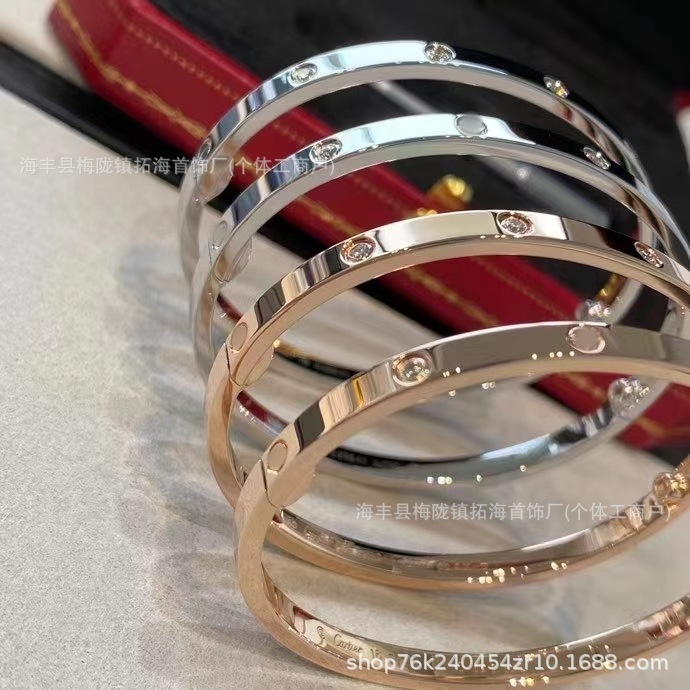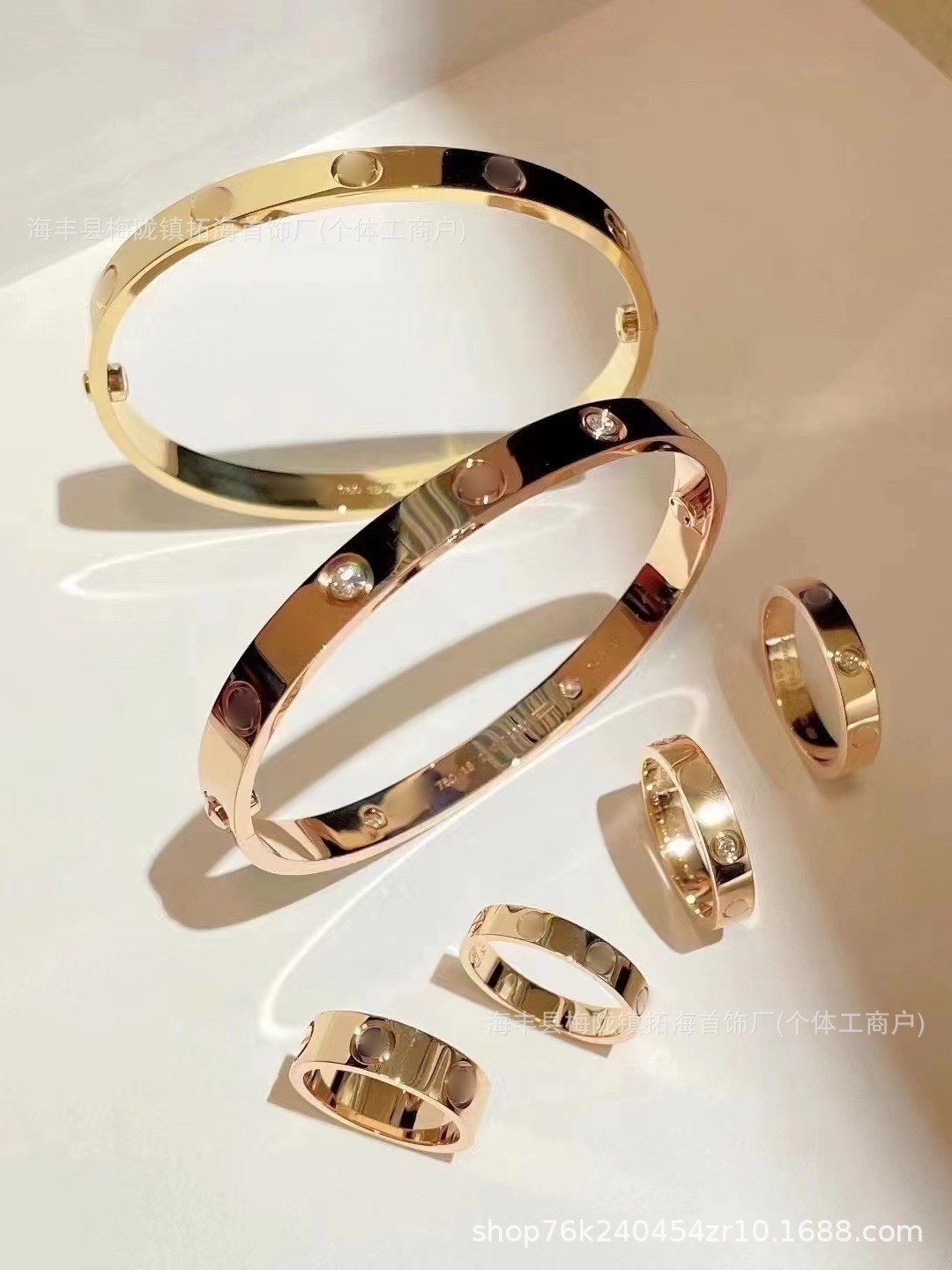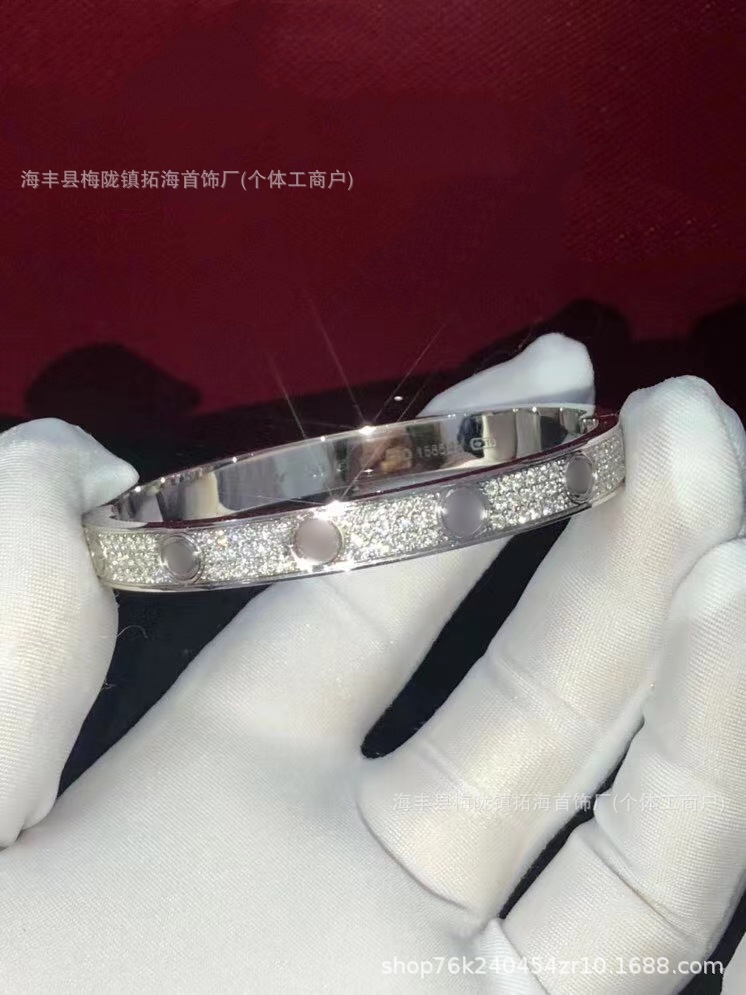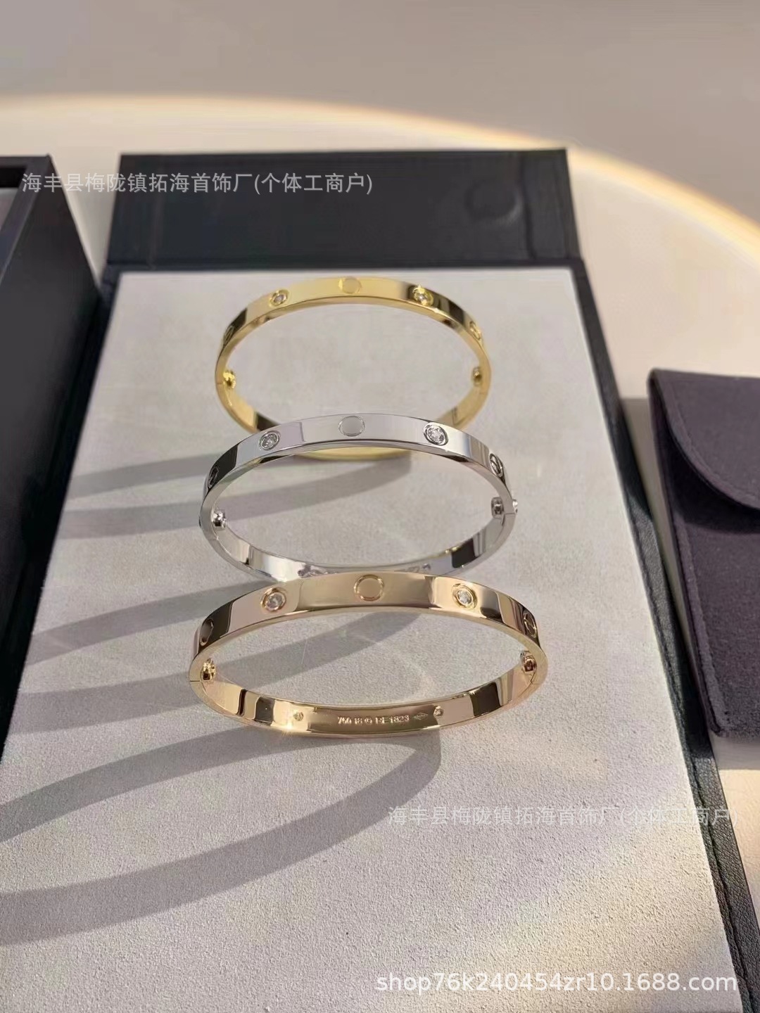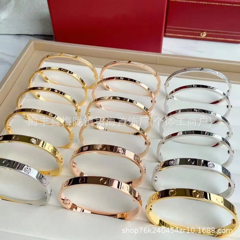 V金高版卡家LOVE窄版手镯镀18K玫瑰金精工不掉色镶钻男女手环手饰