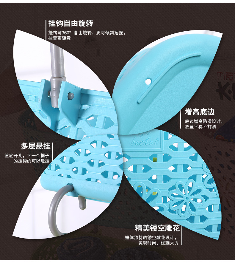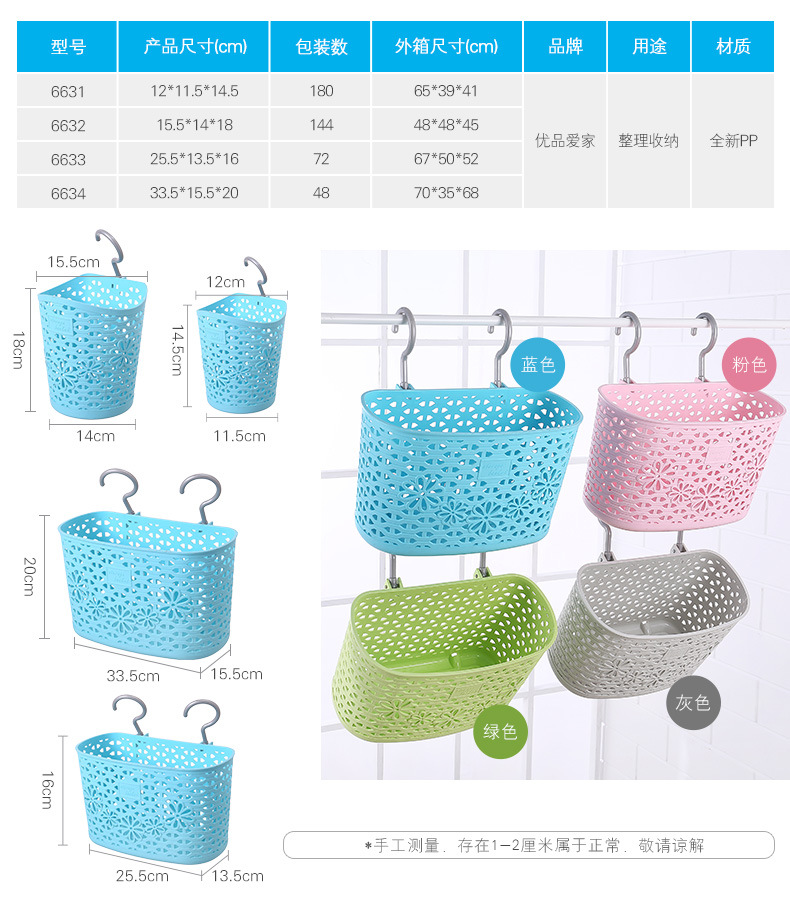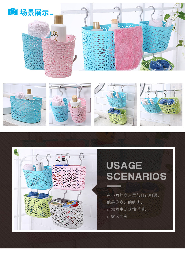 6633时尚沐浴挂篮杂物收纳篮物篮吊篮厂家批发双钩塑料挂篮卫生间