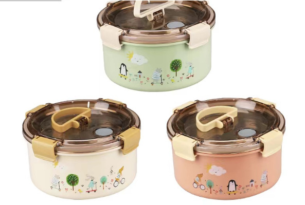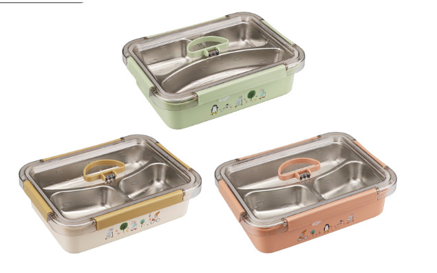 新款不锈钢饭盒食品级可微波儿童小学生塑料饭盒不锈钢分格午餐盒