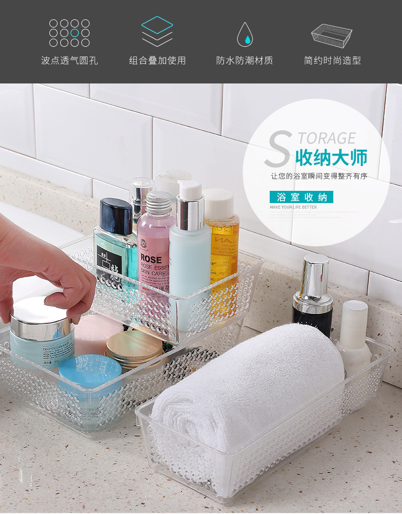 浴室收纳 文具办公收纳 透明收纳盒PS材质 3049