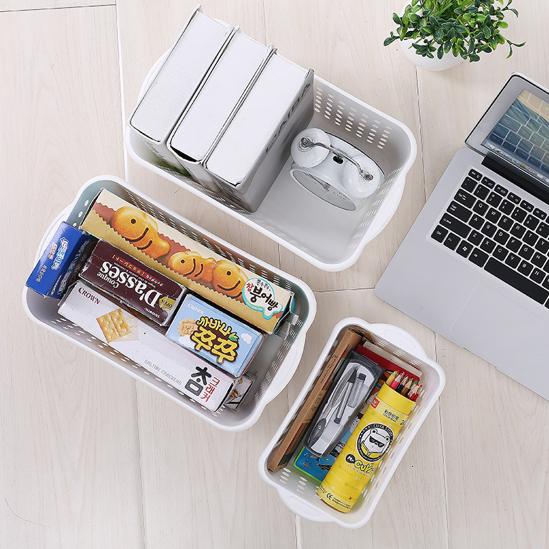 3017浴室置物盒厨房杂物整理篮白色办公塑料储物收纳篮桌面收纳筐