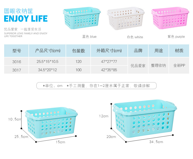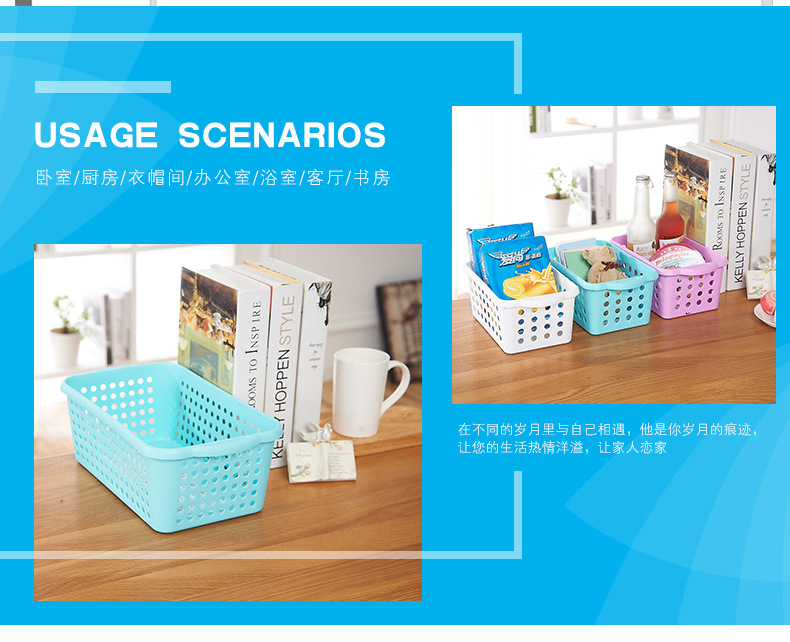3016浴室置物盒厨房杂物整理篮办公室塑料储物收纳篮桌面收纳筐