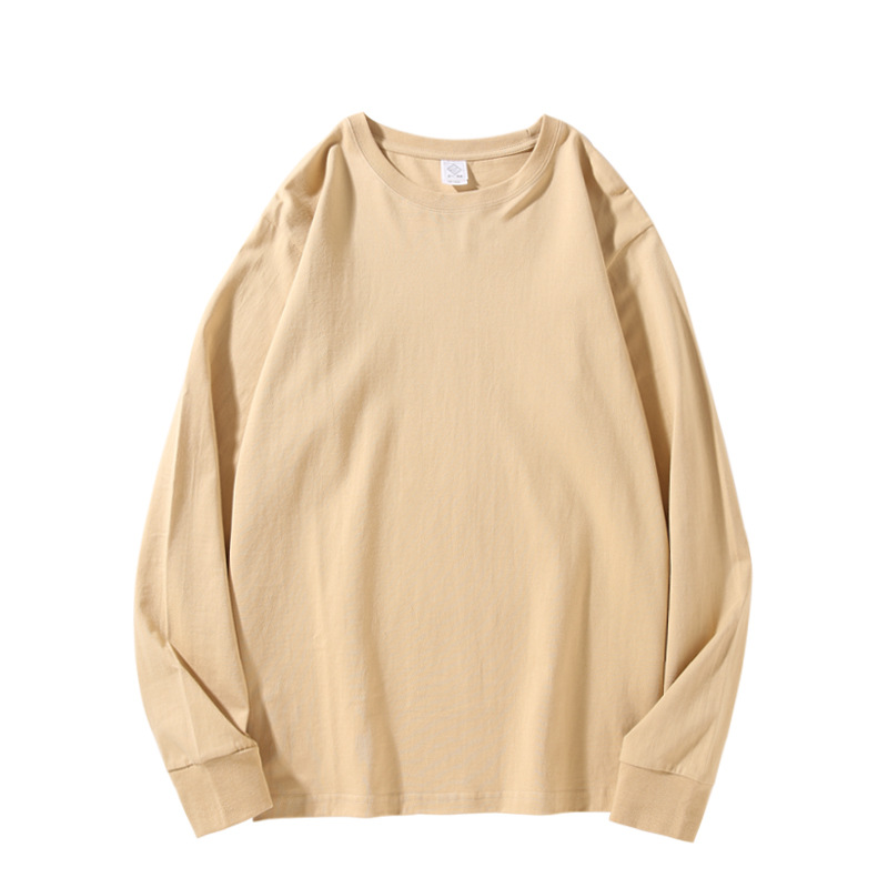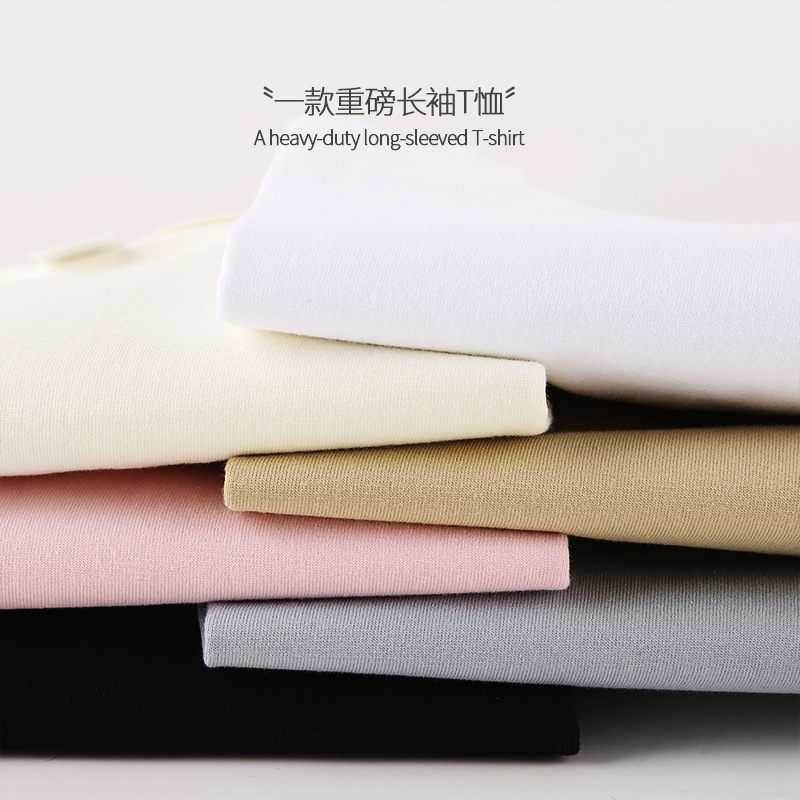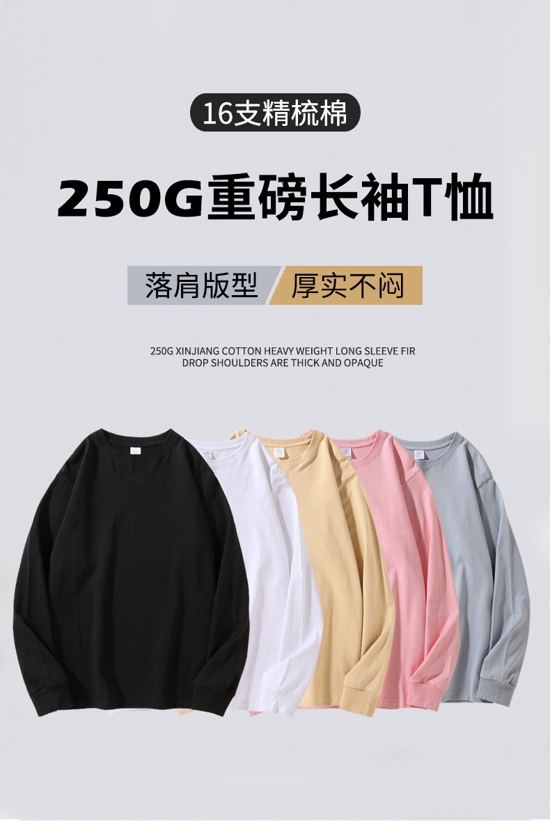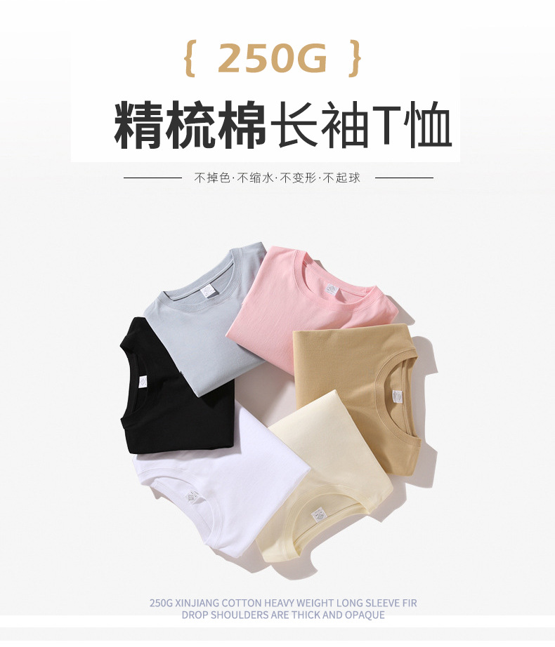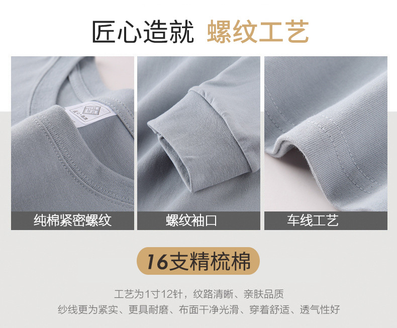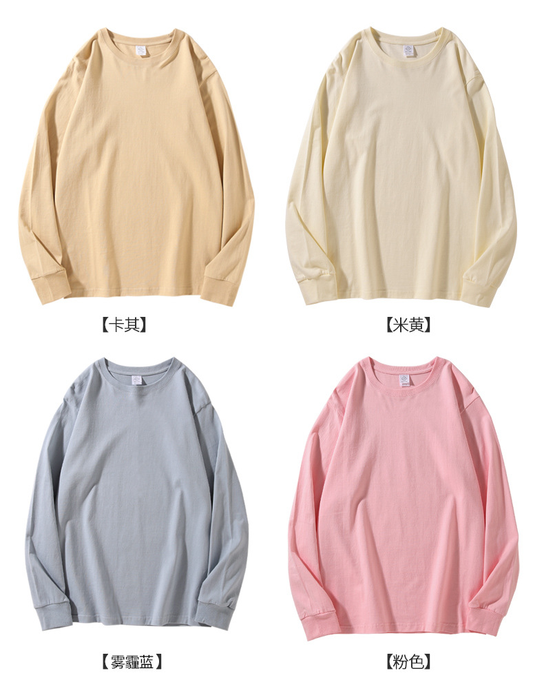 250克重磅精梳棉长袖T恤男纯色圆领上衣 螺纹宽松商务打底衫内衣