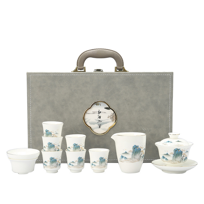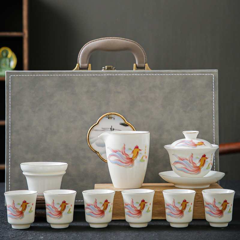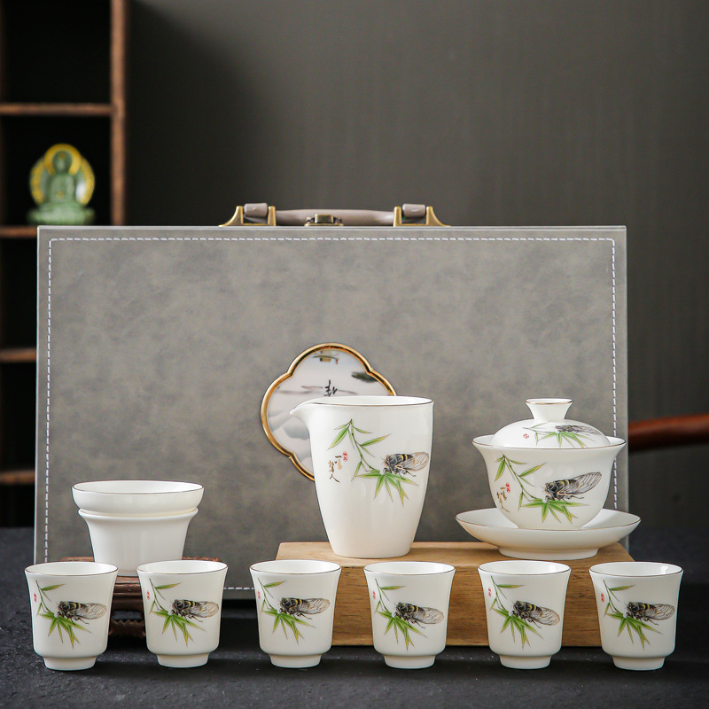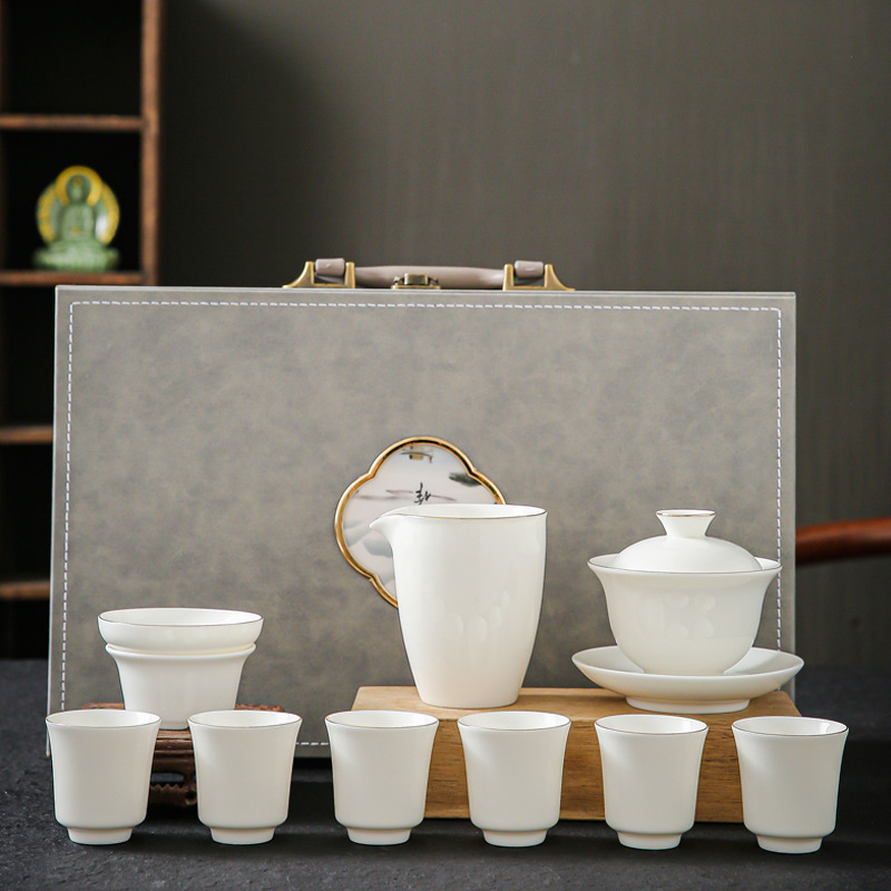 羊脂玉瓷功夫茶具套装批发家用全套陶瓷茶杯盖碗泡茶商务活动礼品