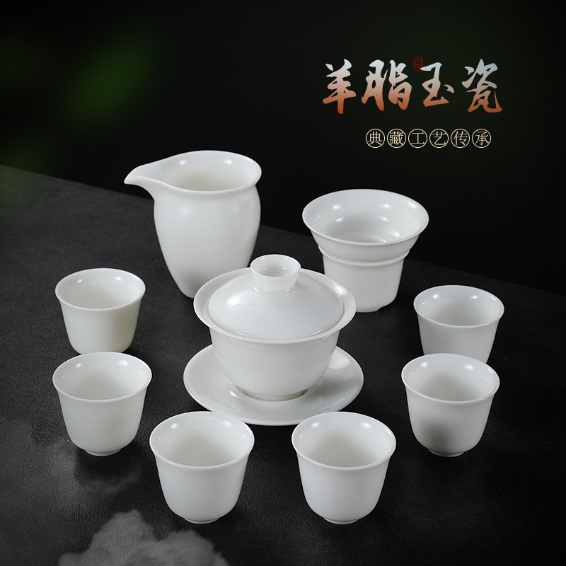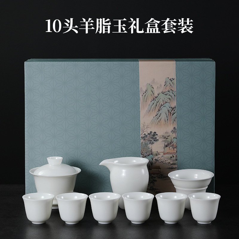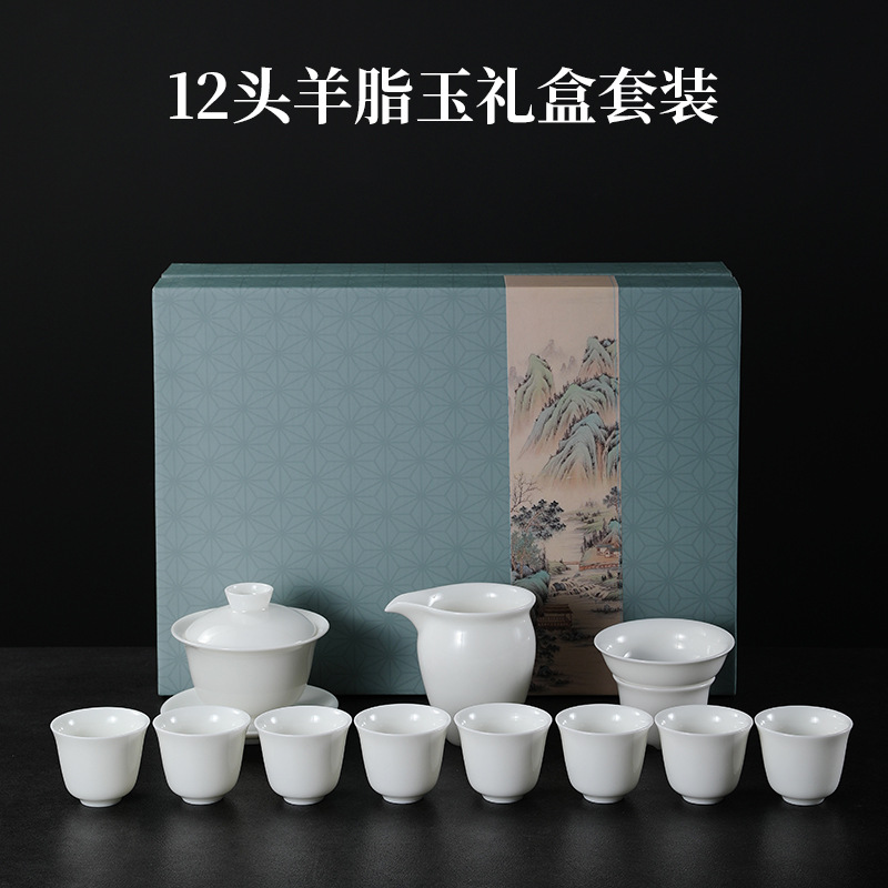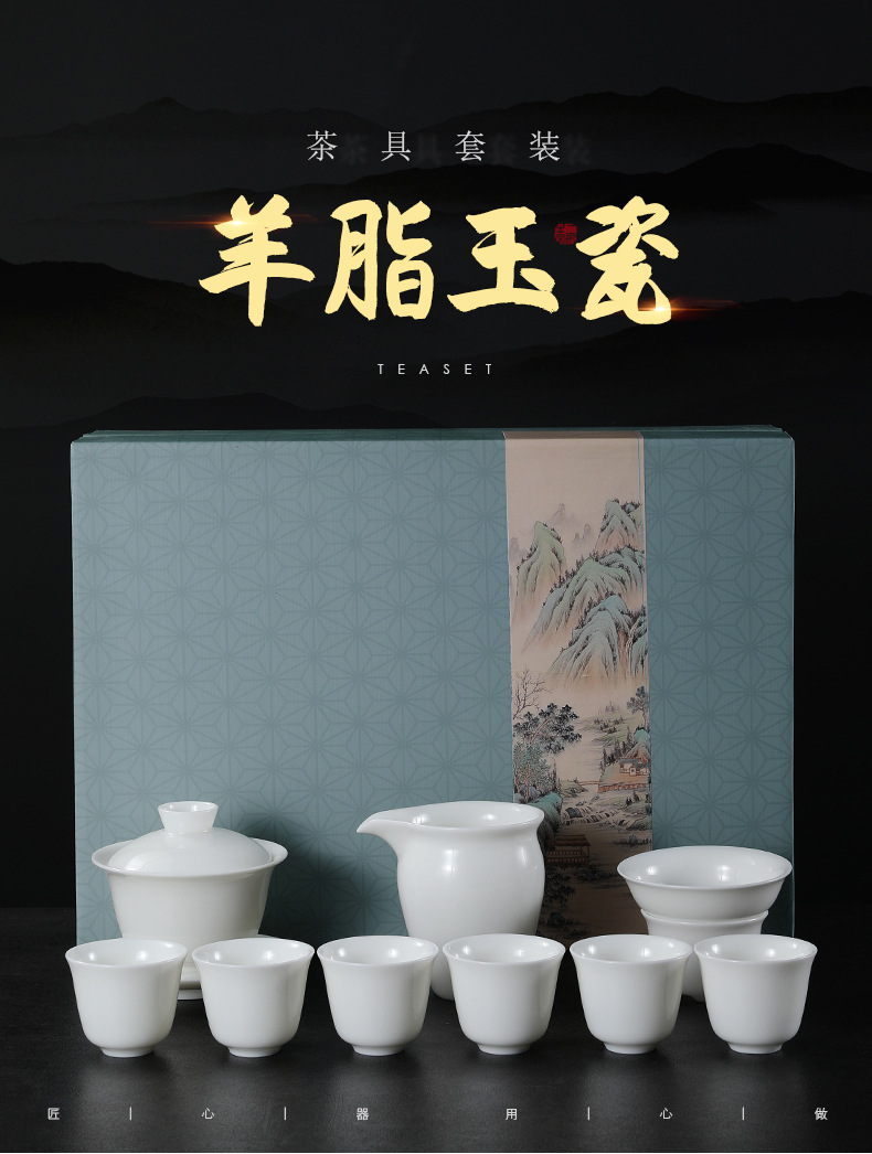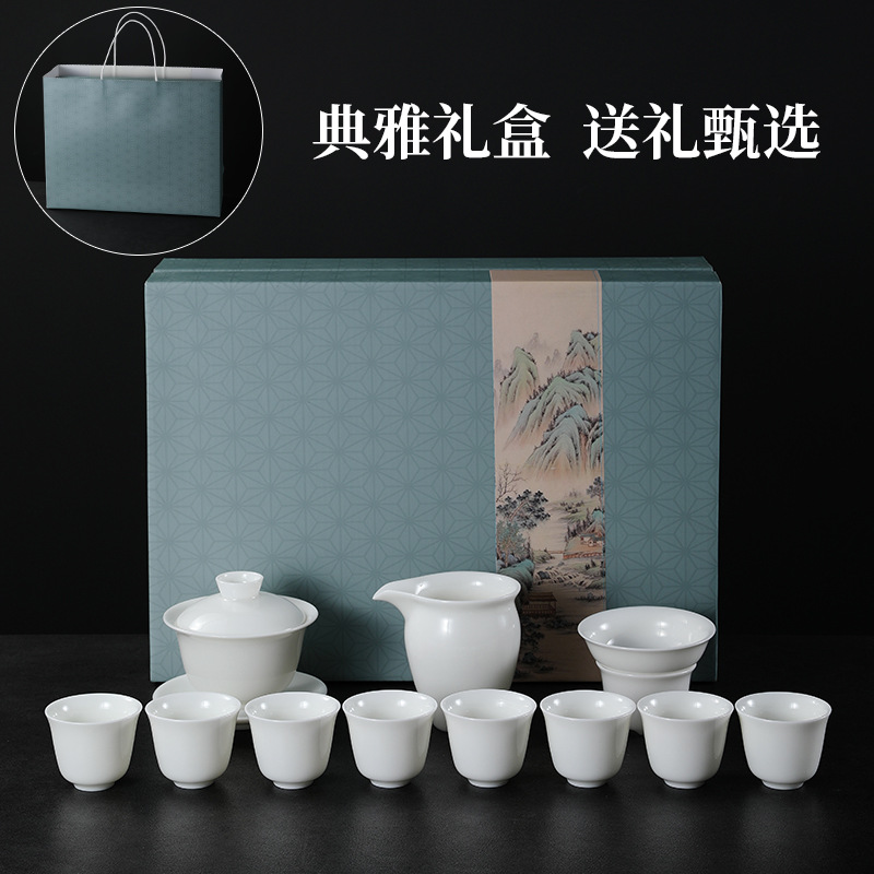 羊脂玉白瓷功夫茶具套装高档盖碗泡茶套装陶瓷商务礼品套组伴手礼