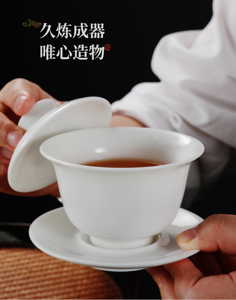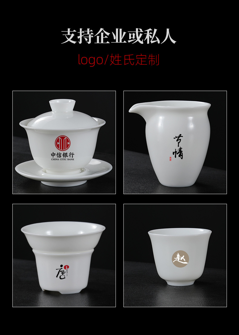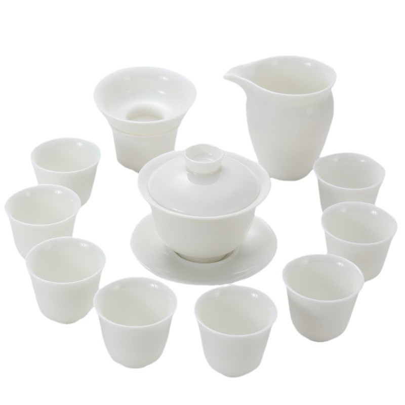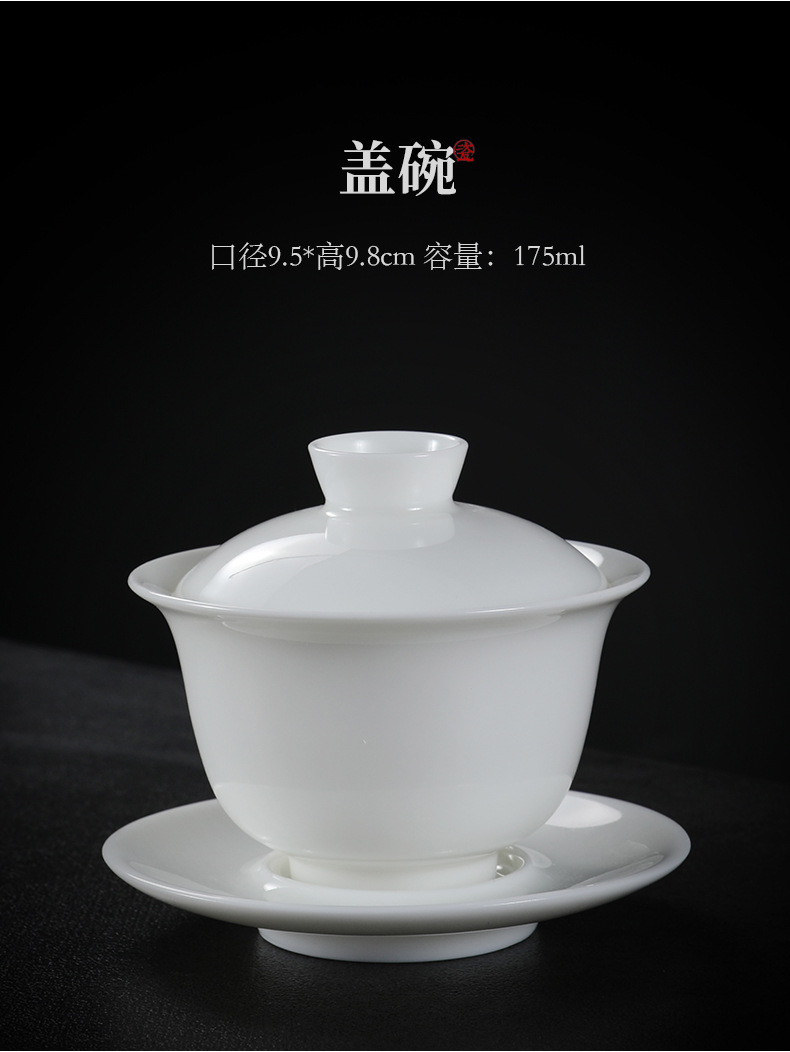 羊脂玉白瓷功夫茶具套装高档盖碗泡茶套装陶瓷商务礼品套组伴手礼