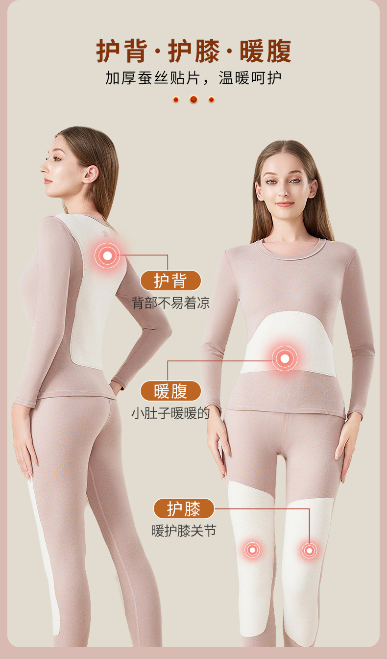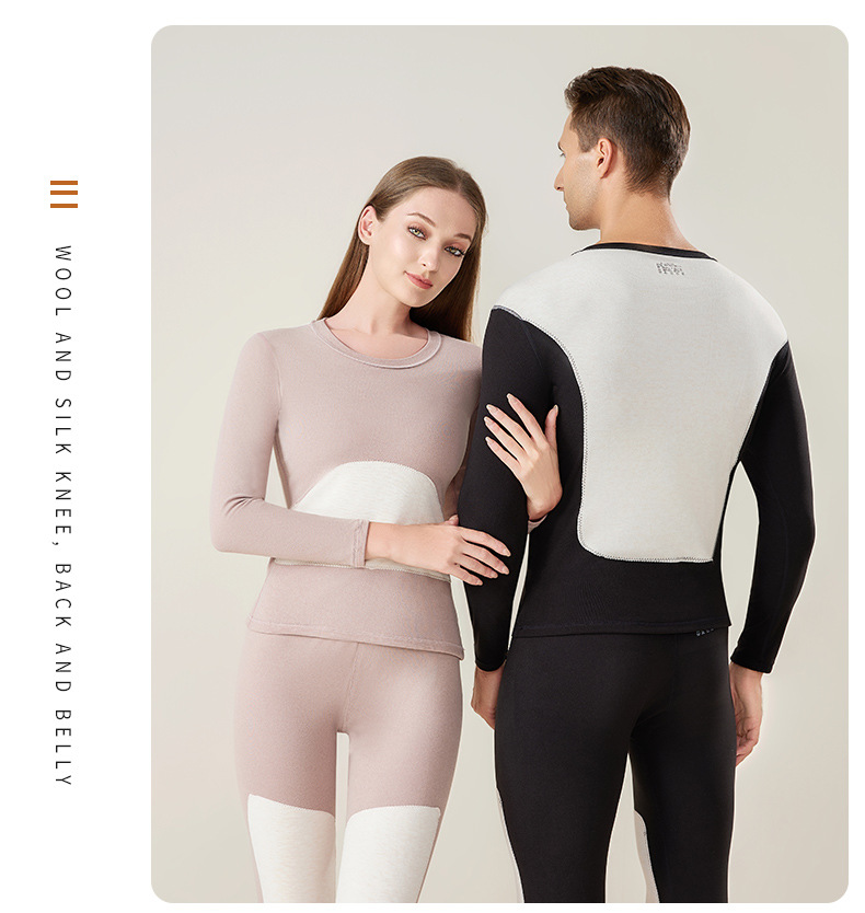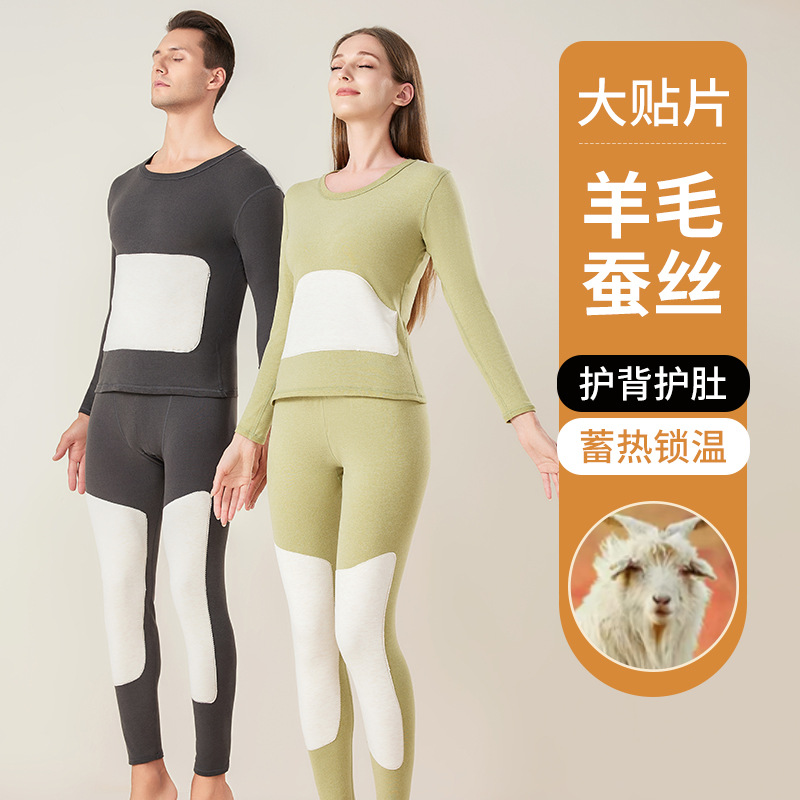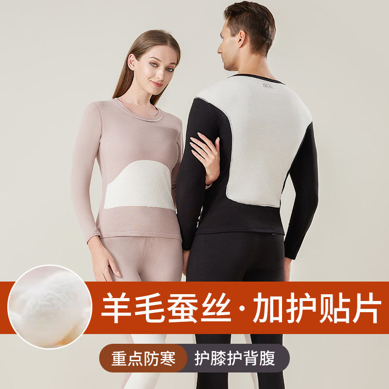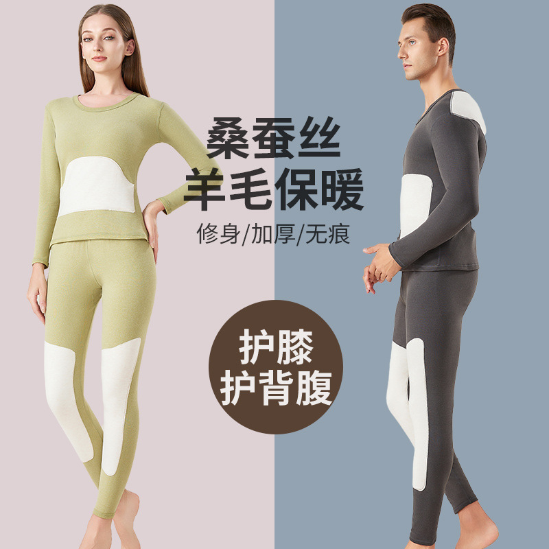 男士保暖内衣套装加厚防寒护膝贴片情侣睡衣打底衫蚕丝秋衣秋裤女